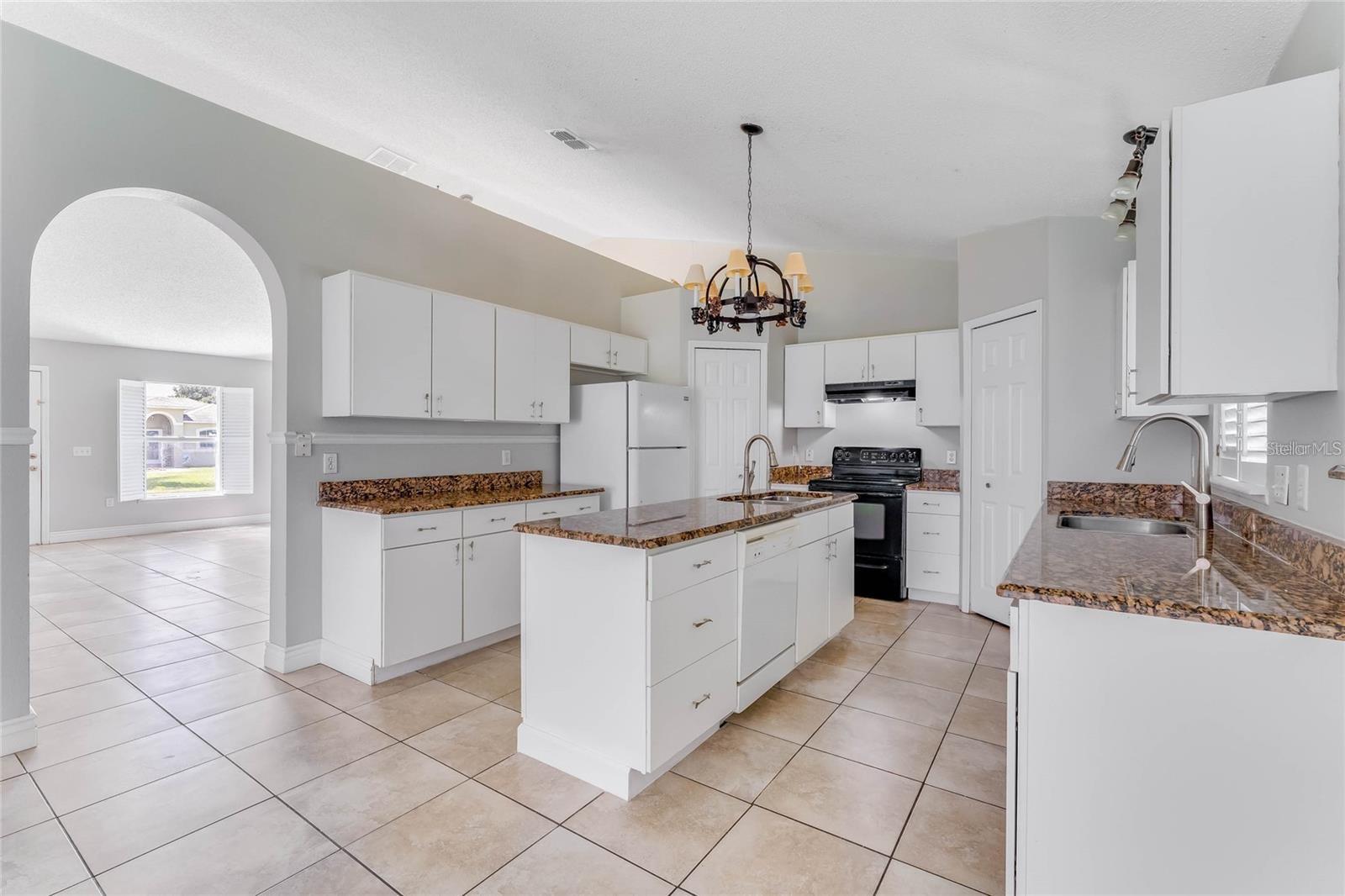 Welcome to your dream home! This recently repainted, spacious 4-bedroom, 2-bath sanctuary is filled with natural light and boasts an open floor plan with vaulted ceilings, creating a bright and inviting atmosphere. The home includes ceiling fans, a newly added water softener, and a renovated pool system, ensuring comfort and convenience. At the heart of the house is a stunning kitchen with a central island featuring an additional sink, perfect for culinary creativity and entertaining. Imagine gatherings flowing seamlessly from the kitchen to the screened-in pool area, where you can relax, swim, and soak up the sun in privacy. Conveniently located with schools right next door, this home is ideal for families seeking easy access to quality education. Nestled in Poinciana's flourishing landscape, you’ll be at the crossroads of convenience and opportunity, with a growing commercial scene that caters to your every need. Whether you're enjoying the tranquility of the pool, gathering around the kitchen island, or unwinding in the comfort of your vaulted ceiling retreat, every moment in this home is one to cherish. Don’t miss the chance to make this light-filled, modern 4-bedroom, 2-bath haven with a screened-in pool yours today!