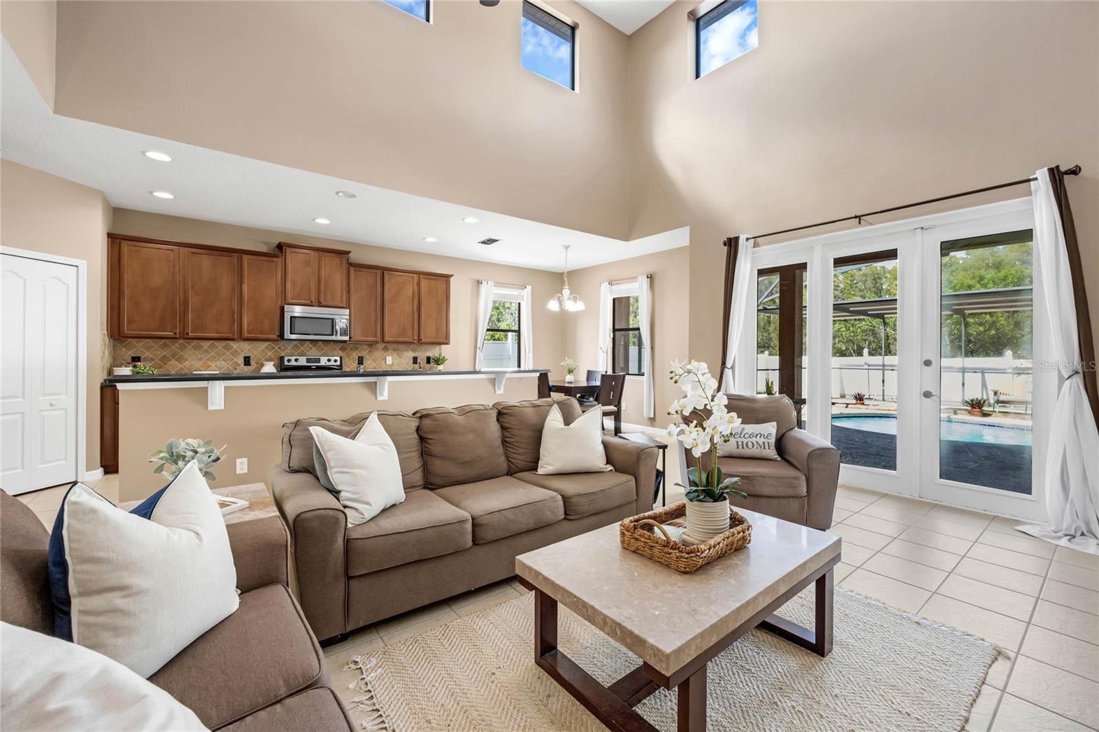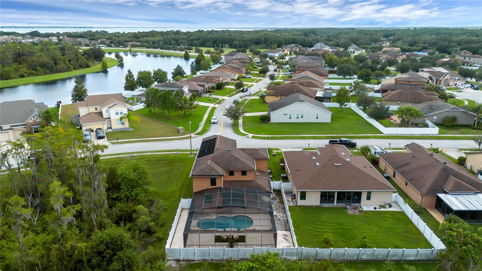 Imagine waking up to the sight of a serene, conservation lot right from your own backyard. Welcome to 2717 Eagle Cliff Dr, nestled in the heart of the coveted quiet community of Eagle Lake in Kissimmee, FL. This 4-bedroom, 3.5-bath home promises not only a home but a lifestyle filled with comfort and tranquility. Its fully fenced backyard is completed with a screened-in private pool—for relaxation, entertaining and happy moments. Inside, you will be greeted by a large formal Living room/Dining room combo or the promise of endless possibilities. Versatile spaces are waiting to be transformed into your perfect home office, a cozy den, or a vibrant playroom. The first-floor primary suite offers convenience with a spa like en-suite bathroom with double vanities and double closets. You'll find the open-concept kitchen and family room ideal for today's active lifestyle, perfectly marrying functionality with ease, in a setting meant for cherished gatherings and unforgettable memories. Upstairs you'll find three additional bedrooms and a versatile loft area for your dream of a media room, a dynamic play space, a personal gym, home office or fifth bedroom, this space invites you to create what fits your lifestyle. Plus, the energy-conscious will approve of the integrated solar system that not only reduces utility costs but also contributes to a sustainable future. Beyond your doorstep, this location is a gateway to adventure and convenience. Enjoy access to historic downtown Kissimmee, world-renowned attractions like Disney World and Universal Studios, top schools and shopping. Weekends await with thrilling proximity to stunning beaches and effortless travel via nearby airports. This home is ready to make it your own. Schedule a private tour today and see what 2717 Eagle Cliff Drive has to offer.