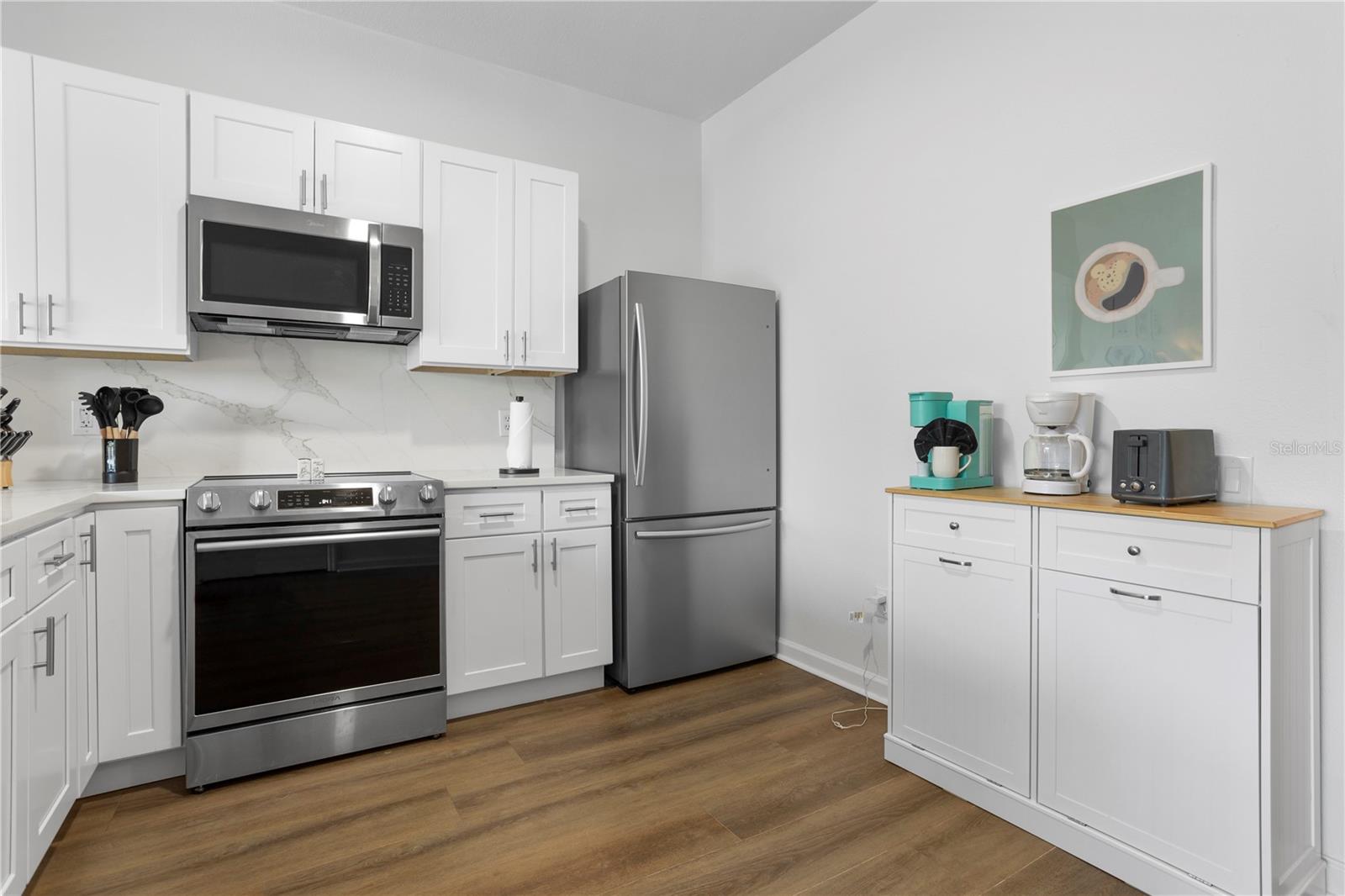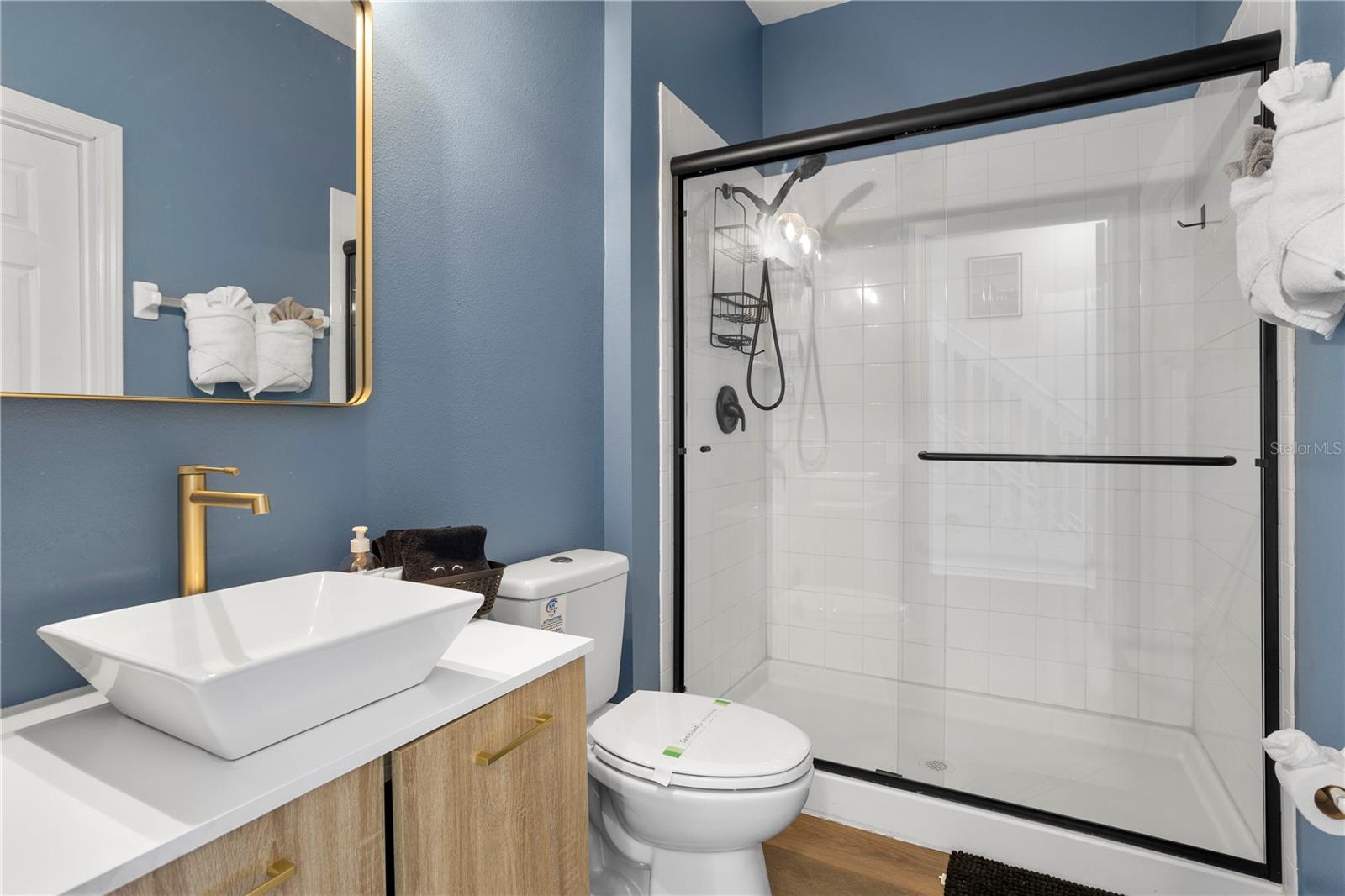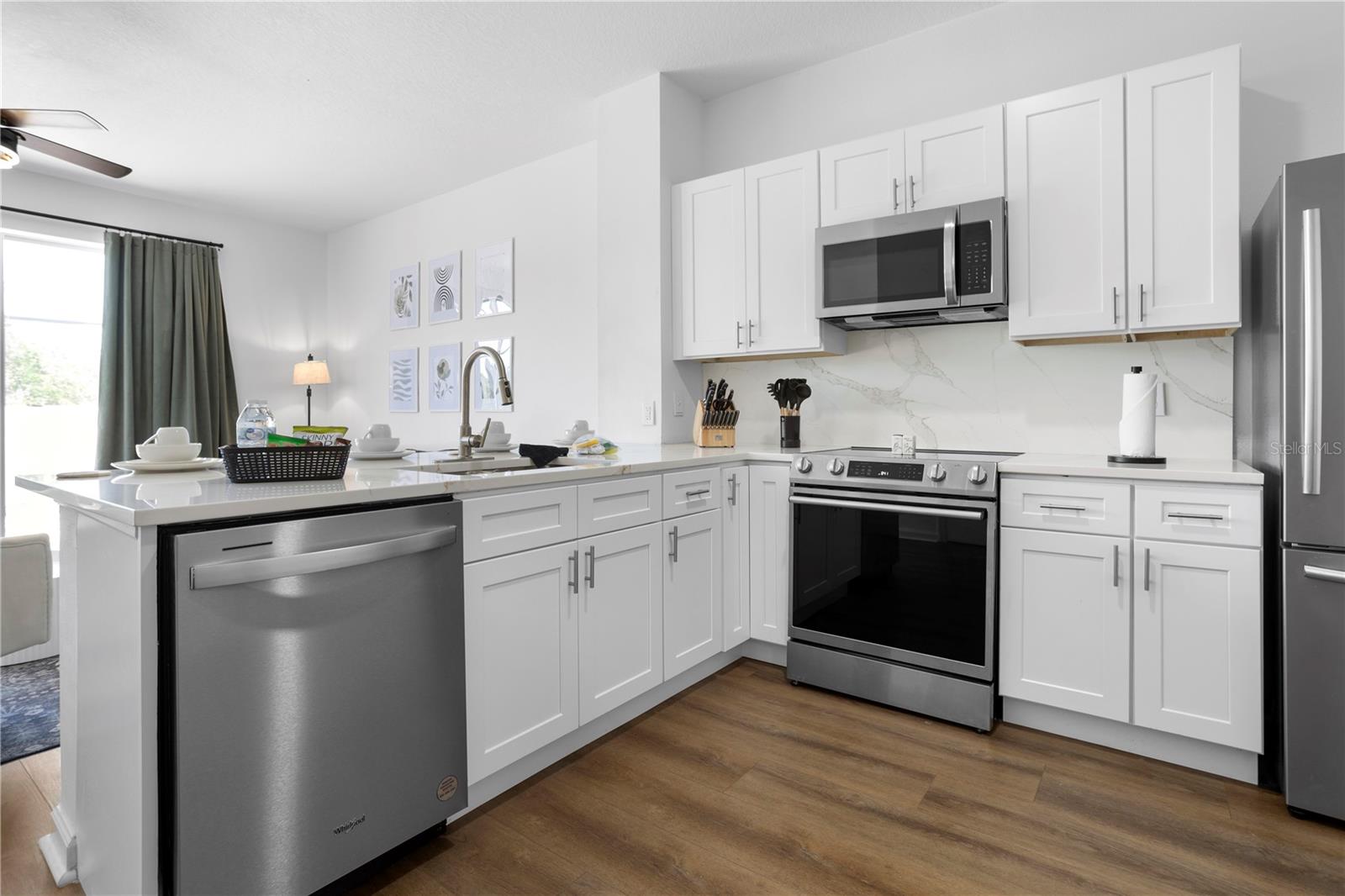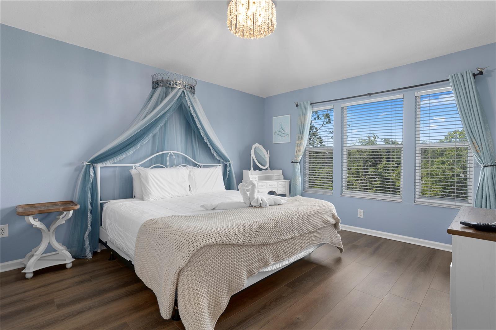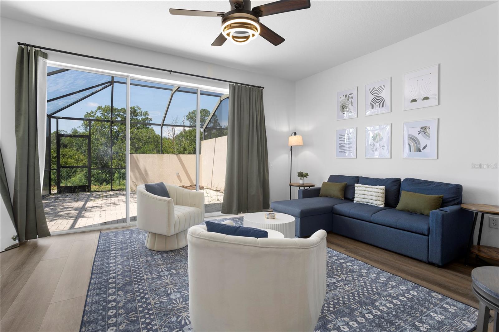 Modern luxury design meets community convenience with this one-of-a-kind FULLY FURNISHED 3-bedroom & uniquely 3 en-suite Bathroom townhome located in the Windsor Palms community in Kissimmee! Step inside to the open-concept kitchen & living room with luxury vinyl wood flooring which continues throughout the majority of the home. Fully updated in 2024, the kitchen is one to be desired with ALL NEW stainless steel appliances, NEW garbage disposal, stone countertops, stunning quartz backsplash, 32” shaker cabinets, a coffee bar & large breakfast bar overlooking the living room. Natural light floods the spacious living room via the giant sliding glass doors opening up to the screen-enclosed outdoor patio, offering the perfect place to entertain or delight in the Florida evening air. The downstairs bedroom is equipped with a built-in Murphy bed and the en-suite bathroom holds gorgeous new gold accent fixtures & an open-basin sink with a shower outlined in modern tiling & a detachable shower head. Upstairs, you will find a spacious second bedroom with large picture windows, modern light fixtures, an en-suite bathroom, and a walk-in closet space. The third bedroom holds a large built-in closet, modern light fixtures, and an en-suite bathroom. The laundry room holds BRAND NEW washer and dryer units & convenient built-in shelving. All furniture conveys! The community center is truly one-of-a-kind with a large pool and spa, tennis courts, and a community clubhouse that contains a fitness center, pool tables, table tennis, and a mini arcade & theater. Located near public schools & a short drive to major attractions. This stunning townhome is the perfect investment property, vacation home, or primary residence. Don’t miss your chance - call today for a private showing!