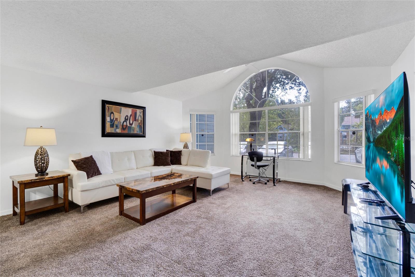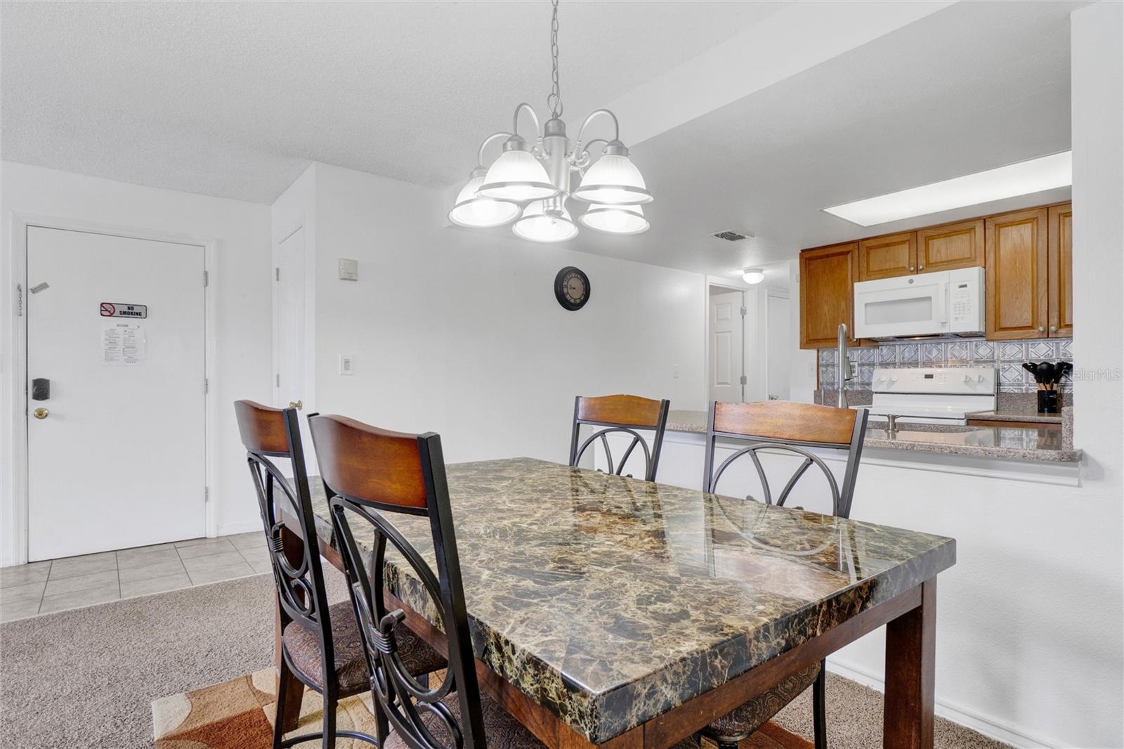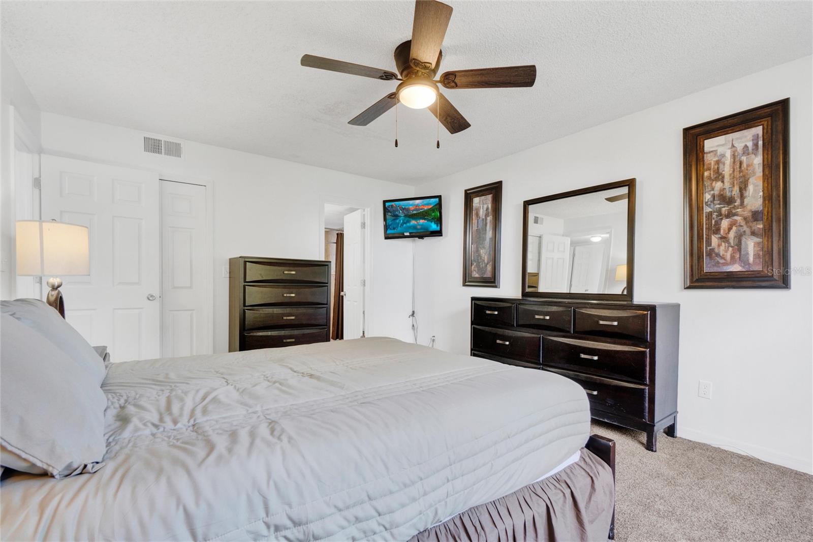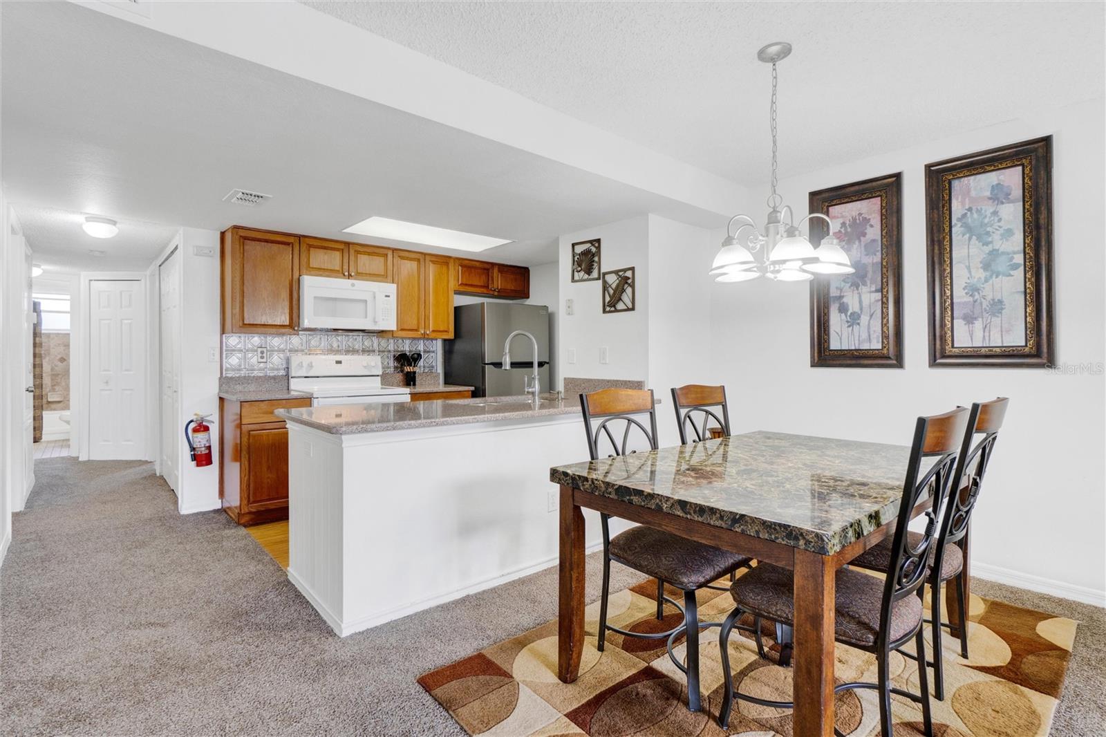 Long term Tenant in place until November 2025. Just a short drive to the enchanting Disney World and parks! This ground-floor condo is an excellent hoice for a vacation home, long-term rental, your permanent residence, or as an investment property (Airbnb, VRBO). Spacious and clean, this 3-bedroom, 2-bathroom unit features an open floor plan, newer carpet, and freshly painted interior walls, with a laundry closet equipped with a washer and dryer. The living-dining combo area is bathed in natural light thanks to large arched windows and a vaulted ceiling. The kitchen comes with sleek granite countertops, wood like laminate flooring, double kitchen sink, a pantry closet, and all the needed appliances. Each bedroom comes with brand new ceiling fan/light combos and windows that let in plenty of fresh air. Primary bedroom comes with an en-suite bathroom upgraded with granite countertop vanity, beautiful fully tiled large walk-in shower, and a walk-in closet. Plus, the guest bathroom offers the convenience of a shower/tub combo. This unit is ideally located at the back of the community, providing a calm and peaceful environment. This property is turnkey ready and fully furnished for your convenience, so you can move right in or start renting it out without any hassle! You’ll also enjoy the community amenities: a pool with a hot tub, a tennis court, a fitness center, and a covered outdoor dining area with a sun deck. HVAC (2015). Book your private tour today!