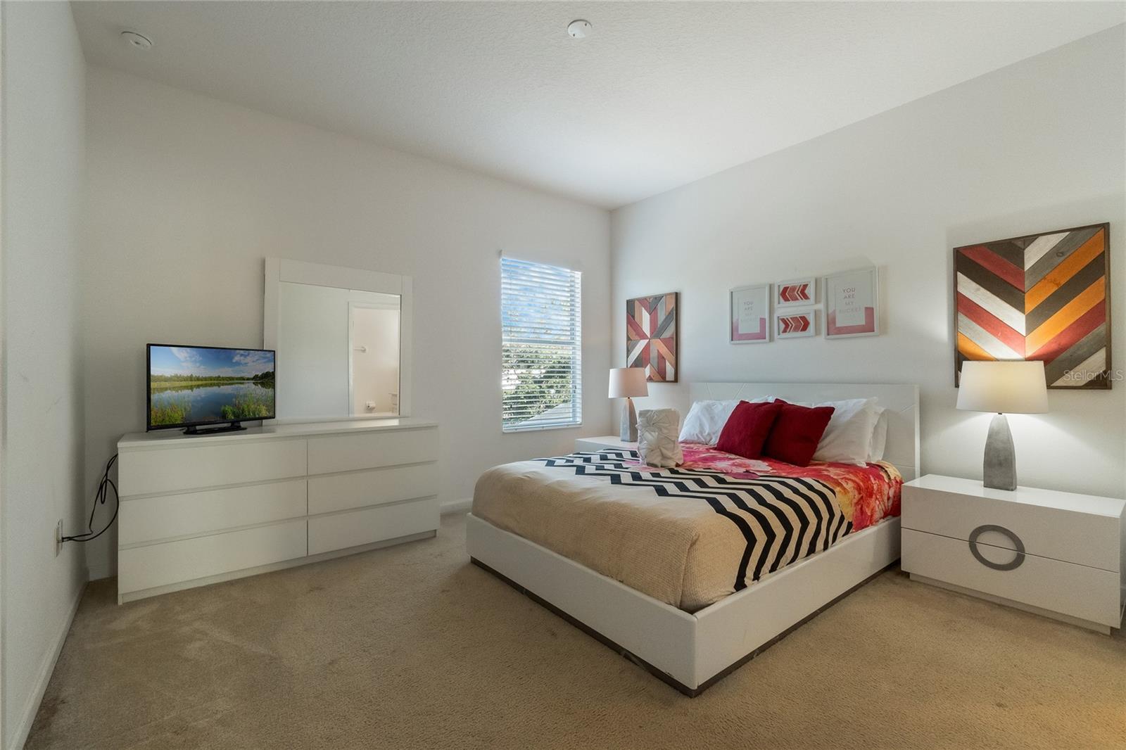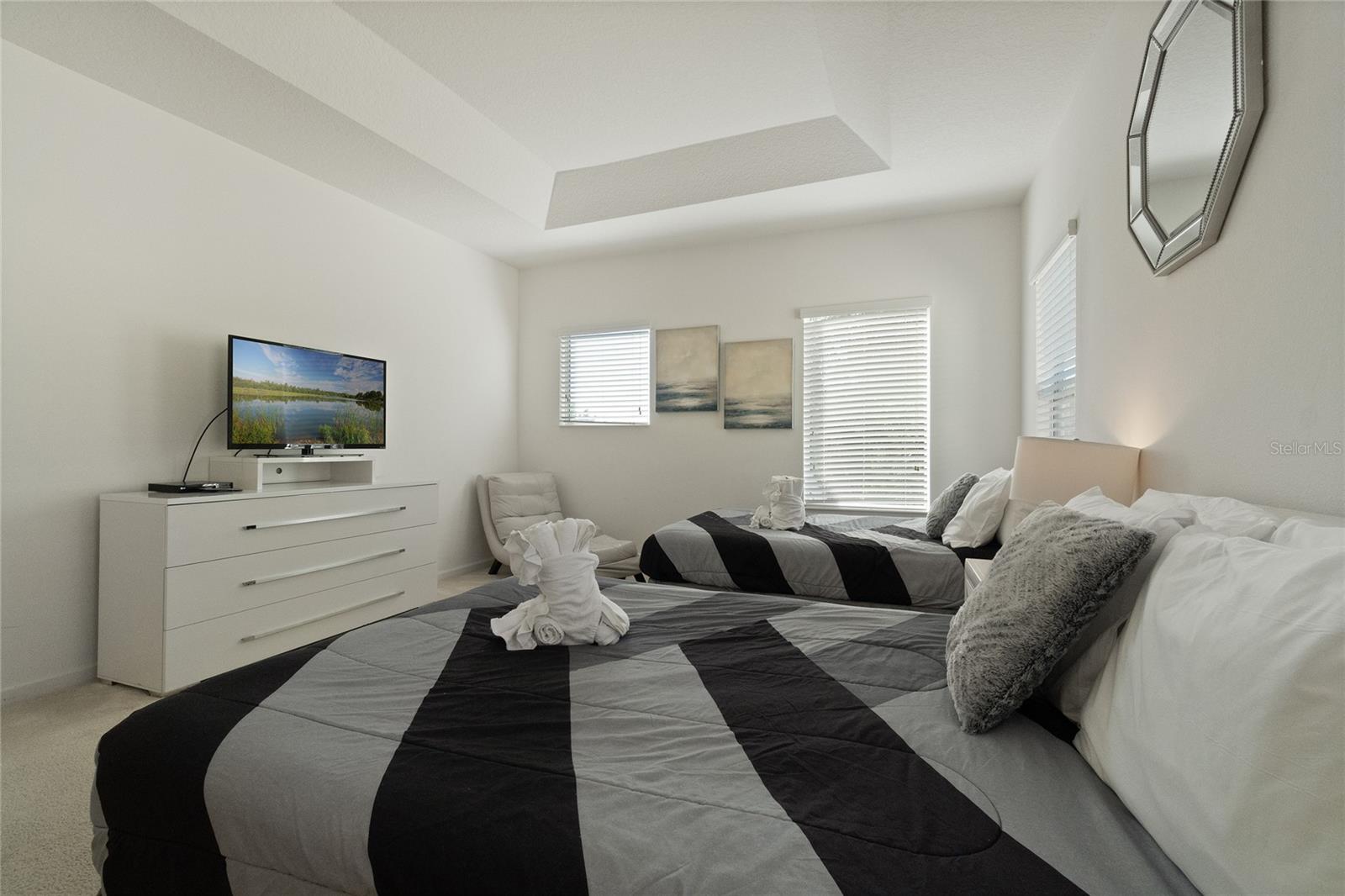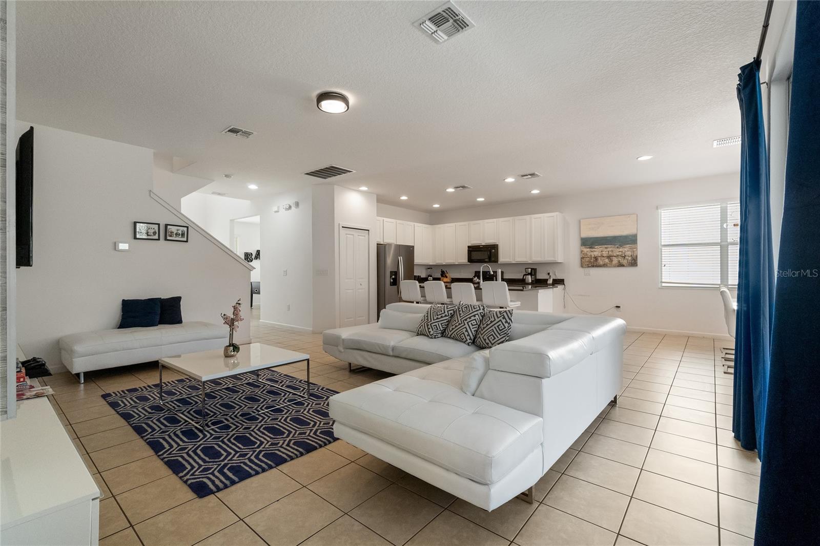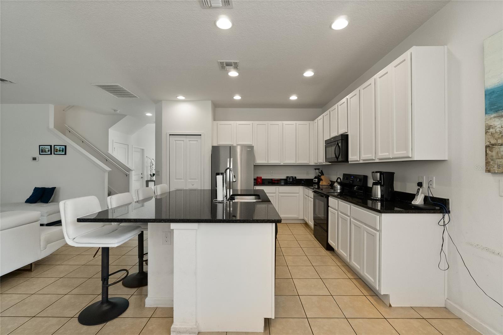 Welcome to this stunning FULLY FURNISHED 5-bedroom, 5-bathroom home located in the highly desirable community of Storey Lake! This spacious two-story home offers modern living at its finest. The open-concept floor plan features a gourmet kitchen with sleek granite countertops, stainless steel appliances, and ample cabinet space, all flowing seamlessly into the bright and airy living and dining areas. Perfect for entertaining or everyday family living, the kitchen island doubles as a breakfast bar with seating for four. The main living space is light-filled with tile flooring throughout, providing a fresh and clean aesthetic. Upstairs, you'll find generously sized bedrooms, including a luxurious master suite complete with an en-suite bathroom featuring dual sinks and a large walk-in shower. Additional bedrooms are perfect for family, guests, or even a home office. Step outside to a private backyard, ideal for outdoor dining or relaxing in the Florida sunshine. Located close to world-renowned theme parks, shopping, dining, and entertainment, this home is perfect as a primary residence or vacation property. Enjoy access to top-notch community amenities, including a resort-style pool, fitness center, and more. Don't miss the opportunity to own this move-in-ready gem in the heart of Kissimmee!