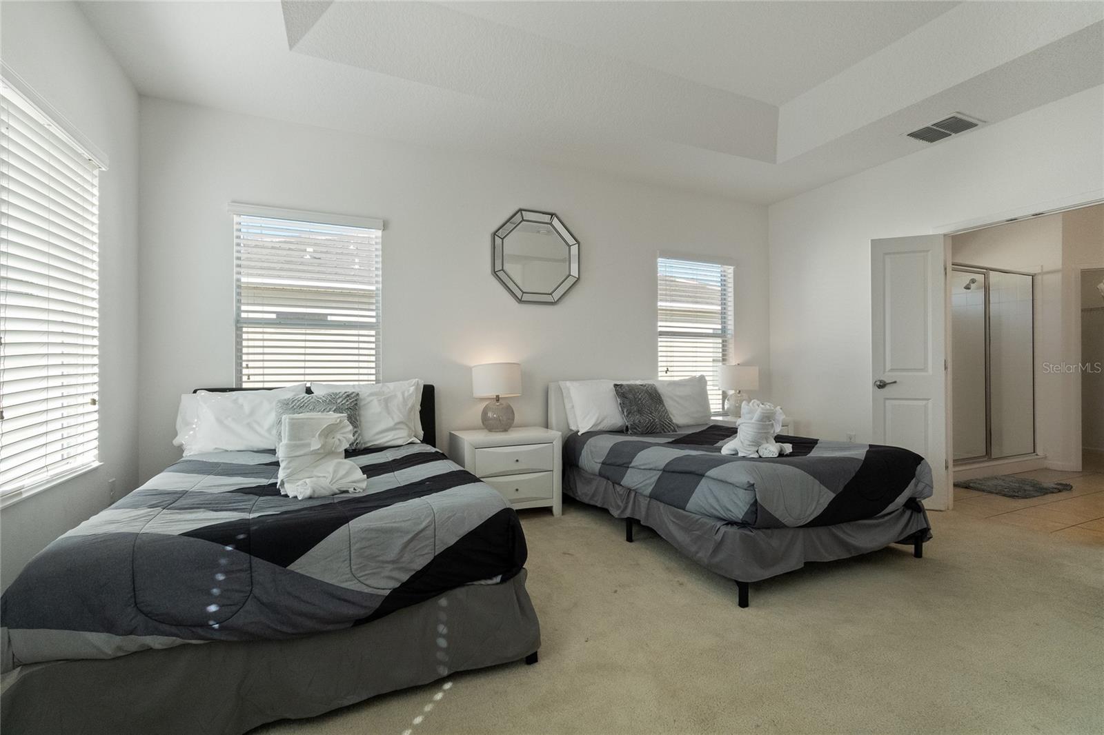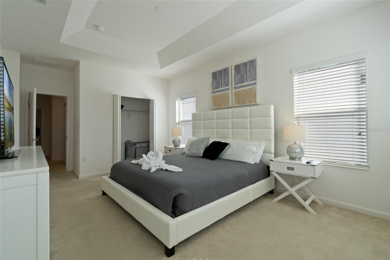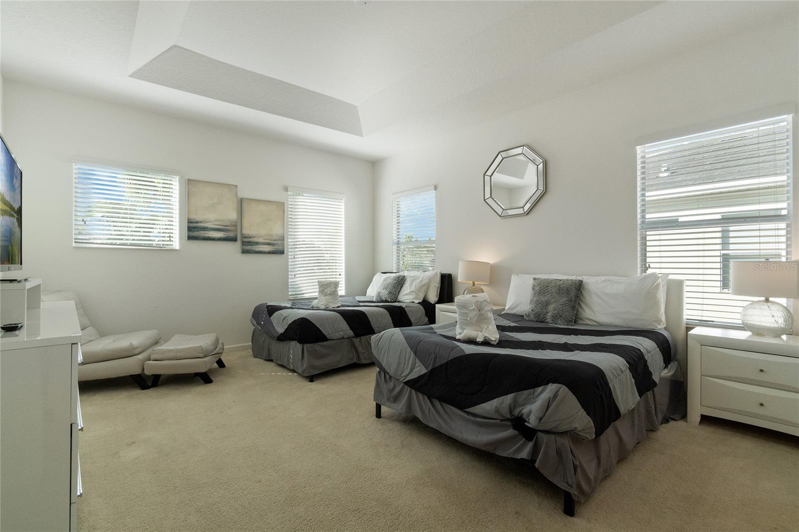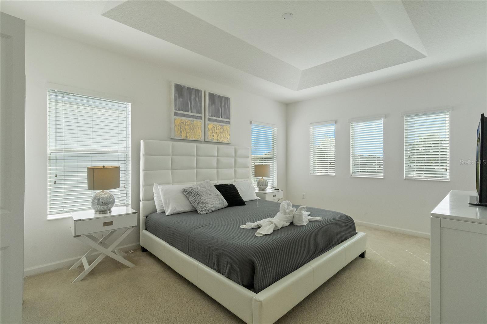 Welcome to this stunning FULLY FURNISHED 5-bedroom, 5-bathroom home located in the highly desirable community of Storey Lake! This spacious two-story home offers modern living at its finest. The open-concept floor plan features a gourmet kitchen with sleek granite countertops, stainless steel appliances, and ample cabinet space, all flowing seamlessly into the bright and airy living and dining areas. Perfect for entertaining or everyday family living, the kitchen island doubles as a breakfast bar with seating for four. The main living space is light-filled with tile flooring throughout, providing a fresh and clean aesthetic. Upstairs, you'll find generously sized bedrooms, including a luxurious master suite complete with an en-suite bathroom featuring dual sinks and a large walk-in shower. Additional bedrooms are perfect for family, guests, or even a home office. Step outside to a private backyard, ideal for outdoor dining or relaxing in the Florida sunshine. Located close to world-renowned theme parks, shopping, dining, and entertainment, this home is perfect as a primary residence or vacation property. Enjoy access to top-notch community amenities, including a resort-style pool, fitness center, and more. Don't miss the opportunity to own this move-in-ready gem in the heart of Kissimmee!