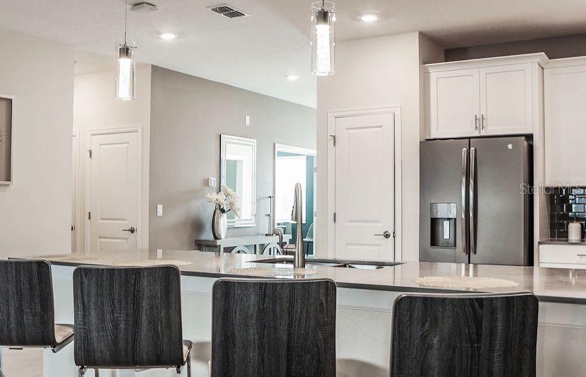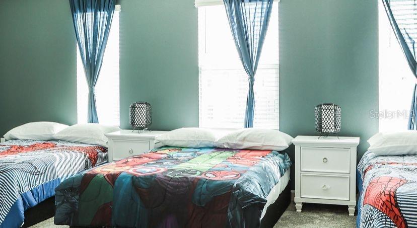Discover the epitome of spacious living in this large nine-bedroom, five-bathroom retreat. The gourmet kitchen on the first floor, features 42-inch cabinets, quartz countertops, and stainless steel appliances, seamlessly blends with the family and dining areas. The large master suite and an additional room each with a full bath, creating a cozy space for relaxation and entertainment located on the first floor. Immerse yourself in tranquility with the oversized private pool and spa, perfect for entertainment while soaking up Florida sun. The expansive covered lanai provides the perfect spot to host guests, impeccably merging luxury and leisure. The upper level transforms into an entertainment hub with a game loft, two sets of Jack and Jill bedrooms, three additional rooms, and a full bath. The unique themed rooms make it an enticing option for those seeking a distinctive rental experience. Storey Lake Resort, a gated community, enhances your lifestyle with amenities such as a massive pool, splash pad, lazy river, fitness facilities, kayaks, and more, promising a resort-style experience just steps away. Located near 192 and Osceola Pkwy, this property ensures maximum convenience, just a 10-minute drive from Disney and close to Orlando's attractions. Seize this rare opportunity to own a piece of luxury in Orlando! For inquiries or to schedule a private showing, contact us today.