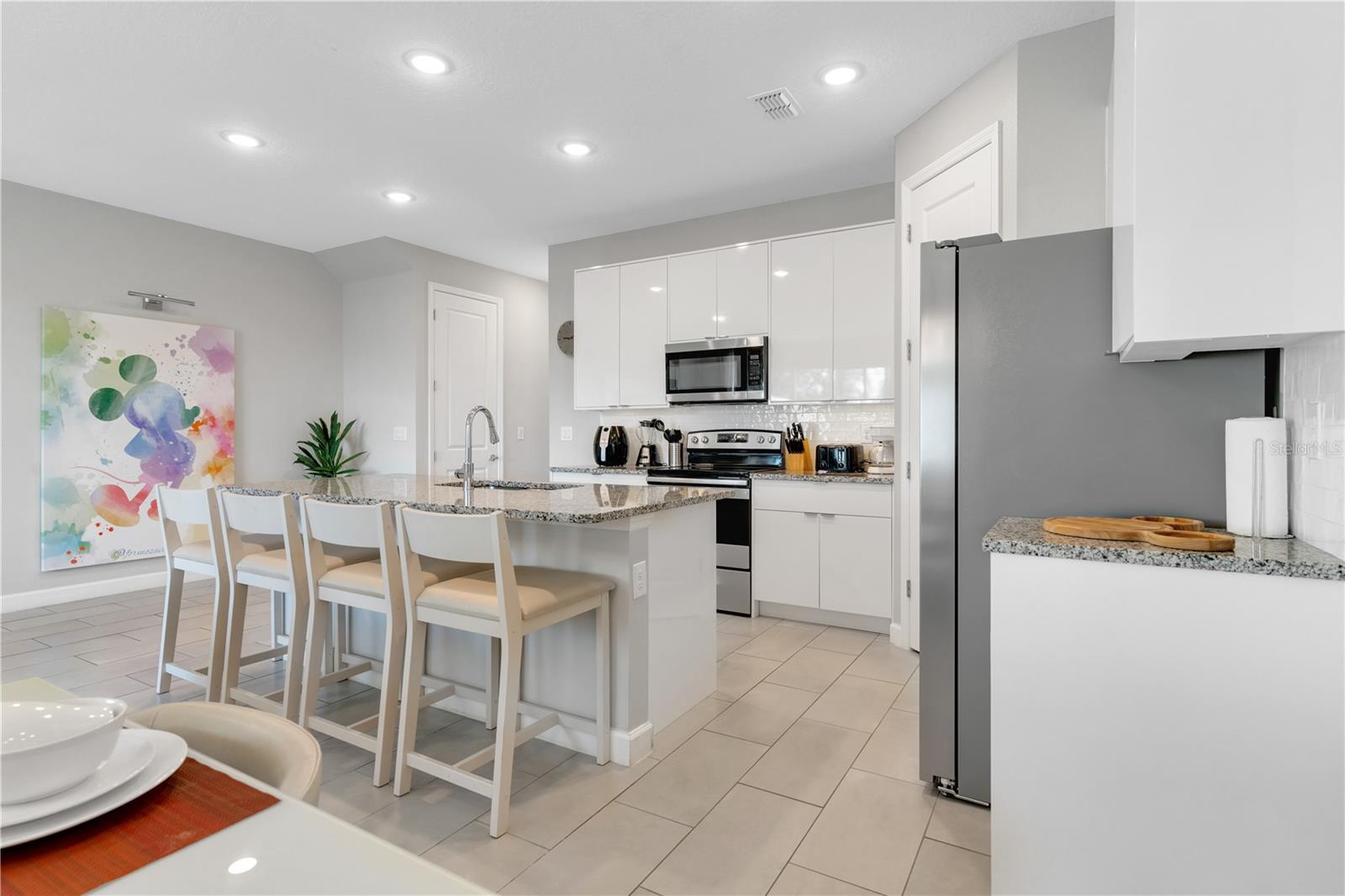 Experience the Magic of Your Dream Vacation Home! We present this beautiful 2-story vacation home, designed to provide comfort, practicality and unforgettable moments. With 4 bedrooms and 4 bathrooms (plus a half bathroom), this residence combines elegance and functionality, with charming Disney-style decor, creating a unique environment that will make you feel part of the magic. Large and well-lit spaces. The living room is spacious and integrated with the dining area and kitchen, creating an open and inviting environment. The modern kitchen is fully equipped with cabinets and all appliances. A counter with space ideal for informal meals. Enjoy moments of leisure with the pool in your own backyard, surrounded by a beautiful outdoor space. Practical and well-positioned laundry room to make everyday life easier. Charming decor with touches of Disney style that enchant and create a magical atmosphere in every room of the house. In addition, the condominium offers a clubhouse and swimming pool, providing even more options for leisure and socializing for the whole family. This property is in a great location, close to schools, restaurants, shopping centers and, best of all, just minutes from the famous Disney parks, making your vacation experience even more convenient and unforgettable. This is your opportunity to have a little piece of Disney charm to call your own! Schedule your visit and come and discover this private paradise.