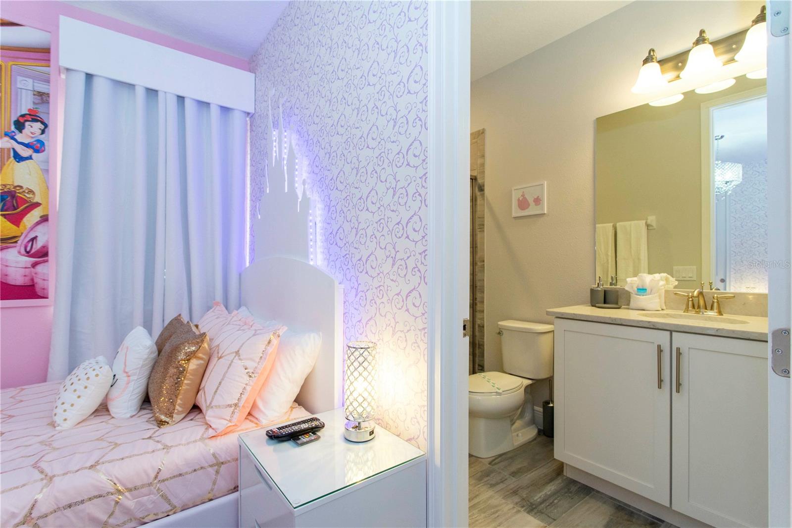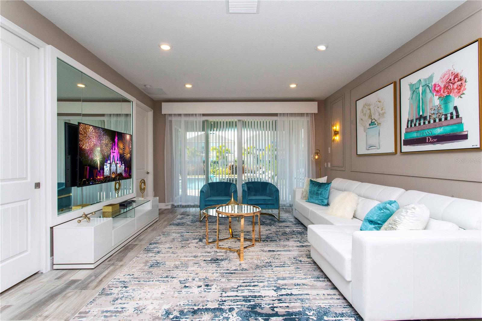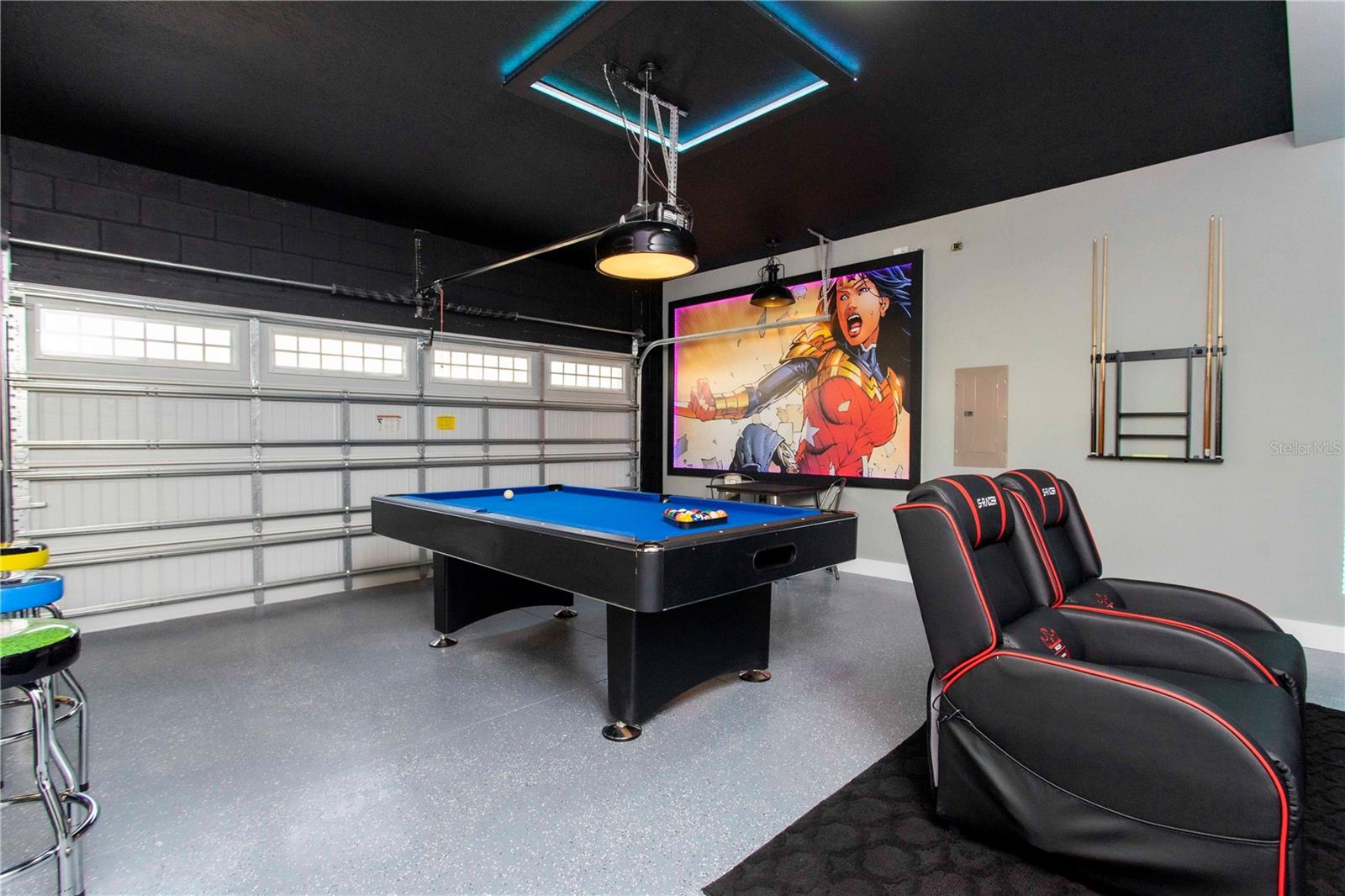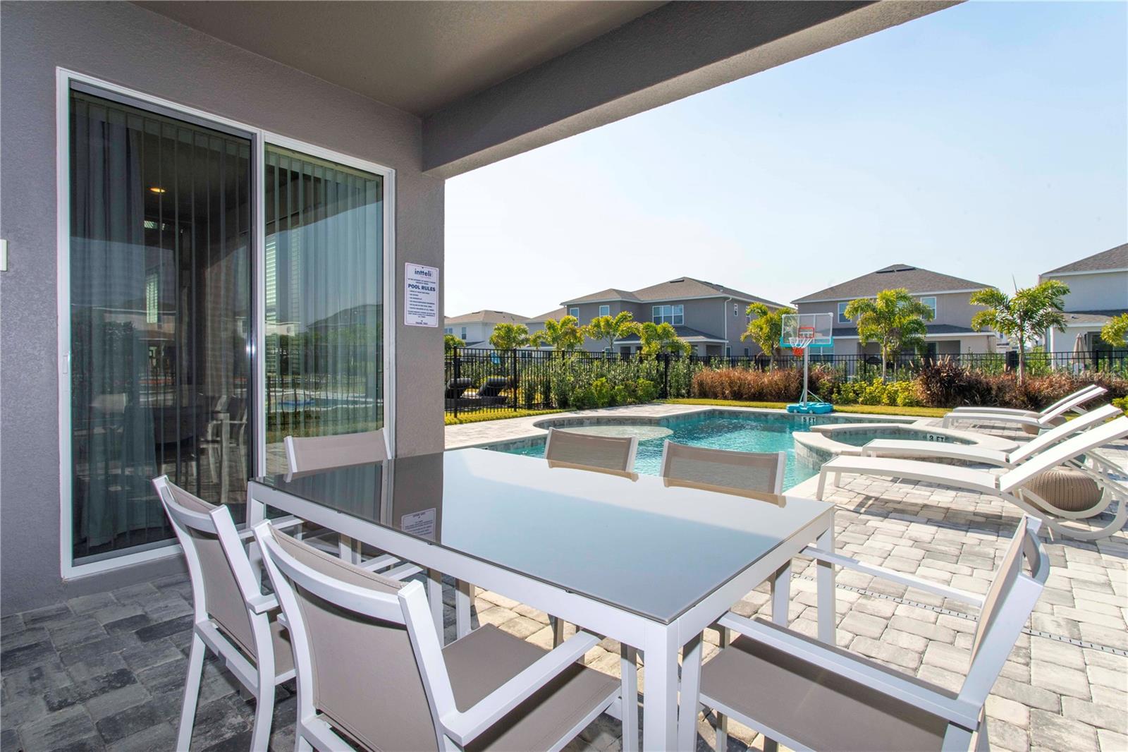 Great 6 bedroom floorplan with everything included (furniture and decoration). The home features over 3300 sq ft of air conditioned comfort. The fully equipped and large kitchen has upgraded quartz counters and stainless steel appliances. The comfortable family room has sliding doors leading to the oversize pool featuring both a heated spa and sunbathing deck. The garage is converted into a fun games room! There are TWO primary bedrooms in this home - one on the first floor with its own exit onto the expansive pool deck, and the second on the upper floor. Every bedroom has its own ensuite bathroom for the ultimate in convenience! You will find a movie theatre upstairs with movie style theatre seating as well as themed bedrooms and an upstairs laundry room. The home oozes elegance and quality and is currently operating as a vacation rental property with full management services. This wonderful, open floorplan is great for large families or guests to enjoy The Encore Club at Reunion which offers exciting amenities such as a water park with 3-story slides, sports activities featuring tennis courts, basketball courts, sand volleyball courts, and a clubhouse with a fitness center and restaurant. Minutes from all major theme park attractions, shopping centers, and restaurants, this wonderful move-in ready home is perfect for a second home, short-term rental, or full-time residence. Arrange your preview of this fabulous home today.