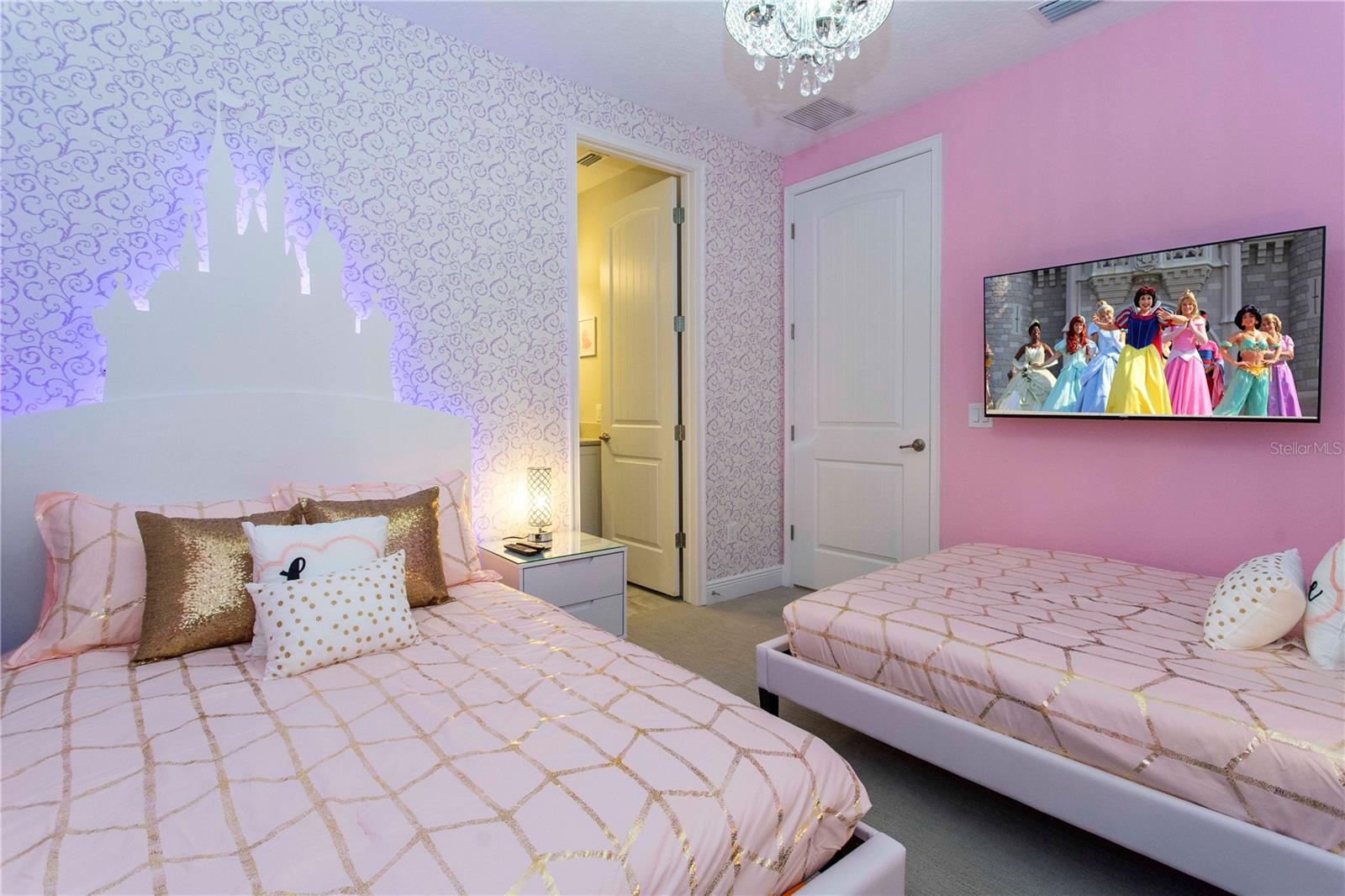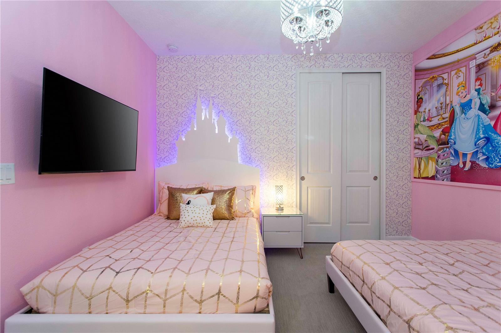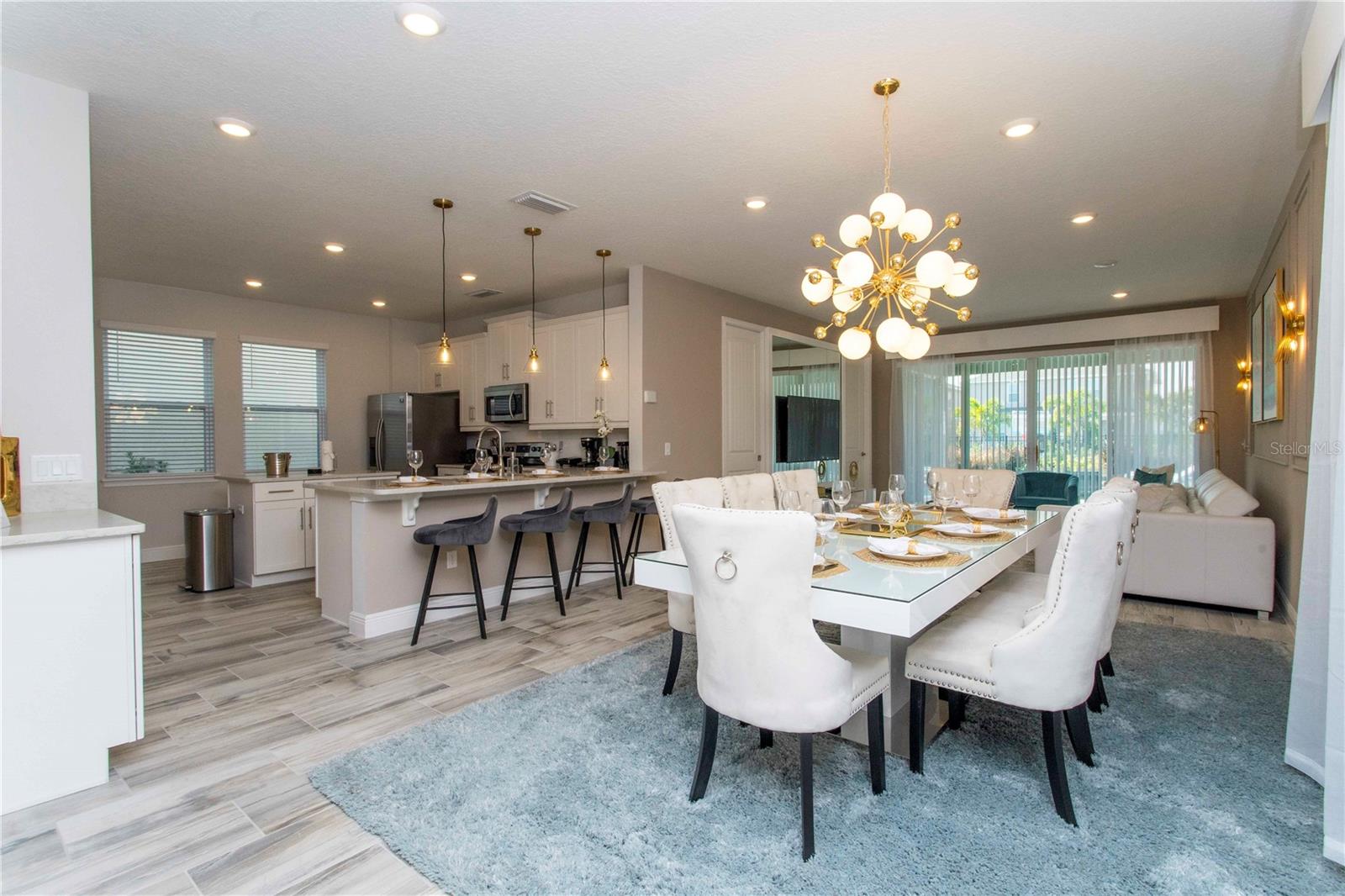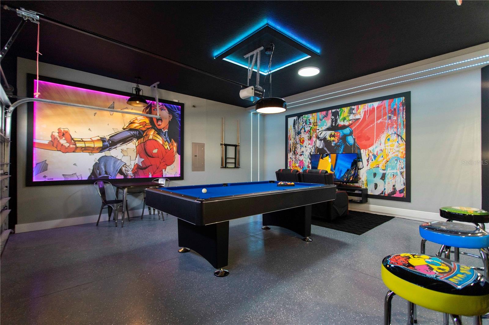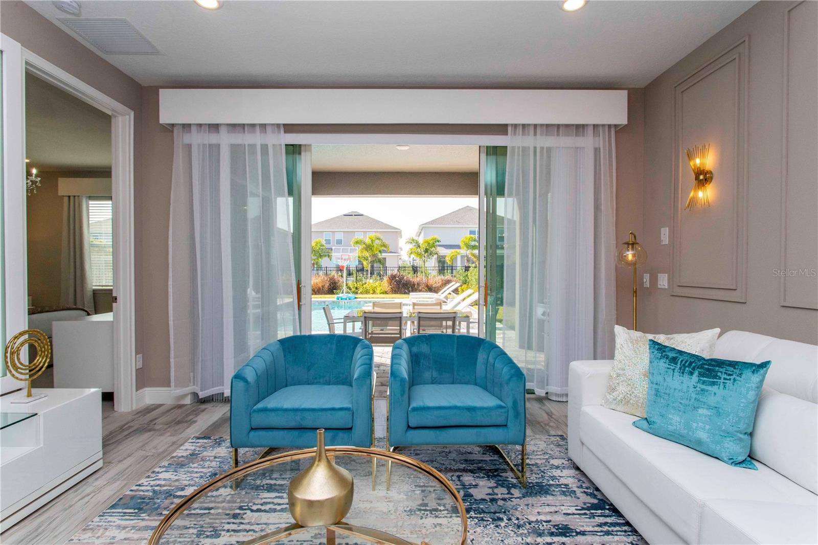 Great 6 bedroom floorplan with everything included (furniture and decoration). The home features over 3300 sq ft of air conditioned comfort. The fully equipped and large kitchen has upgraded quartz counters and stainless steel appliances. The comfortable family room has sliding doors leading to the oversize pool featuring both a heated spa and sunbathing deck. The garage is converted into a fun games room! There are TWO primary bedrooms in this home - one on the first floor with its own exit onto the expansive pool deck, and the second on the upper floor. Every bedroom has its own ensuite bathroom for the ultimate in convenience! You will find a movie theatre upstairs with movie style theatre seating as well as themed bedrooms and an upstairs laundry room. The home oozes elegance and quality and is currently operating as a vacation rental property with full management services. This wonderful, open floorplan is great for large families or guests to enjoy The Encore Club at Reunion which offers exciting amenities such as a water park with 3-story slides, sports activities featuring tennis courts, basketball courts, sand volleyball courts, and a clubhouse with a fitness center and restaurant. Minutes from all major theme park attractions, shopping centers, and restaurants, this wonderful move-in ready home is perfect for a second home, short-term rental, or full-time residence. Arrange your preview of this fabulous home today.