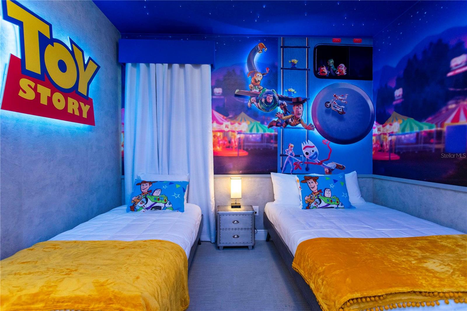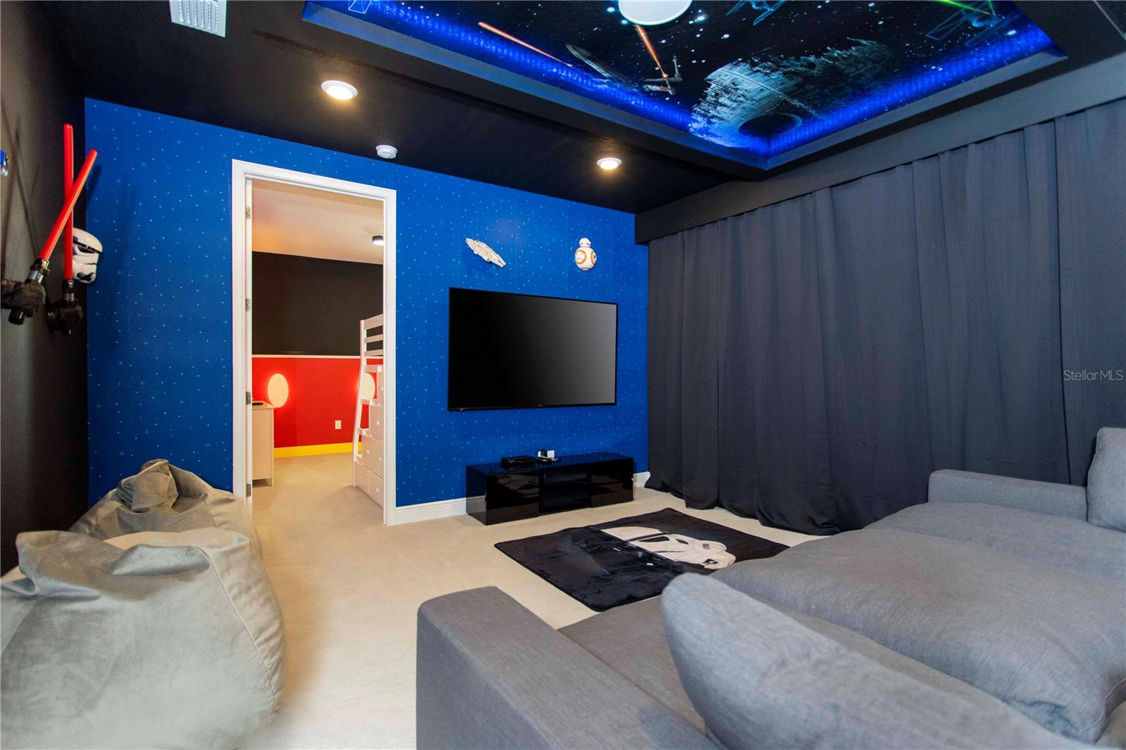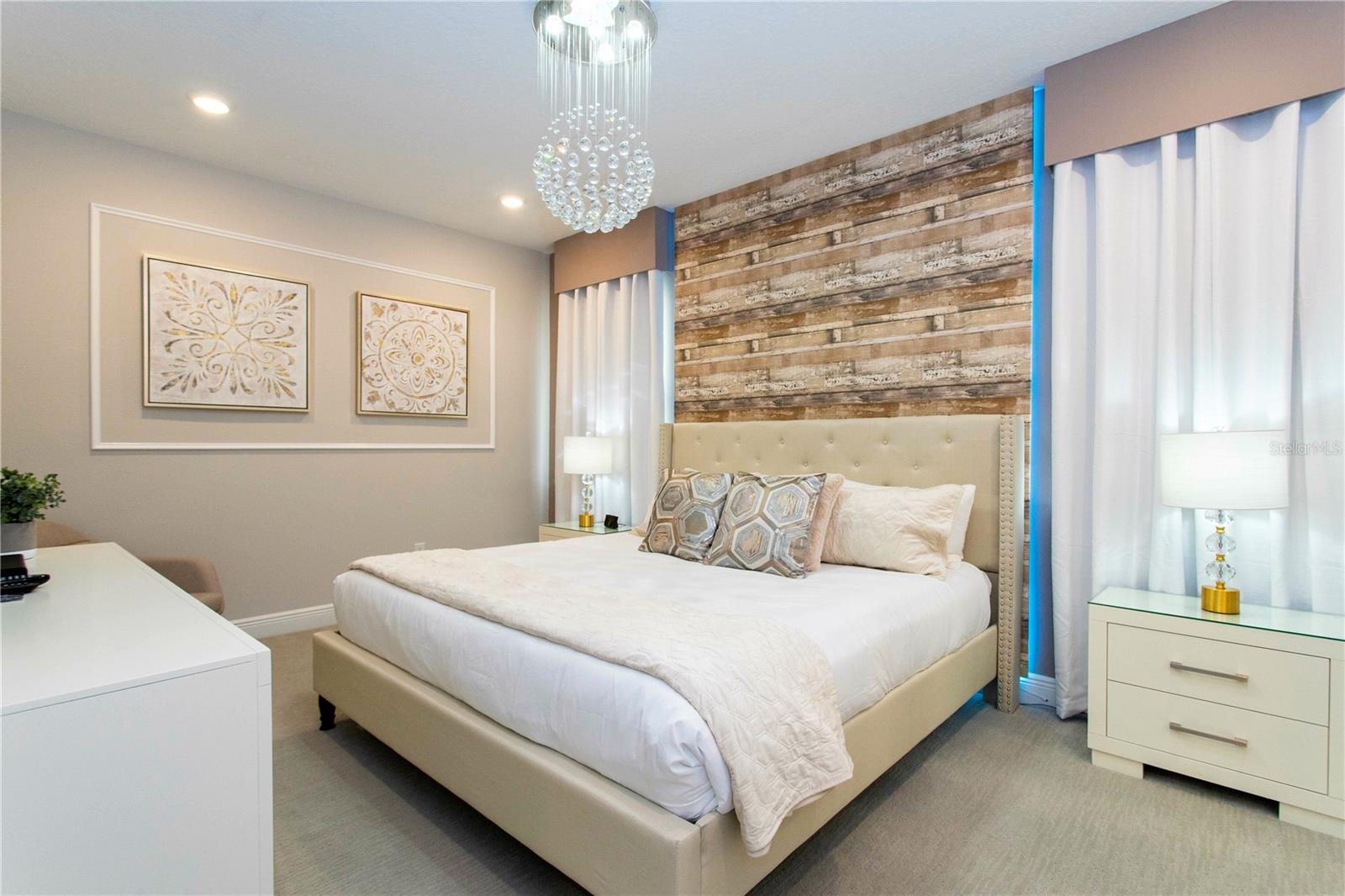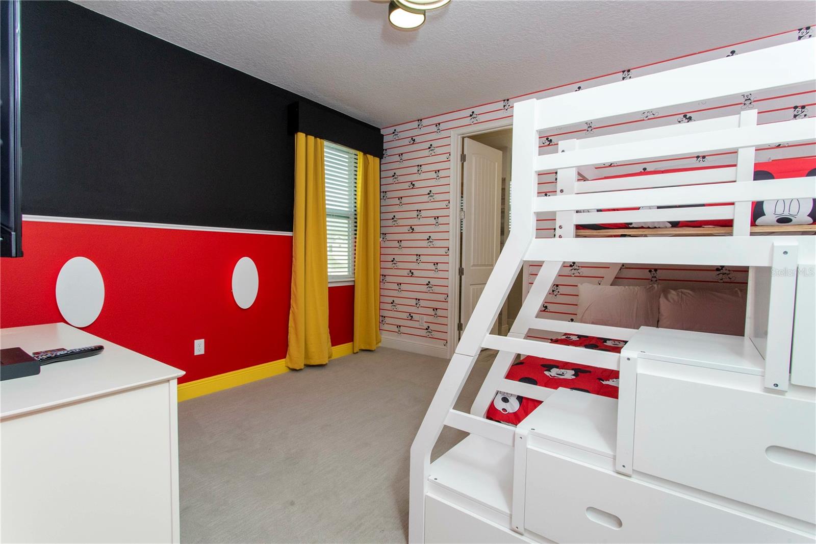 Great 6 bedroom floorplan with everything included (furniture and decoration). The home features over 3300 sq ft of air conditioned comfort. The fully equipped and large kitchen has upgraded quartz counters and stainless steel appliances. The comfortable family room has sliding doors leading to the oversize pool featuring both a heated spa and sunbathing deck. The garage is converted into a fun games room! There are TWO primary bedrooms in this home - one on the first floor with its own exit onto the expansive pool deck, and the second on the upper floor. Every bedroom has its own ensuite bathroom for the ultimate in convenience! You will find a movie theatre upstairs with movie style theatre seating as well as themed bedrooms and an upstairs laundry room. The home oozes elegance and quality and is currently operating as a vacation rental property with full management services. This wonderful, open floorplan is great for large families or guests to enjoy The Encore Club at Reunion which offers exciting amenities such as a water park with 3-story slides, sports activities featuring tennis courts, basketball courts, sand volleyball courts, and a clubhouse with a fitness center and restaurant. Minutes from all major theme park attractions, shopping centers, and restaurants, this wonderful move-in ready home is perfect for a second home, short-term rental, or full-time residence. Arrange your preview of this fabulous home today.