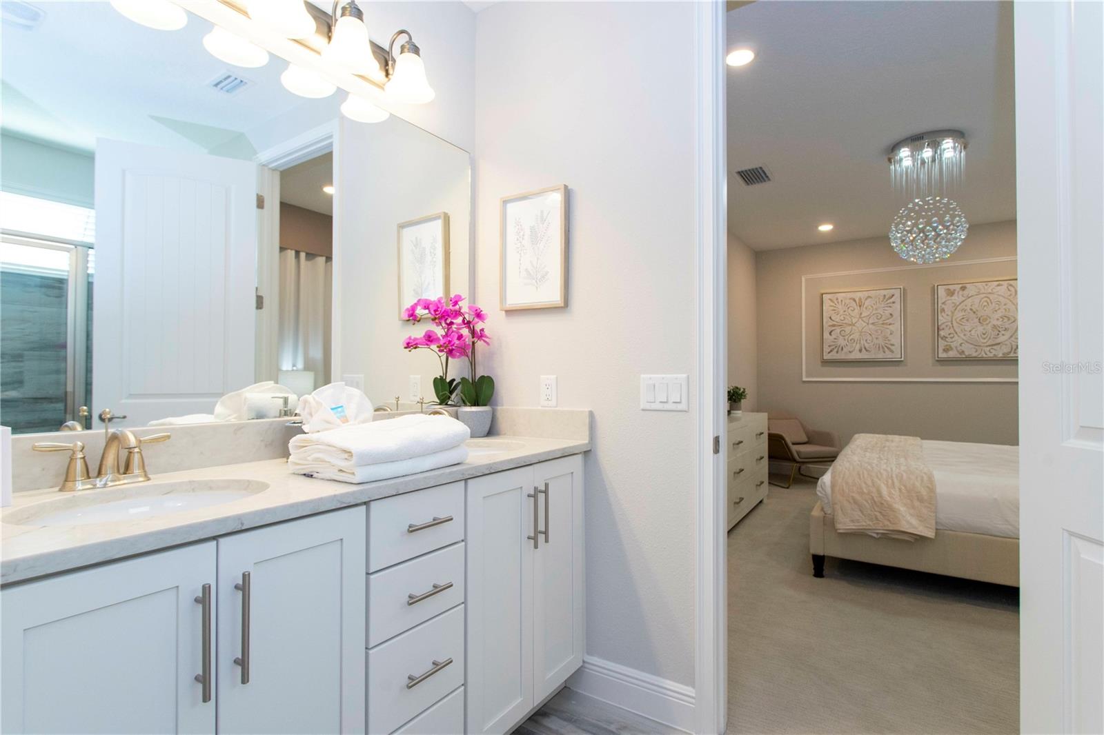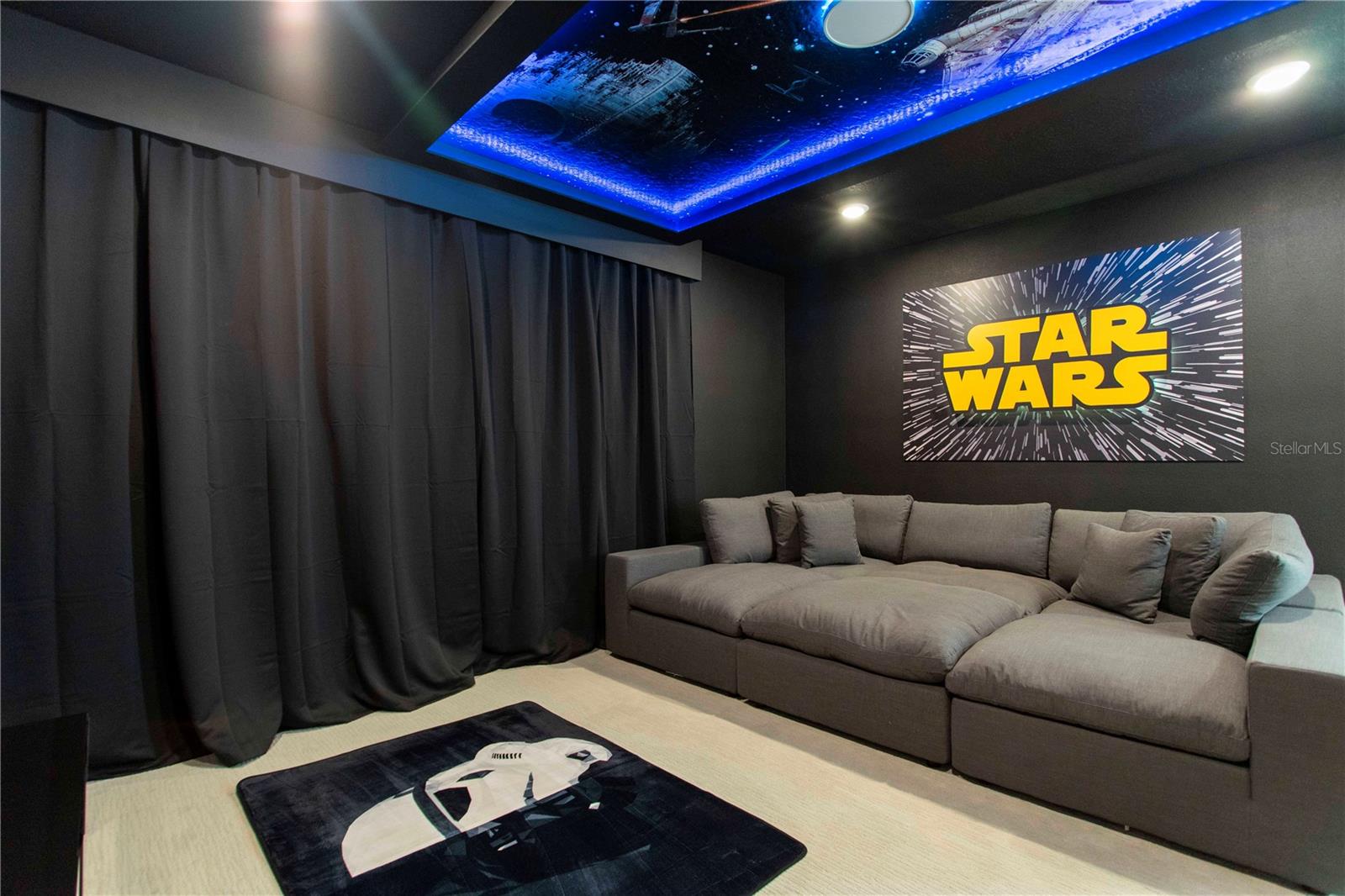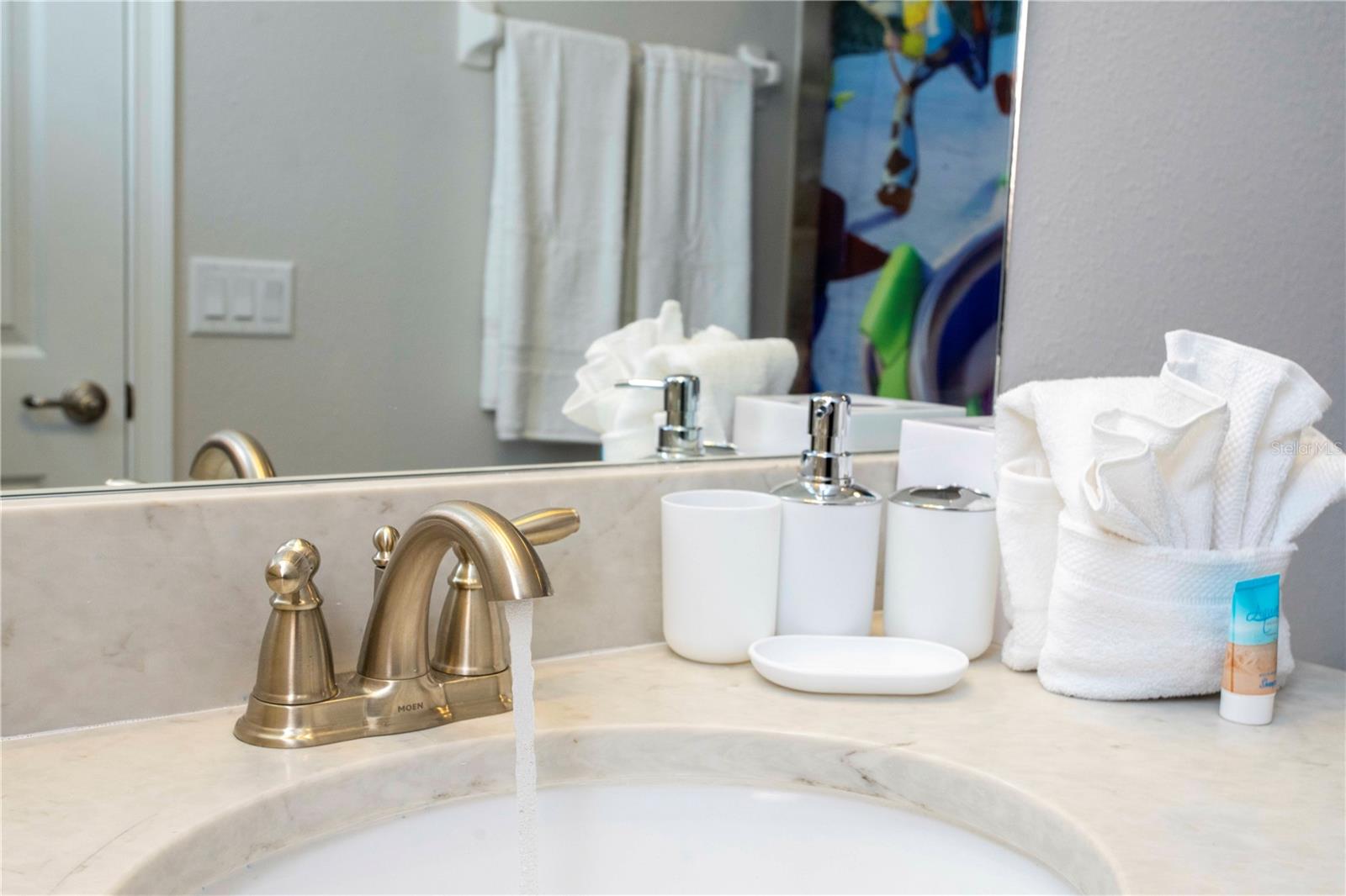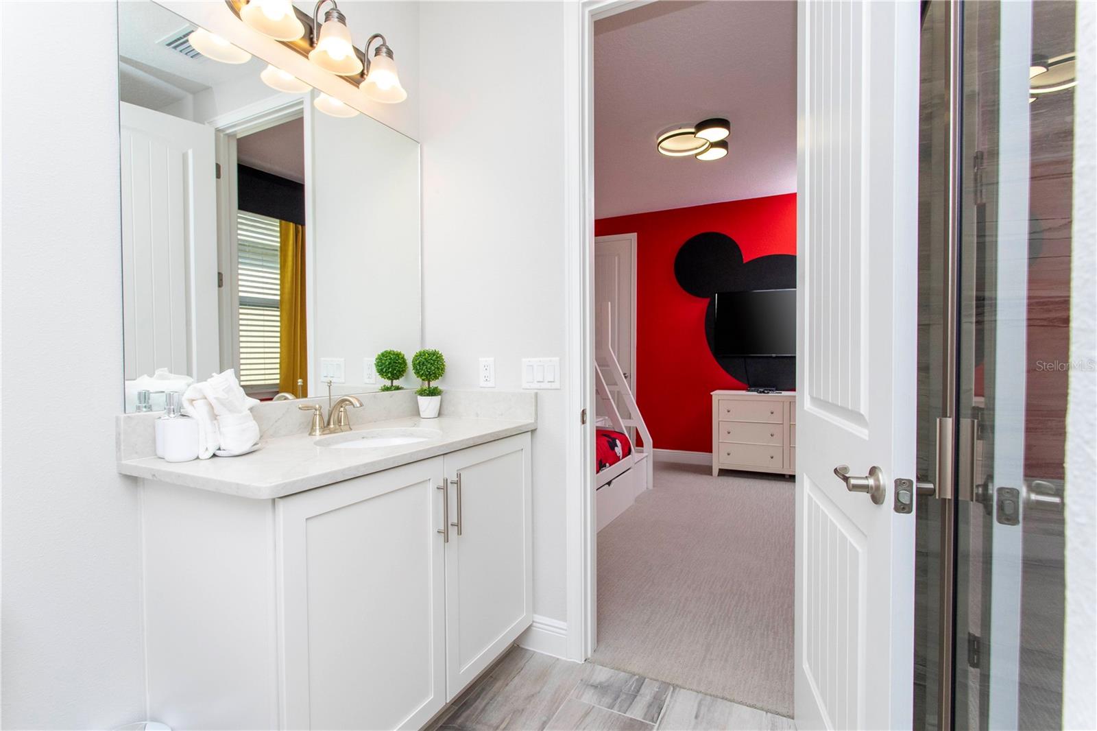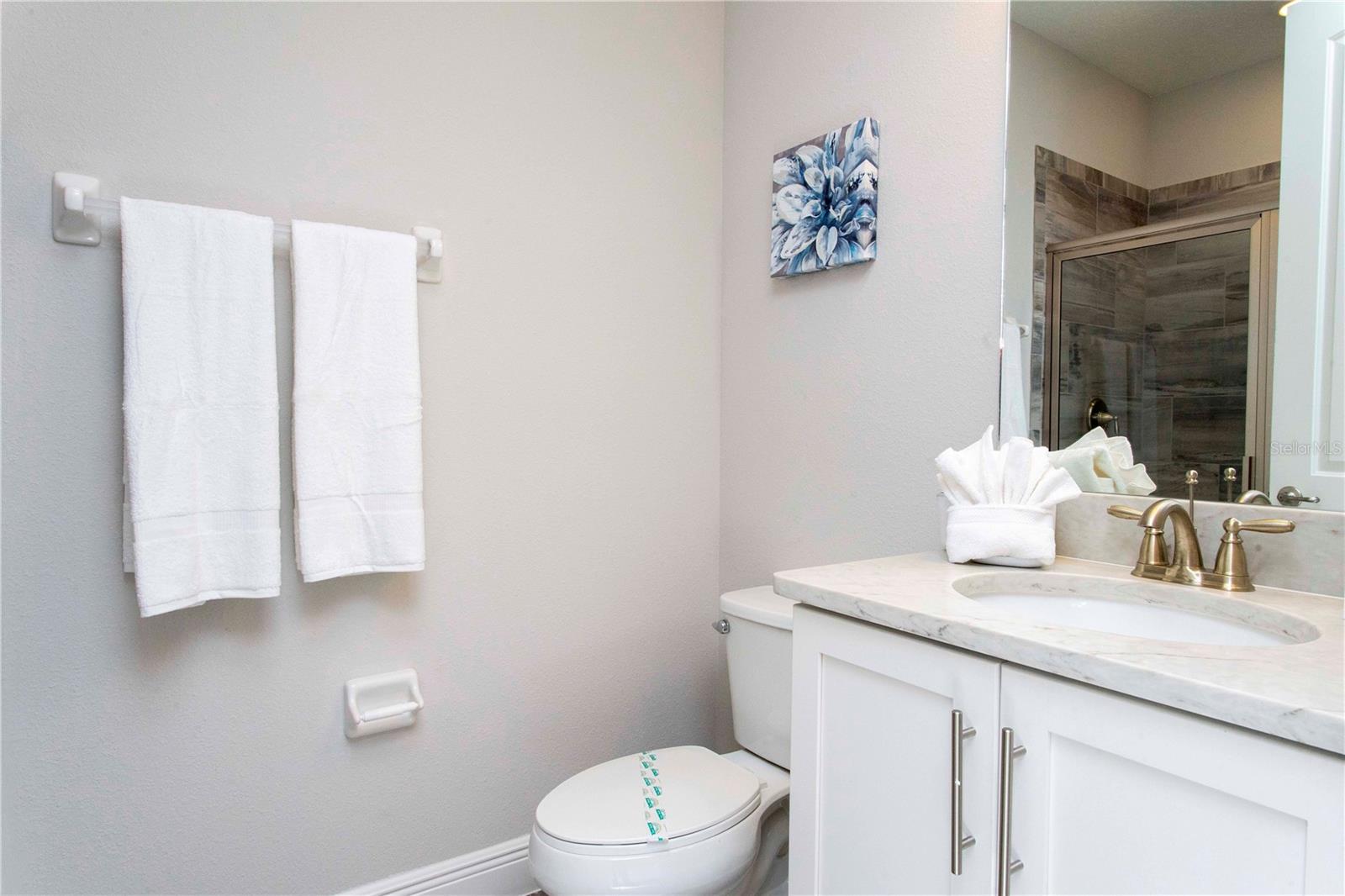 Great 6 bedroom floorplan with everything included (furniture and decoration). The home features over 3300 sq ft of air conditioned comfort. The fully equipped and large kitchen has upgraded quartz counters and stainless steel appliances. The comfortable family room has sliding doors leading to the oversize pool featuring both a heated spa and sunbathing deck. The garage is converted into a fun games room! There are TWO primary bedrooms in this home - one on the first floor with its own exit onto the expansive pool deck, and the second on the upper floor. Every bedroom has its own ensuite bathroom for the ultimate in convenience! You will find a movie theatre upstairs with movie style theatre seating as well as themed bedrooms and an upstairs laundry room. The home oozes elegance and quality and is currently operating as a vacation rental property with full management services. This wonderful, open floorplan is great for large families or guests to enjoy The Encore Club at Reunion which offers exciting amenities such as a water park with 3-story slides, sports activities featuring tennis courts, basketball courts, sand volleyball courts, and a clubhouse with a fitness center and restaurant. Minutes from all major theme park attractions, shopping centers, and restaurants, this wonderful move-in ready home is perfect for a second home, short-term rental, or full-time residence. Arrange your preview of this fabulous home today.
