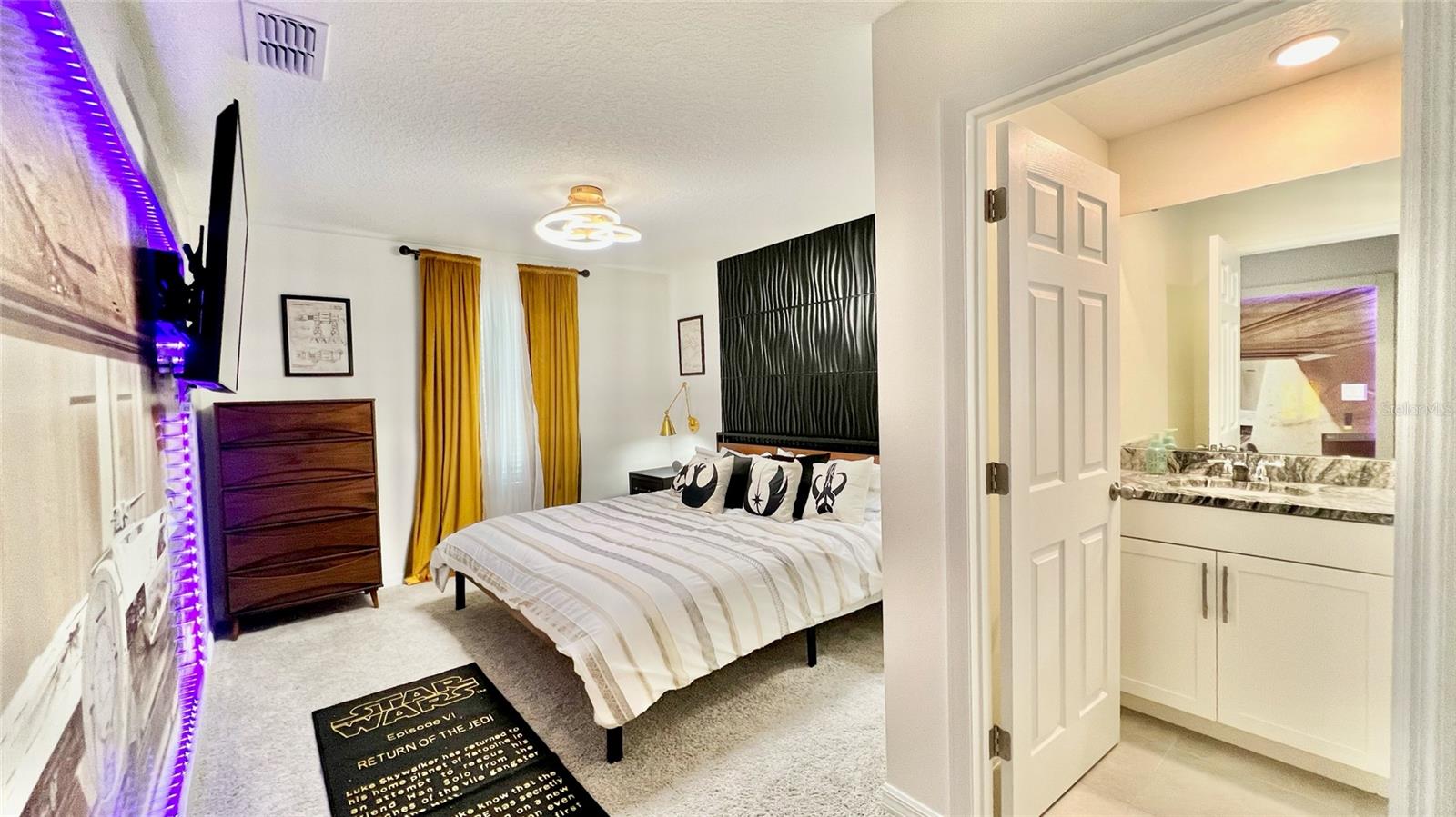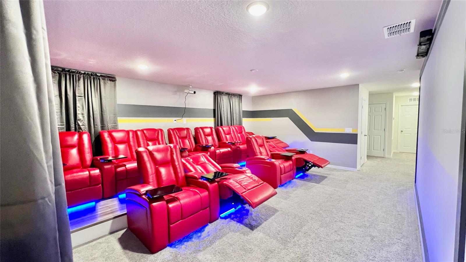 As one of the most sought-after floor plans by Mattamy Homes, this turnkey, modern 7-bedroom, 6.5-bath home offers a premium vacation experience. The oversized custom theater room sets this property apart, enhancing guest enjoyment and maximizing rental potential. Located within Solara Resort, one of Central Florida’s premier communities, this home offers both luxury and strong investment appeal. Built in 2022, this fully furnished home features a thoughtfully designed layout, including four king-size bedrooms (two with en-suites) and three additional guest suites (each with an en-suite or Jack-and-Jill bath). Themed bedrooms create a memorable experience for guests, increasing rental demand. Designed for comfort and durability, the home balances style with practical, low-maintenance features to support long-term reliability. The custom-designed theater room includes top-grain leather reclining seats for an immersive entertainment experience, while the covered patio and screened-in heated pool and spa provide the perfect outdoor retreat. Enjoy alfresco dining with a built-in BBQ, multiple seating areas, and two fire pits for ultimate relaxation. Solara Resort’s resort-style amenities include a full-service restaurant, ice cream parlor, coffee bar, state-of-the-art fitness center, and a variety of daily activities. Outdoor enthusiasts can enjoy basketball, beach volleyball, and soccer courts, while the zero-entry pool, cabanas, tiki bar, Flow Rider, and splash pad offer entertainment for all ages. HOA fees cover basic cable, high-speed internet, landscaping maintenance, valet trash service, and common area upkeep, providing convenience whether you live locally or out of state. Located just 8 miles from Walt Disney World and near Universal Studios, SeaWorld, and I-Drive, this home is ideally situated for both vacationers and investors. Whether you're looking for a luxury retreat or a high-performing rental property, this exceptional home delivers the perfect blend of comfort, style, and income potential.