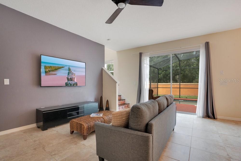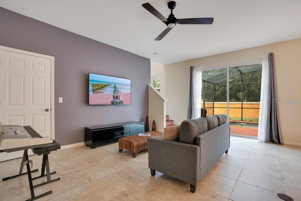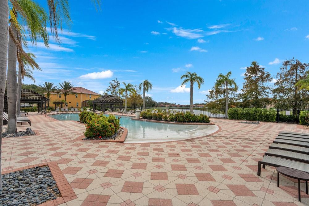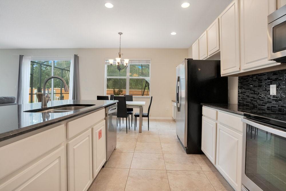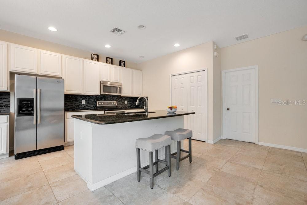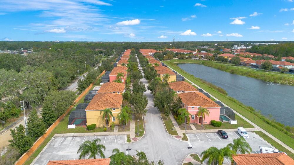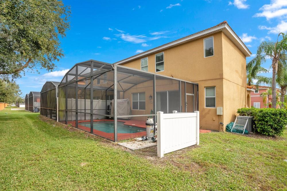 Captivating 4-bedroom, 3-bathroom townhome with private pool, located behind the gates of the luxurious Bella Vida Resort community. This corner unit townhouse has been impeccably maintained and features numerous upgrades throughout, including ceramic tile flooring in the living and dining rooms, and an open, updated kitchen with 42-inch cabinets, stainless steel appliances, granite countertops, beautiful mosaic backsplash, breakfast bar, and walk-in pantry—all offering stunning views of the gentle waters of the private pool and outdoor oasis. The first floor includes an oversized bedroom with a private bathroom. The second story features two additional bedrooms near the stairs and a spotless primary bedroom, tucked away to provide the perfect mix of space and privacy—a serene retreat after a day full of shopping or adventures at the theme parks. The remodeled primary bathroom boasts a frameless shower. This home offers exceptional versatility, making it the ideal investment for short-term rentals, long-term rentals, or even a primary residence. All of this is situated behind the 24-hour guarded gates of Bella Vida, with countless amenities including two community pools, over 15 acres of breathtaking lakes, a cyber café, game room, basketball and volleyball courts, a gathering room with TV, walking trails, scenic picnic area, tot lot playground, bocce ball, gorgeous Italian gardens, and association-provided Wi-Fi. Located just 15 minutes from Walt Disney World Resort, Disney Springs, the Premium Outlet malls, and about 20 minutes from Universal Studios, this townhome combines luxurious living with unbeatable convenience.