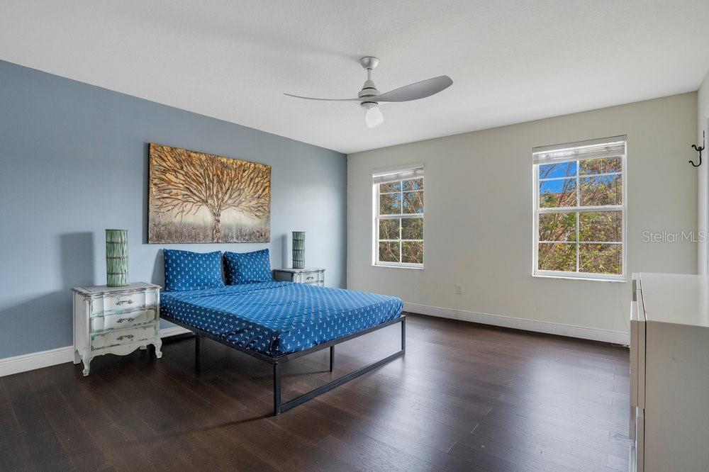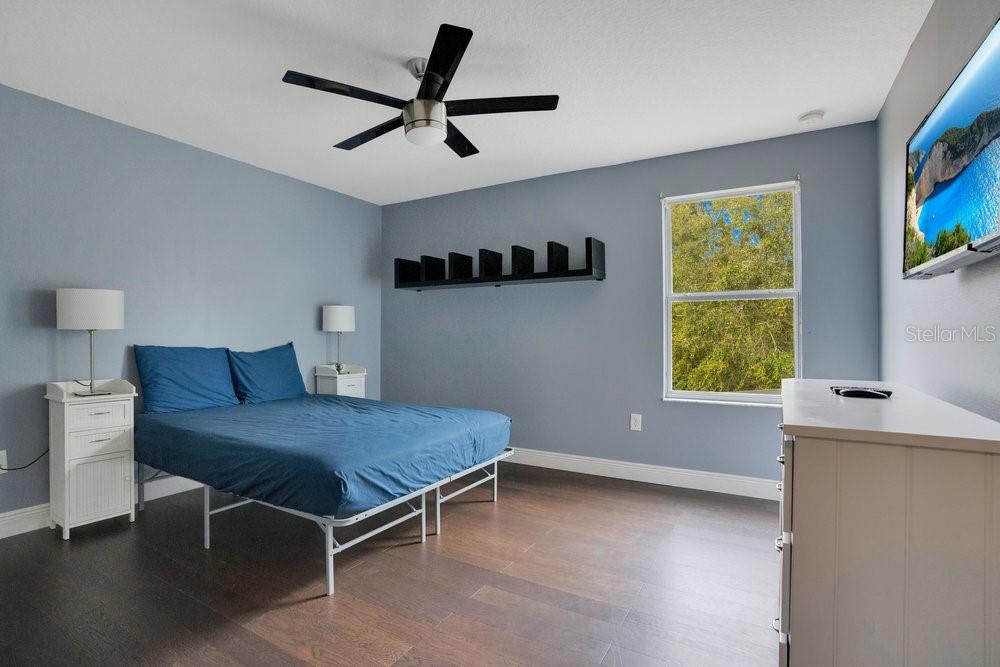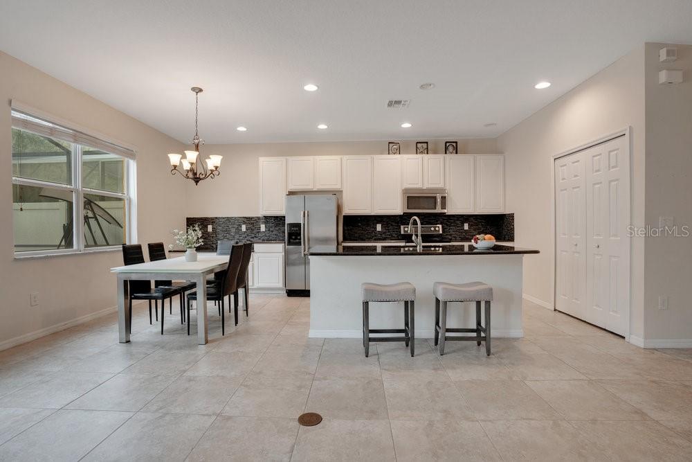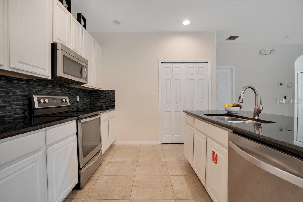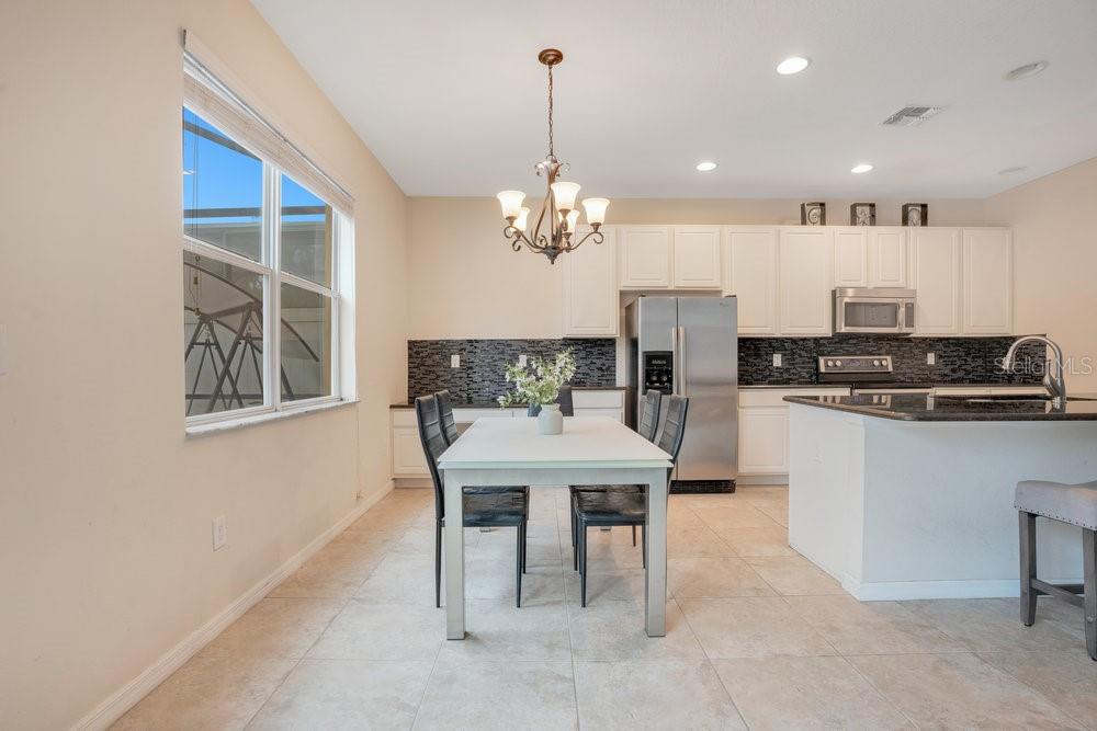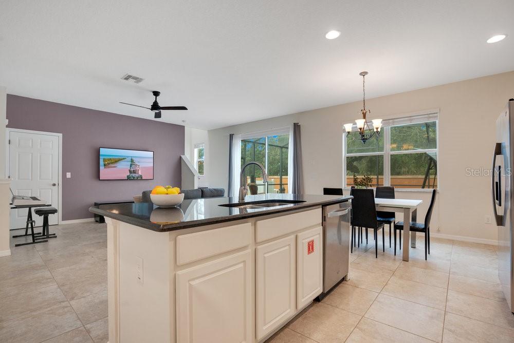 Captivating 4-bedroom, 3-bathroom townhome with private pool, located behind the gates of the luxurious Bella Vida Resort community. This corner unit townhouse has been impeccably maintained and features numerous upgrades throughout, including ceramic tile flooring in the living and dining rooms, and an open, updated kitchen with 42-inch cabinets, stainless steel appliances, granite countertops, beautiful mosaic backsplash, breakfast bar, and walk-in pantry—all offering stunning views of the gentle waters of the private pool and outdoor oasis. The first floor includes an oversized bedroom with a private bathroom. The second story features two additional bedrooms near the stairs and a spotless primary bedroom, tucked away to provide the perfect mix of space and privacy—a serene retreat after a day full of shopping or adventures at the theme parks. The remodeled primary bathroom boasts a frameless shower. This home offers exceptional versatility, making it the ideal investment for short-term rentals, long-term rentals, or even a primary residence. All of this is situated behind the 24-hour guarded gates of Bella Vida, with countless amenities including two community pools, over 15 acres of breathtaking lakes, a cyber café, game room, basketball and volleyball courts, a gathering room with TV, walking trails, scenic picnic area, tot lot playground, bocce ball, gorgeous Italian gardens, and association-provided Wi-Fi. Located just 15 minutes from Walt Disney World Resort, Disney Springs, the Premium Outlet malls, and about 20 minutes from Universal Studios, this townhome combines luxurious living with unbeatable convenience.