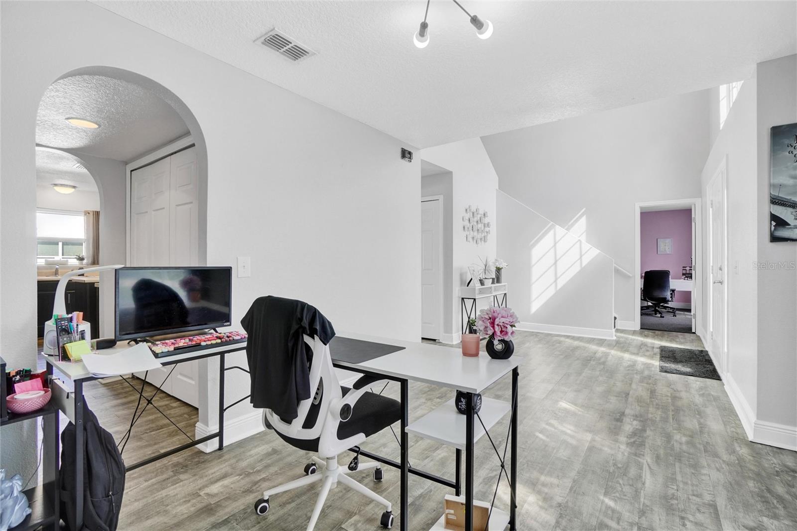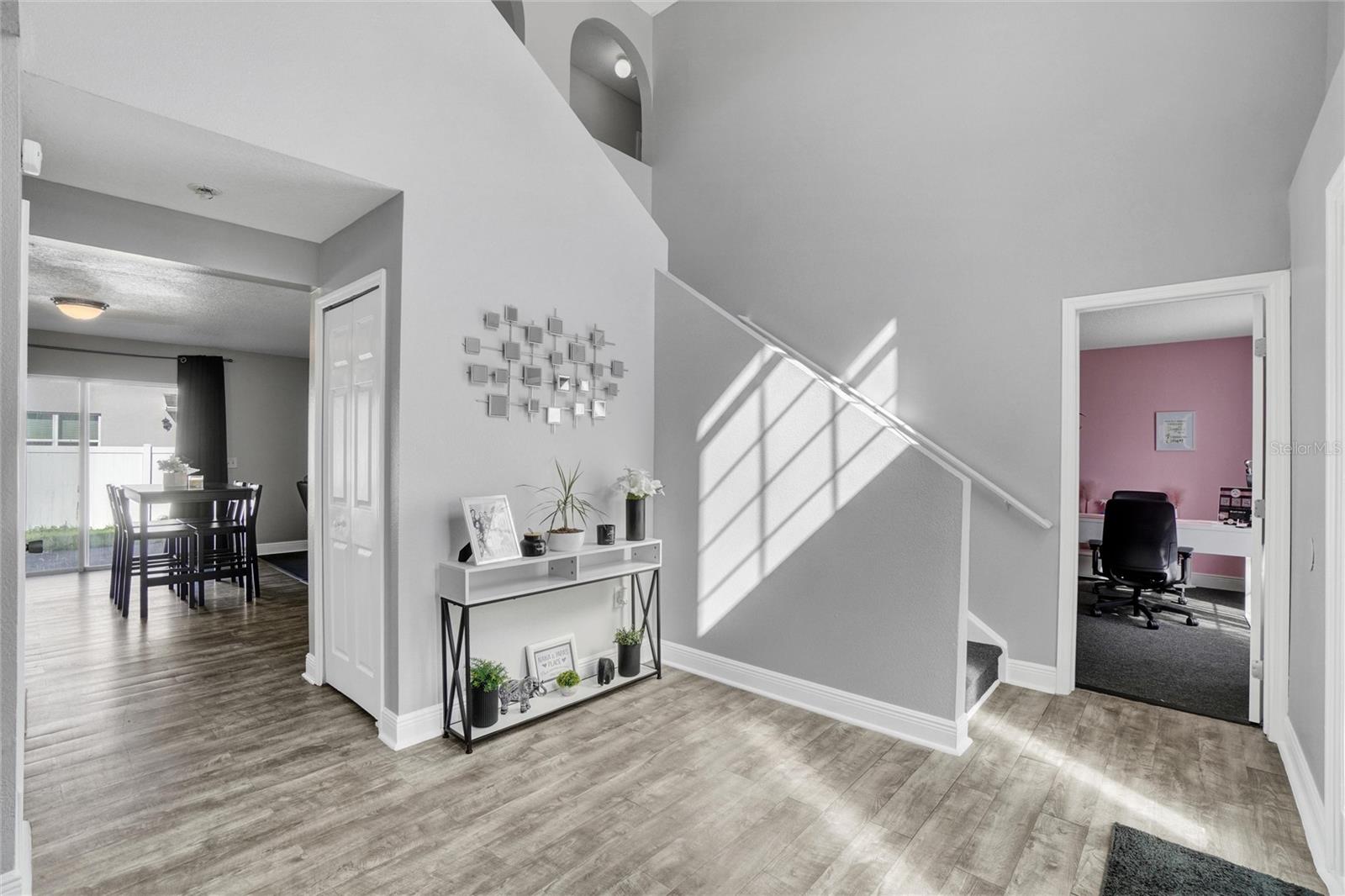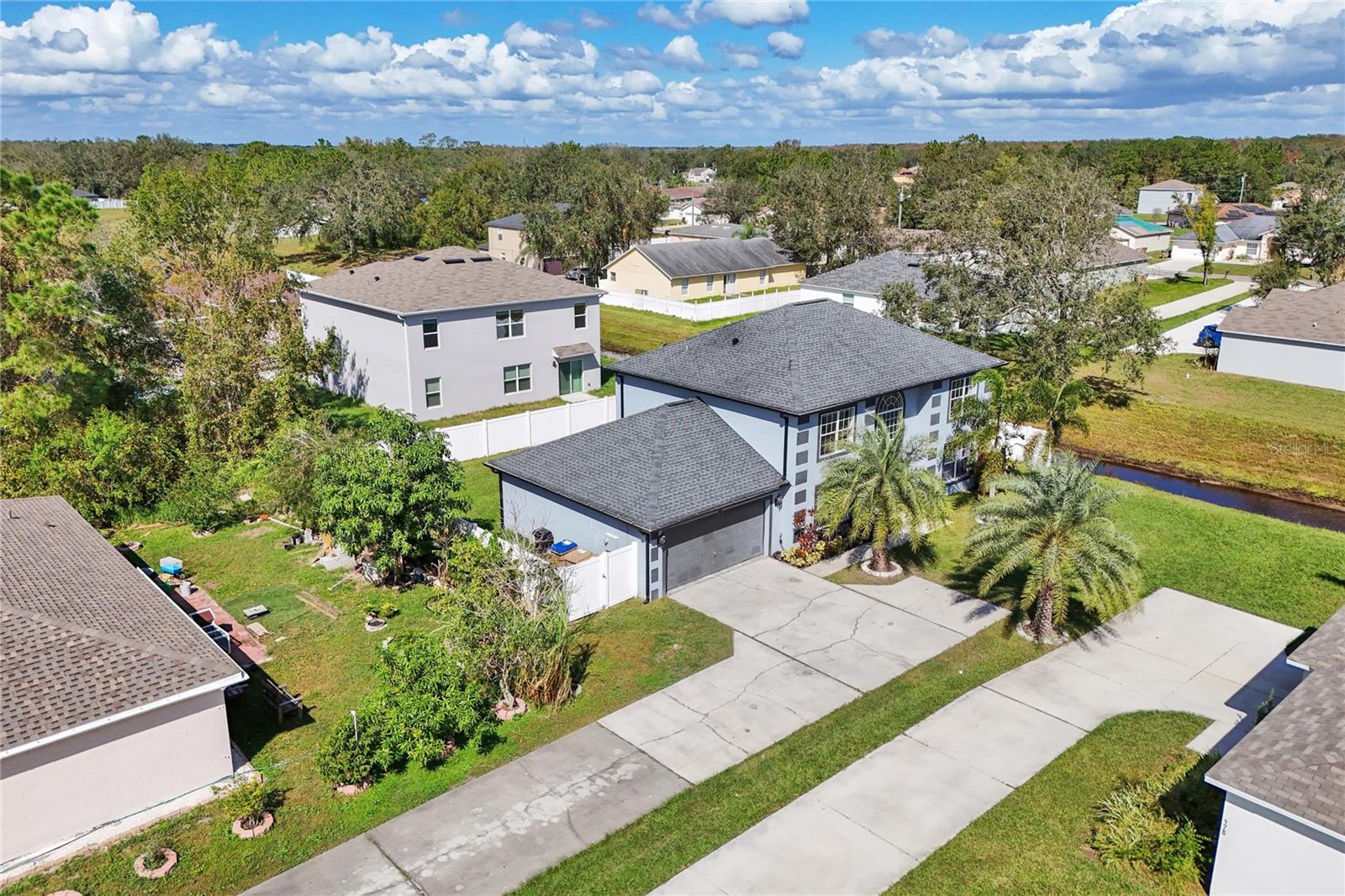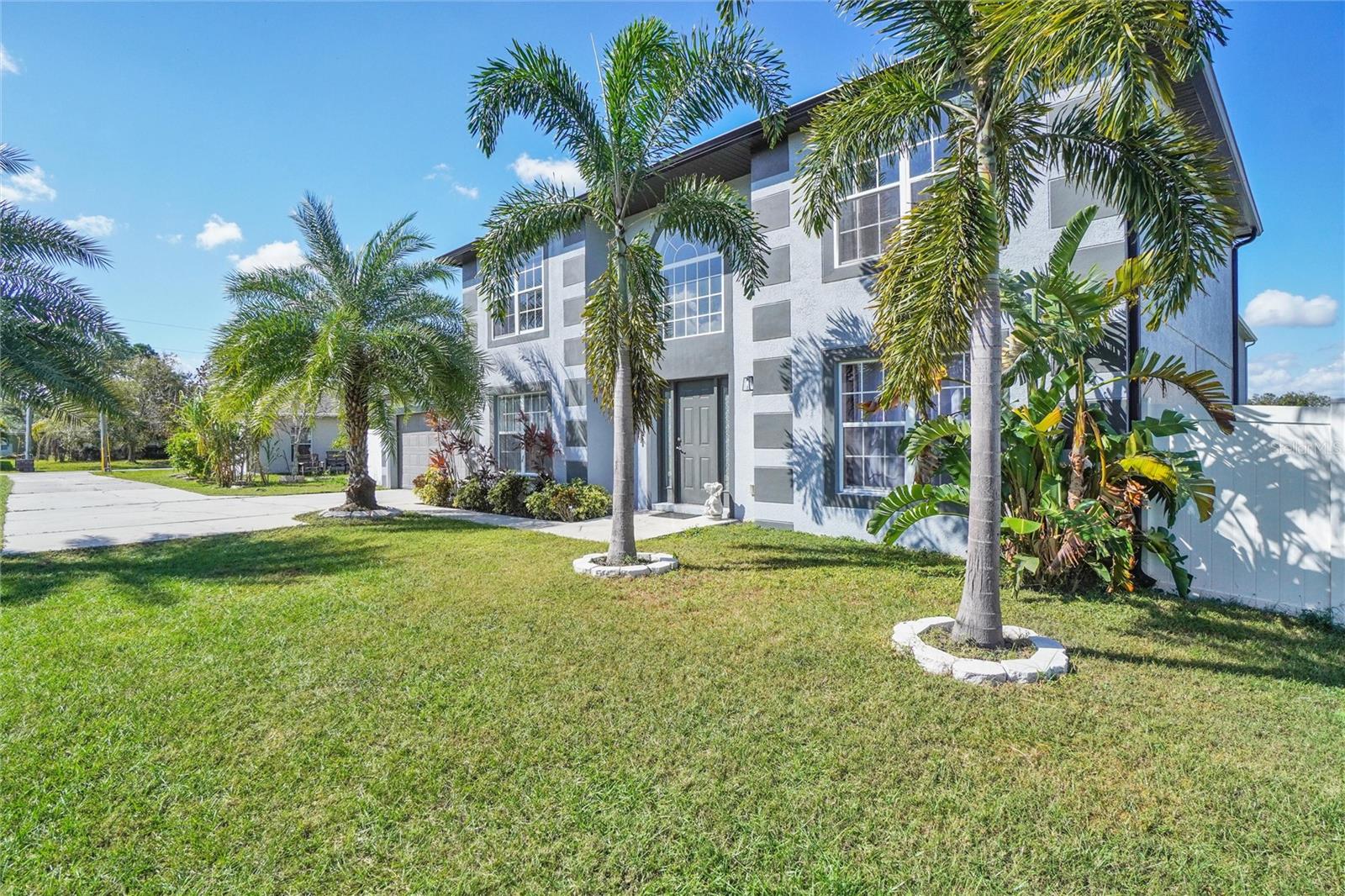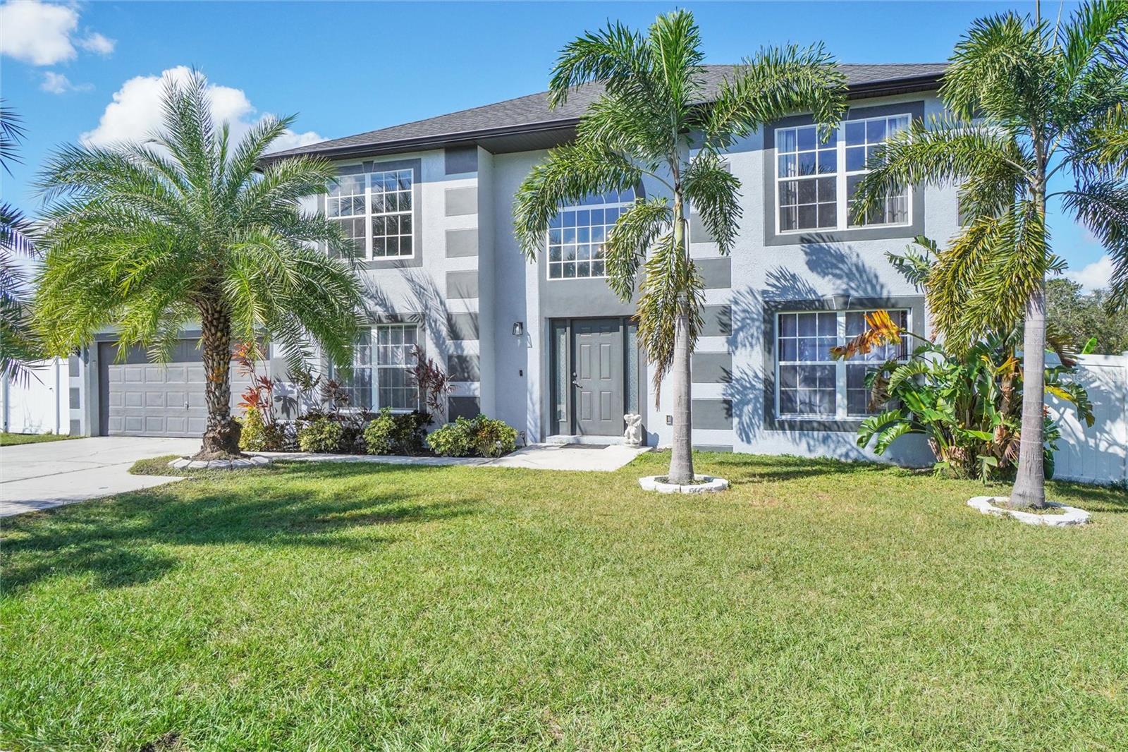 Palm tree paradise in Poinciana! This beautiful two-story home sits nicely tucked back on a larger lot. The long driveway leading up to the home gives the property peaceful privacy. At almost 2.400 sq. ft., this 5-bedroom, 2.5-bathroom home offers room for the whole family. When you enter the home, the tons of natural light and vaulted foyer ceilings provide an airy and welcoming feel. The open-concept kitchen and living room, with access to the back patio, make hosting family and friends a breeze. The home features 4 bedrooms upstairs, and a 5th larger bedroom downstairs currently being used as an office/work space. The backyard is fully fenced with a beautiful vinyl fence. In the yard, enjoy the several beautiful palm trees and lush mature landscaping. Conveniently located to shopping, dining, entertainment and the area theme parks, the location could not be better! Schedule your showing today!