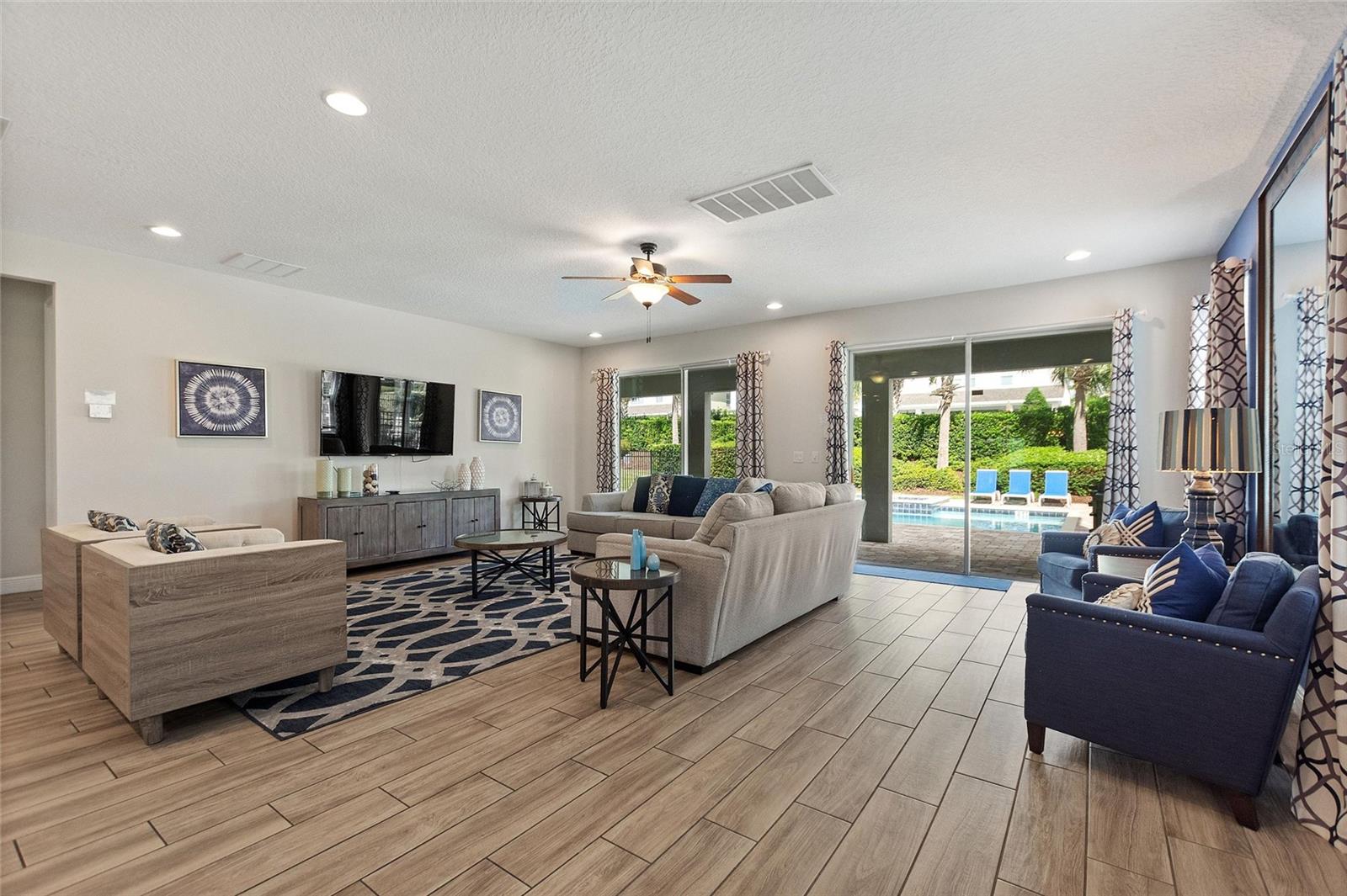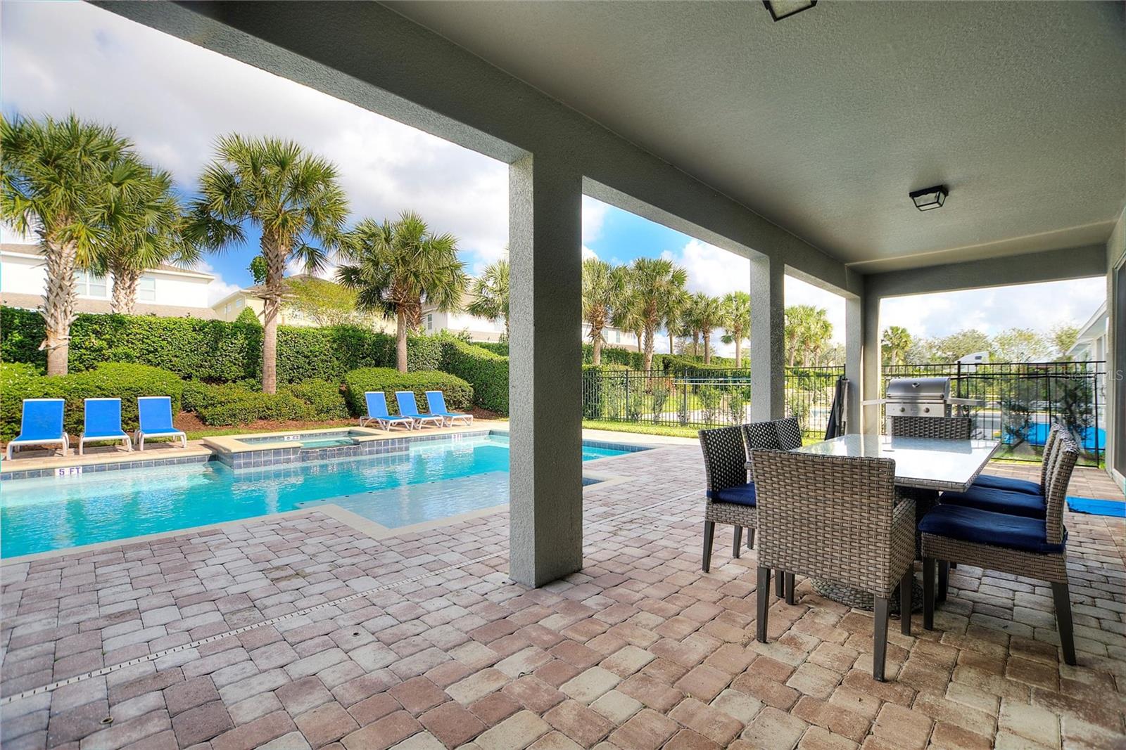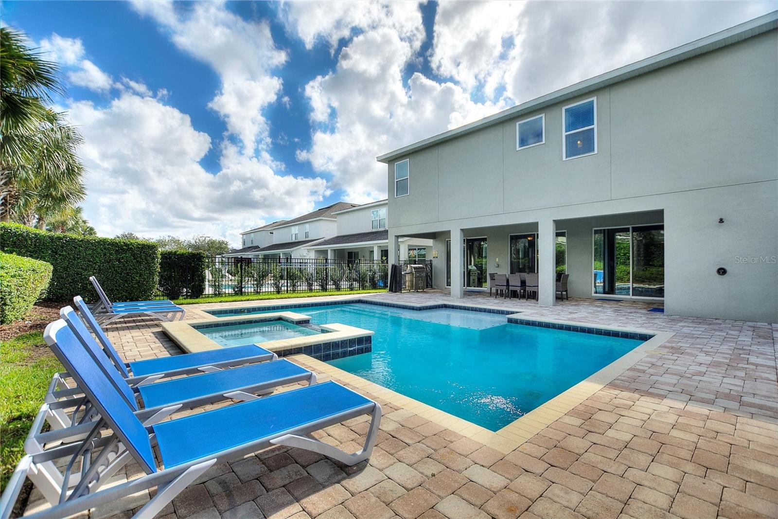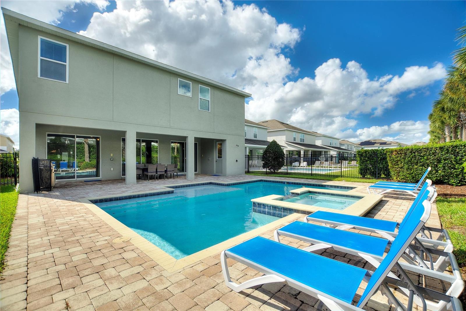 Welcome to your dream vacation home or short-term rental investment in the prestigious Encore Resort at Reunion West, a 24-hour guard-gated community offering world-class amenities. This fully furnished 9-bedroom, 8.5-bathroom home is perfect for relaxation and entertainment. Highlights include a private pool and spa, and spacious interiors designed for comfort and convenience. As you step inside, you’ll be greeted by an open, welcoming floor plan leading into a gourmet kitchen, complete with granite countertops, stainless steel appliances, two refrigerators, and two dishwashers—perfect for hosting large groups. Each bedroom provides its own unique ambiance, from peaceful retreats to fun, themed rooms ideal for guests of all ages. For indoor entertainment, enjoy the upstairs game room and media room—ideal for unwinding after a day at the nearby amusement parks or Encore's on-site water park, which features thrilling water slides, a splash pool, and a casual bar and restaurant at the clubhouse. The resort also offers a fitness center, spa services, and sports courts, including basketball, volleyball, and tennis, along with a concierge service for any additional needs. Conveniently located near I-4, this property provides quick access to Orlando's world-famous attractions, nearby restaurants, several championship golf courses, outlet malls, and Orlando International Airport. Whether you’re looking for a personal getaway or a prime short-term rental opportunity, this home in Encore Resort is ready to provide unforgettable experiences for all who visit.
