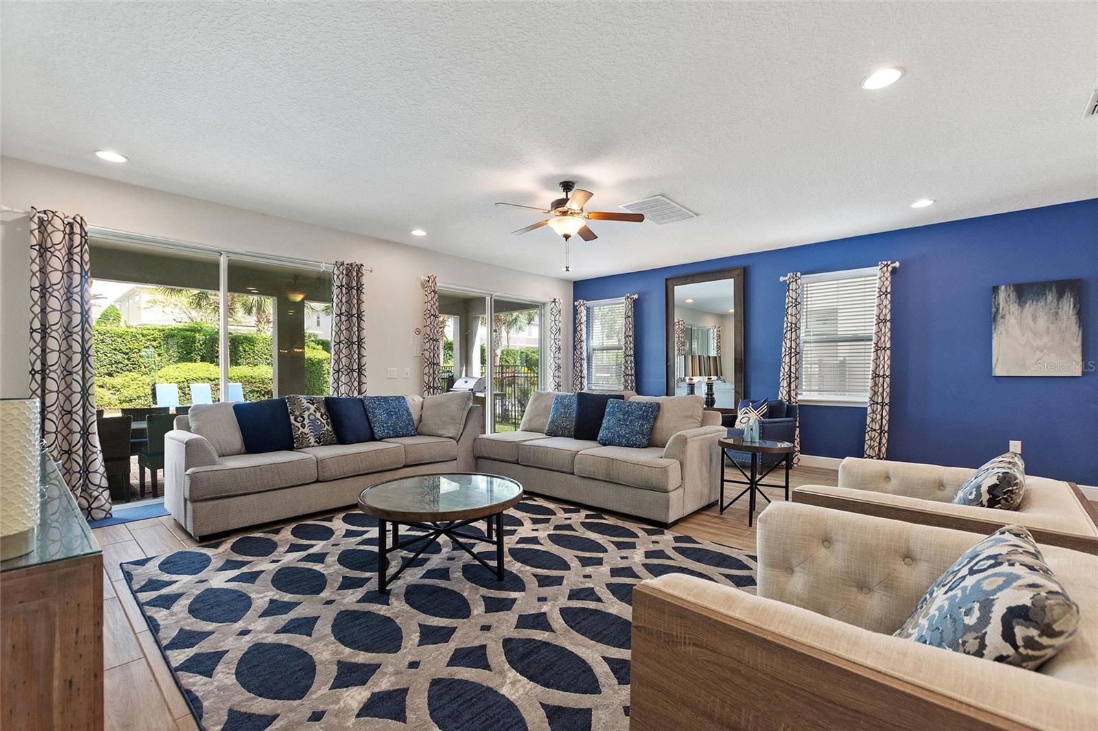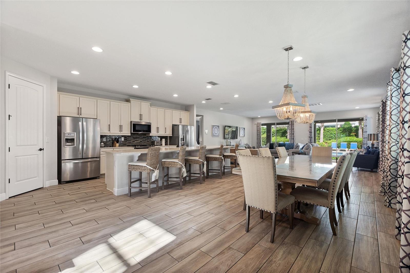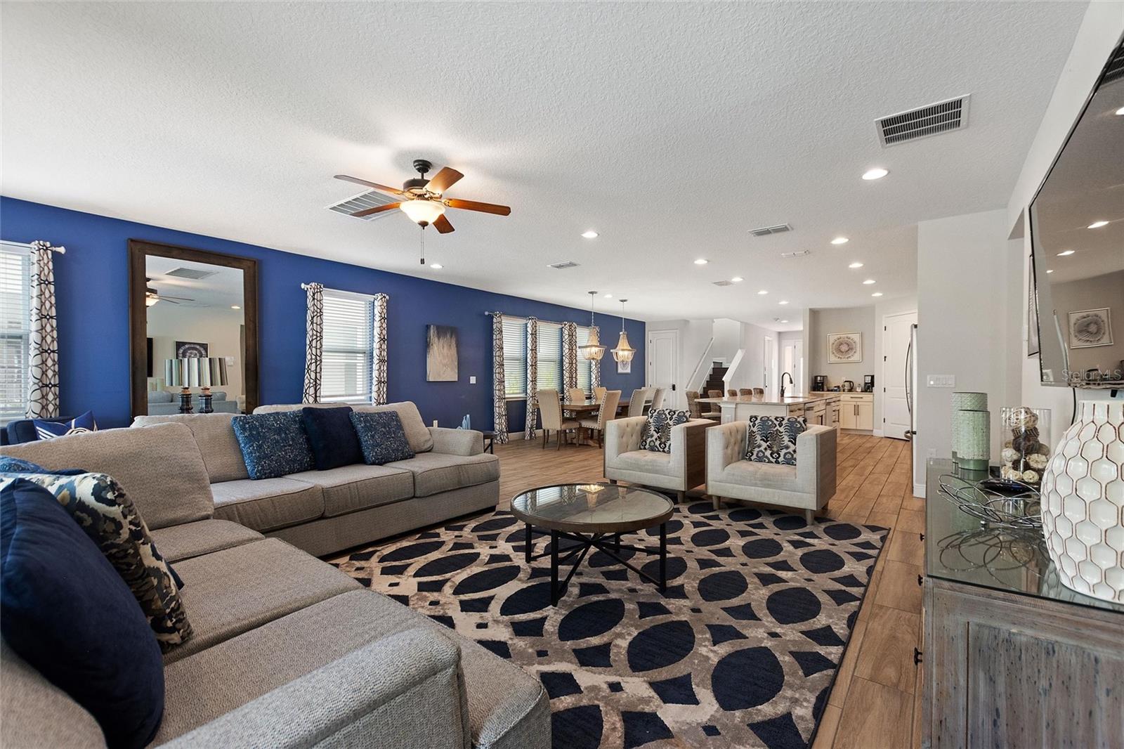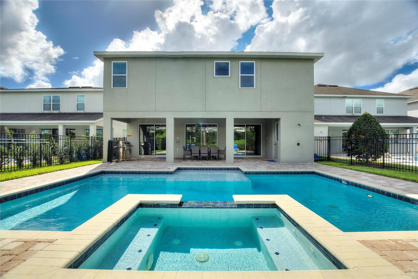 Welcome to your dream vacation home or short-term rental investment in the prestigious Encore Resort at Reunion West, a 24-hour guard-gated community offering world-class amenities. This fully furnished 9-bedroom, 8.5-bathroom home is perfect for relaxation and entertainment. Highlights include a private pool and spa, and spacious interiors designed for comfort and convenience. As you step inside, you’ll be greeted by an open, welcoming floor plan leading into a gourmet kitchen, complete with granite countertops, stainless steel appliances, two refrigerators, and two dishwashers—perfect for hosting large groups. Each bedroom provides its own unique ambiance, from peaceful retreats to fun, themed rooms ideal for guests of all ages. For indoor entertainment, enjoy the upstairs game room and media room—ideal for unwinding after a day at the nearby amusement parks or Encore's on-site water park, which features thrilling water slides, a splash pool, and a casual bar and restaurant at the clubhouse. The resort also offers a fitness center, spa services, and sports courts, including basketball, volleyball, and tennis, along with a concierge service for any additional needs. Conveniently located near I-4, this property provides quick access to Orlando's world-famous attractions, nearby restaurants, several championship golf courses, outlet malls, and Orlando International Airport. Whether you’re looking for a personal getaway or a prime short-term rental opportunity, this home in Encore Resort is ready to provide unforgettable experiences for all who visit.