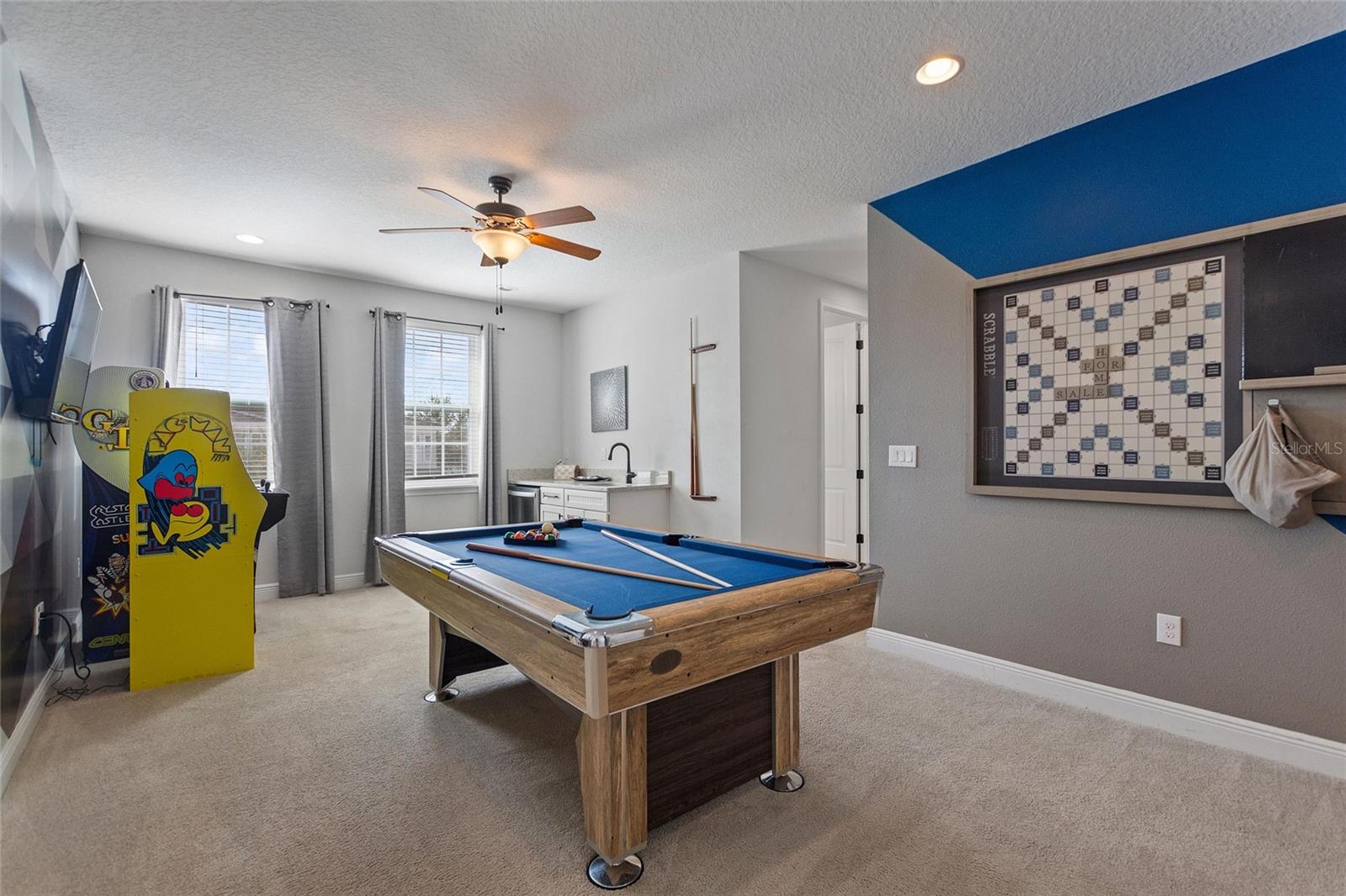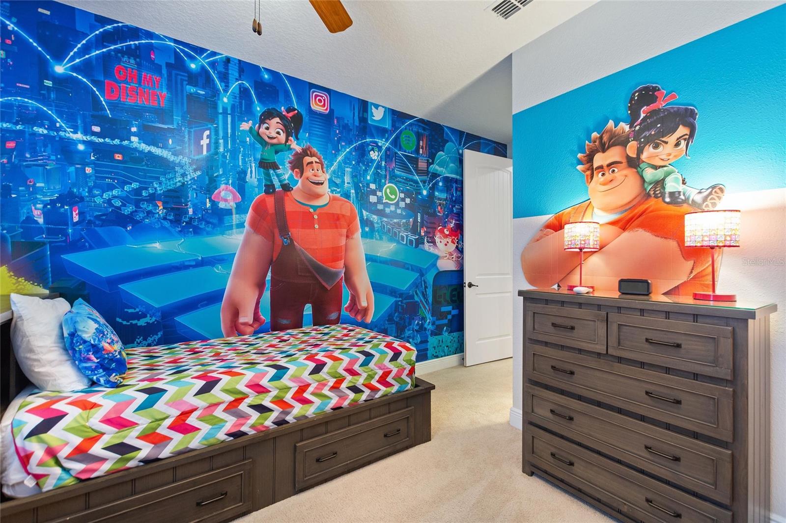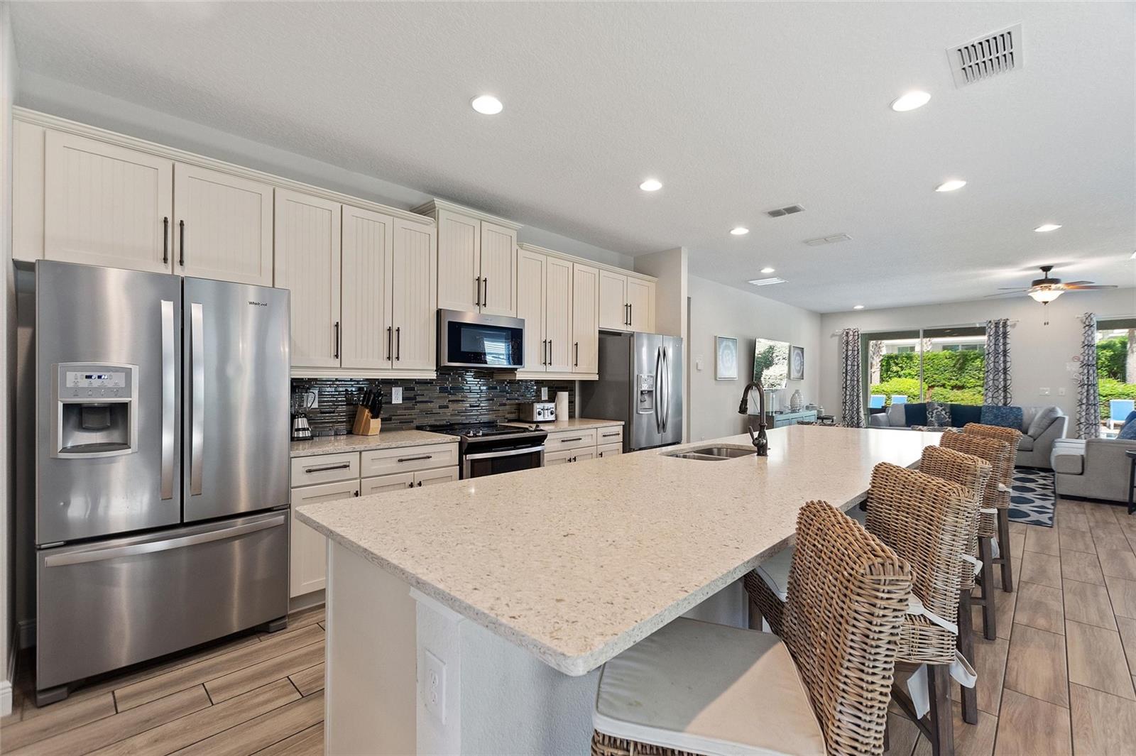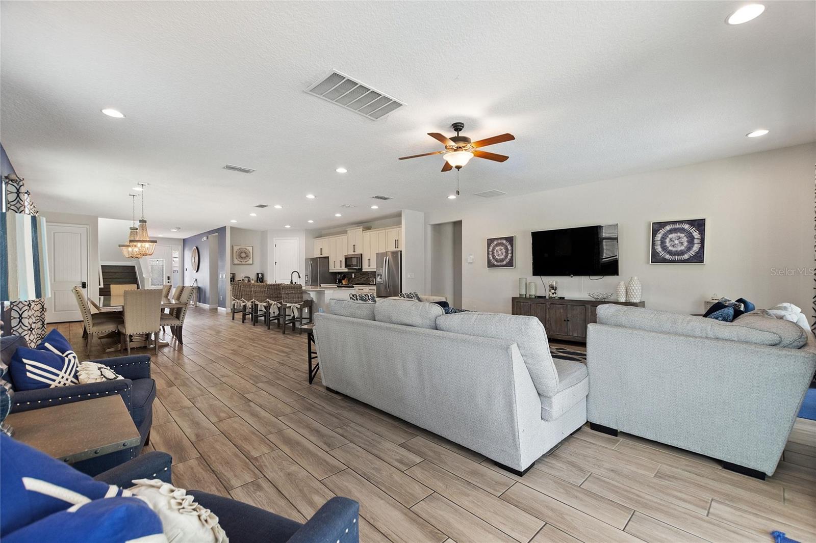 Welcome to your dream vacation home or short-term rental investment in the prestigious Encore Resort at Reunion West, a 24-hour guard-gated community offering world-class amenities. This fully furnished 9-bedroom, 8.5-bathroom home is perfect for relaxation and entertainment. Highlights include a private pool and spa, and spacious interiors designed for comfort and convenience. As you step inside, you’ll be greeted by an open, welcoming floor plan leading into a gourmet kitchen, complete with granite countertops, stainless steel appliances, two refrigerators, and two dishwashers—perfect for hosting large groups. Each bedroom provides its own unique ambiance, from peaceful retreats to fun, themed rooms ideal for guests of all ages. For indoor entertainment, enjoy the upstairs game room and media room—ideal for unwinding after a day at the nearby amusement parks or Encore's on-site water park, which features thrilling water slides, a splash pool, and a casual bar and restaurant at the clubhouse. The resort also offers a fitness center, spa services, and sports courts, including basketball, volleyball, and tennis, along with a concierge service for any additional needs. Conveniently located near I-4, this property provides quick access to Orlando's world-famous attractions, nearby restaurants, several championship golf courses, outlet malls, and Orlando International Airport. Whether you’re looking for a personal getaway or a prime short-term rental opportunity, this home in Encore Resort is ready to provide unforgettable experiences for all who visit.