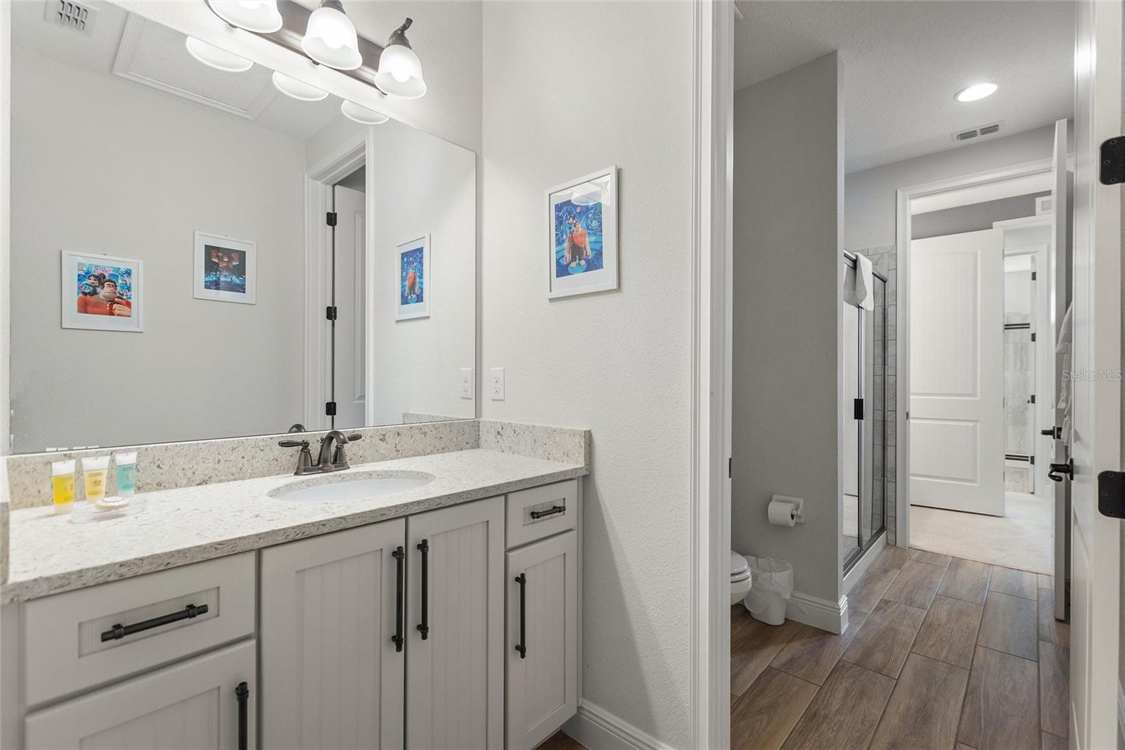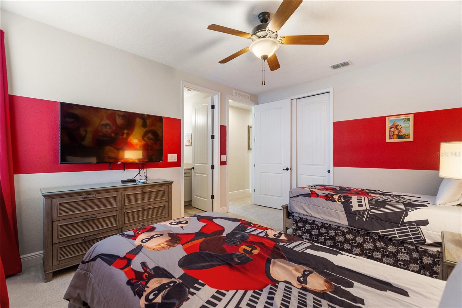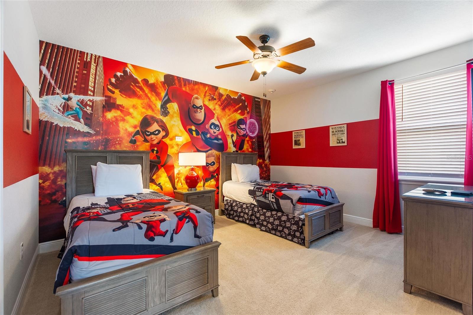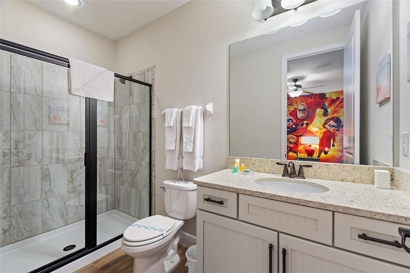 Welcome to your dream vacation home or short-term rental investment in the prestigious Encore Resort at Reunion West, a 24-hour guard-gated community offering world-class amenities. This fully furnished 9-bedroom, 8.5-bathroom home is perfect for relaxation and entertainment. Highlights include a private pool and spa, and spacious interiors designed for comfort and convenience. As you step inside, you’ll be greeted by an open, welcoming floor plan leading into a gourmet kitchen, complete with granite countertops, stainless steel appliances, two refrigerators, and two dishwashers—perfect for hosting large groups. Each bedroom provides its own unique ambiance, from peaceful retreats to fun, themed rooms ideal for guests of all ages. For indoor entertainment, enjoy the upstairs game room and media room—ideal for unwinding after a day at the nearby amusement parks or Encore's on-site water park, which features thrilling water slides, a splash pool, and a casual bar and restaurant at the clubhouse. The resort also offers a fitness center, spa services, and sports courts, including basketball, volleyball, and tennis, along with a concierge service for any additional needs. Conveniently located near I-4, this property provides quick access to Orlando's world-famous attractions, nearby restaurants, several championship golf courses, outlet malls, and Orlando International Airport. Whether you’re looking for a personal getaway or a prime short-term rental opportunity, this home in Encore Resort is ready to provide unforgettable experiences for all who visit.