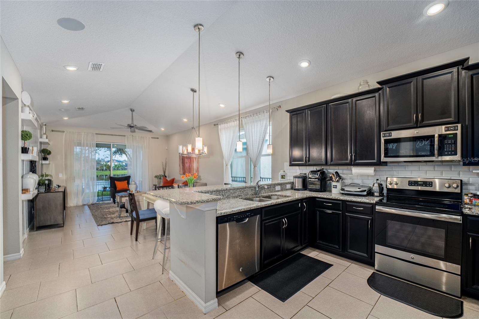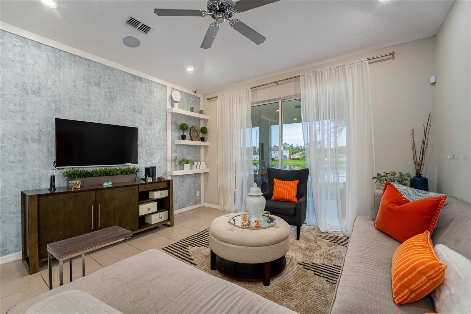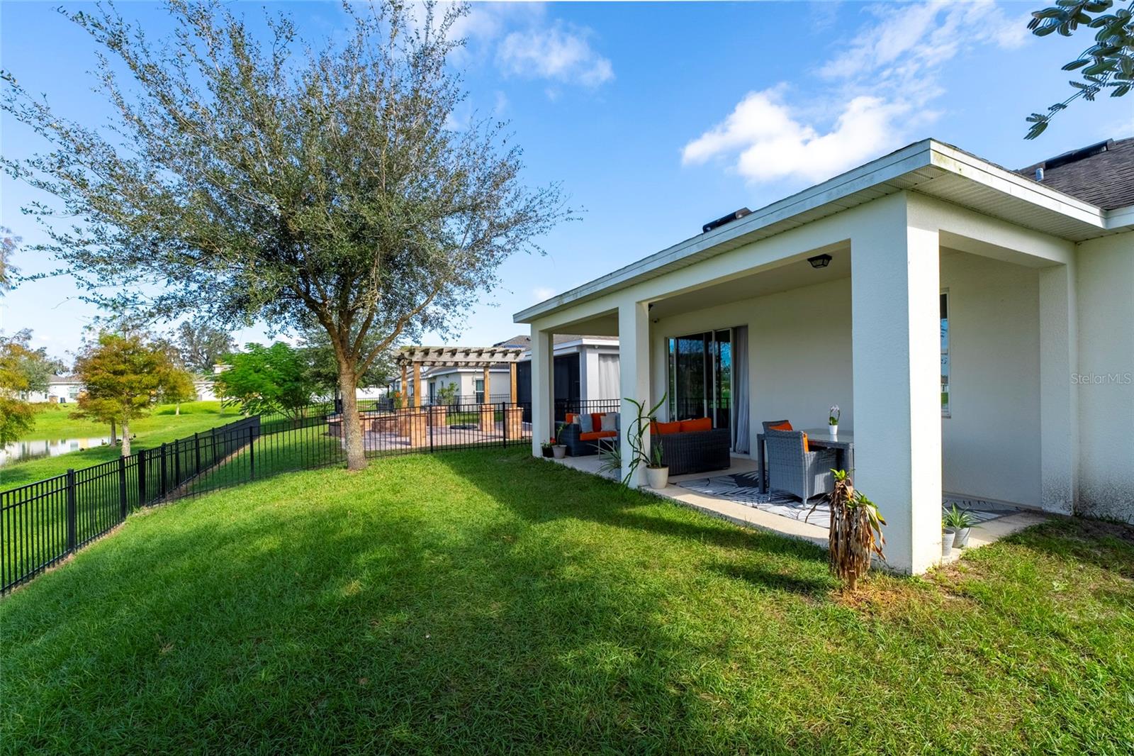 Beautiful house, overlooking the lake behind the property. This house has many upgrades, stone counter tops, it was the model home for the community. Advantage of being a single-story home. It is next to the club house. This is the most attractive home in this neighborhood. Spacious, comfortable, truly a family home with an incredible vibe. The kitchen is equipped with stainless steel appliances and 42” cabinets. A completely upgraded, modern interior. The entire house is double-pane windows, what makes it energy efficient. A entire security camera system. Sound system throughout the house. The two car garage is expected to be an office or games room. Outside, there’s a fenced backyard. The furniture is optional, if you like it you can arrange it with the seller. If you are looking for the right home for your family, this is for you.