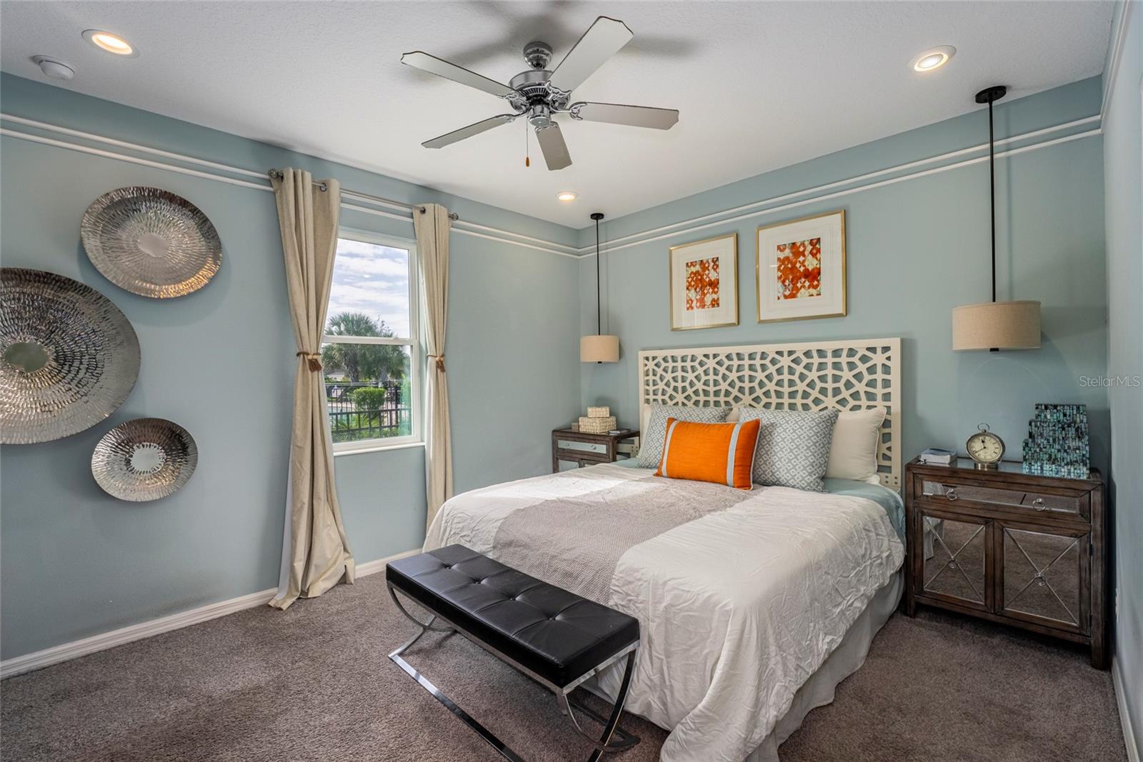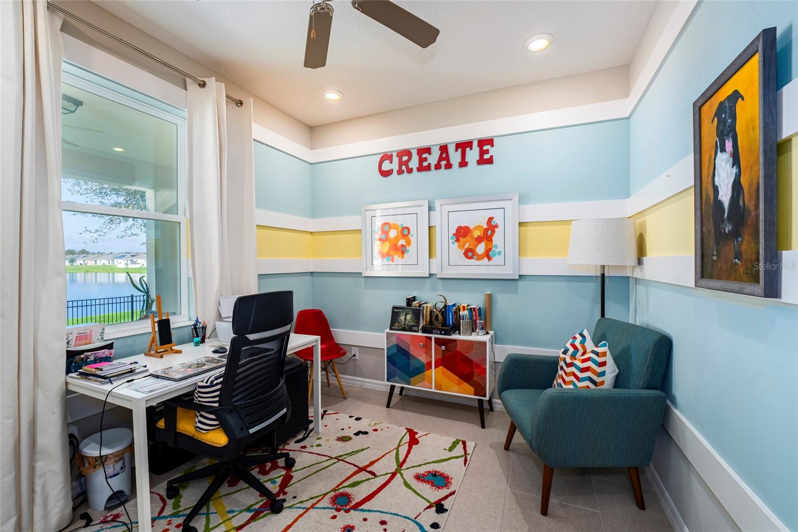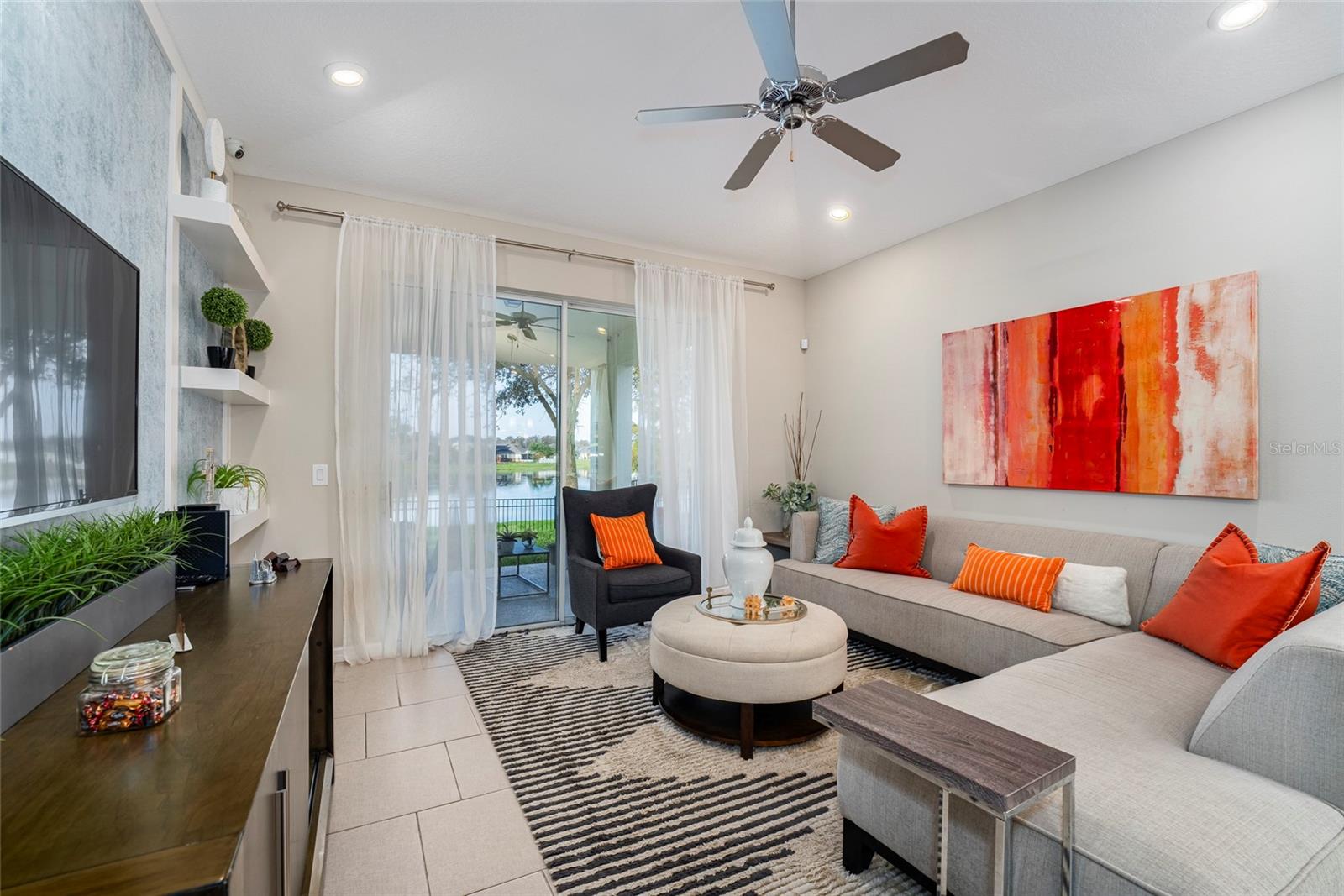 Beautiful house, overlooking the lake behind the property. This house has many upgrades, stone counter tops, it was the model home for the community. Advantage of being a single-story home. It is next to the club house. This is the most attractive home in this neighborhood. Spacious, comfortable, truly a family home with an incredible vibe. The kitchen is equipped with stainless steel appliances and 42” cabinets. A completely upgraded, modern interior. The entire house is double-pane windows, what makes it energy efficient. A entire security camera system. Sound system throughout the house. The two car garage is expected to be an office or games room. Outside, there’s a fenced backyard. The furniture is optional, if you like it you can arrange it with the seller. If you are looking for the right home for your family, this is for you.