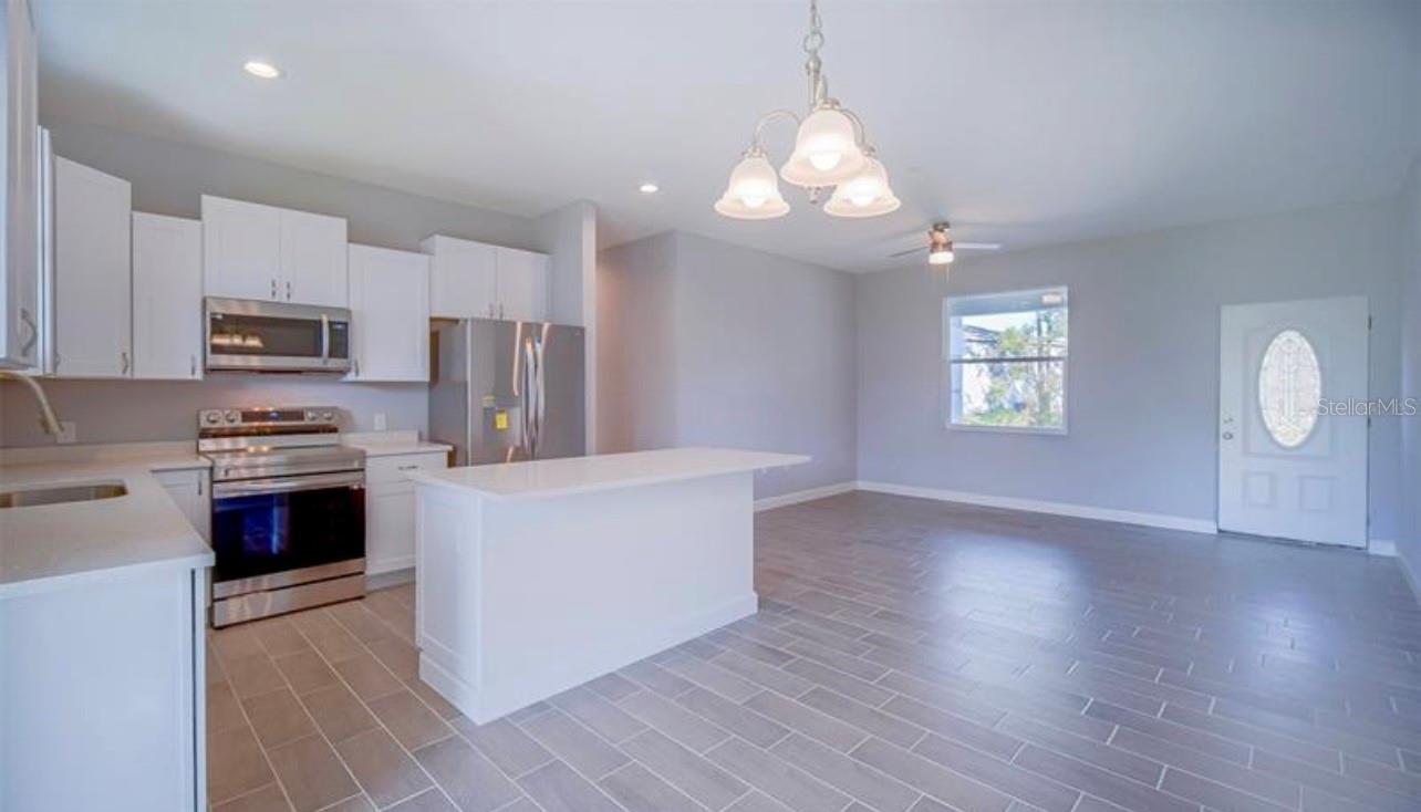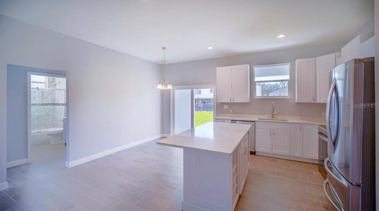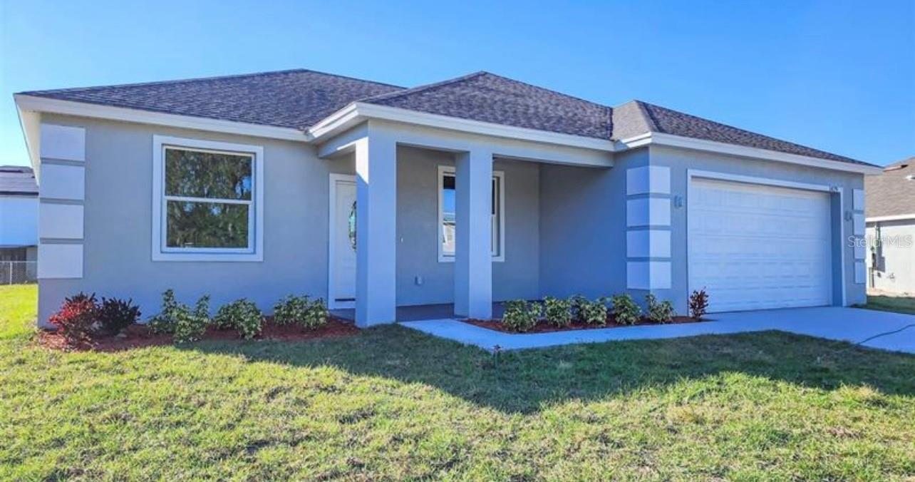 Welcome to this stunning single-story home, built in 2022, offering modern elegance and comfort. This 3-bedroom, 2-bath property boasts an inviting open floor plan with 10 ft. ceilings, enhancing the spacious feel throughout. The heart of the home is the gorgeous kitchen, complete with a beautifully designed island, perfect for casual dining and entertaining. Enjoy quality family time or entertain guests in the expansive family room, which flows seamlessly through sliding doors to the covered lanai and a large backyard, ideal for outdoor relaxation. The private laundry room adds to the convenience of this thoughtfully laid-out space. Located in a community with an affordable HOA of just $83 a month, which includes internet and cable through Spectrum, this property offers not only luxury but great value.