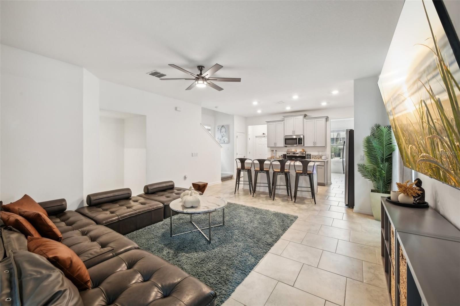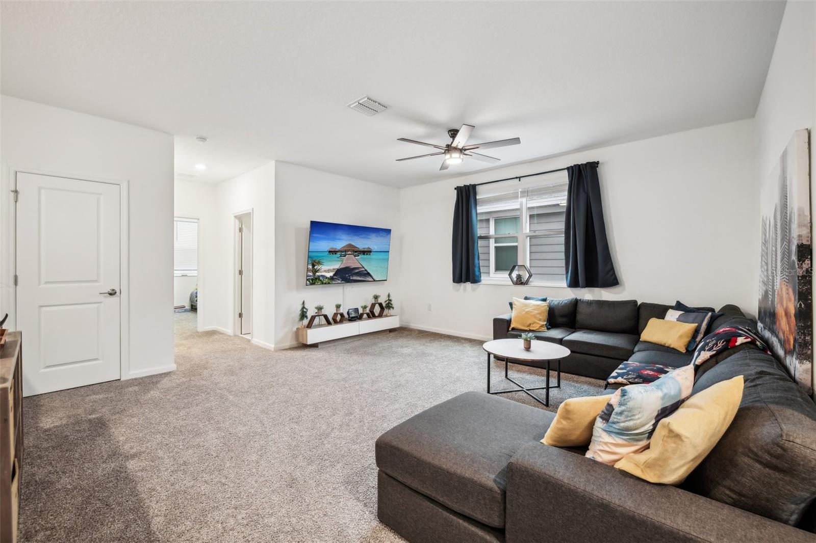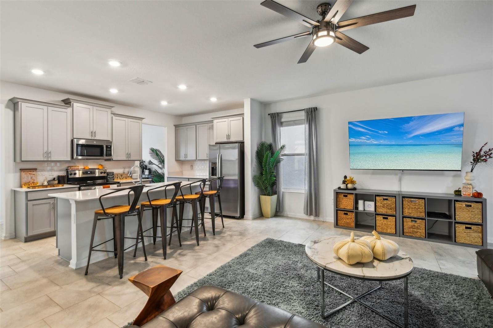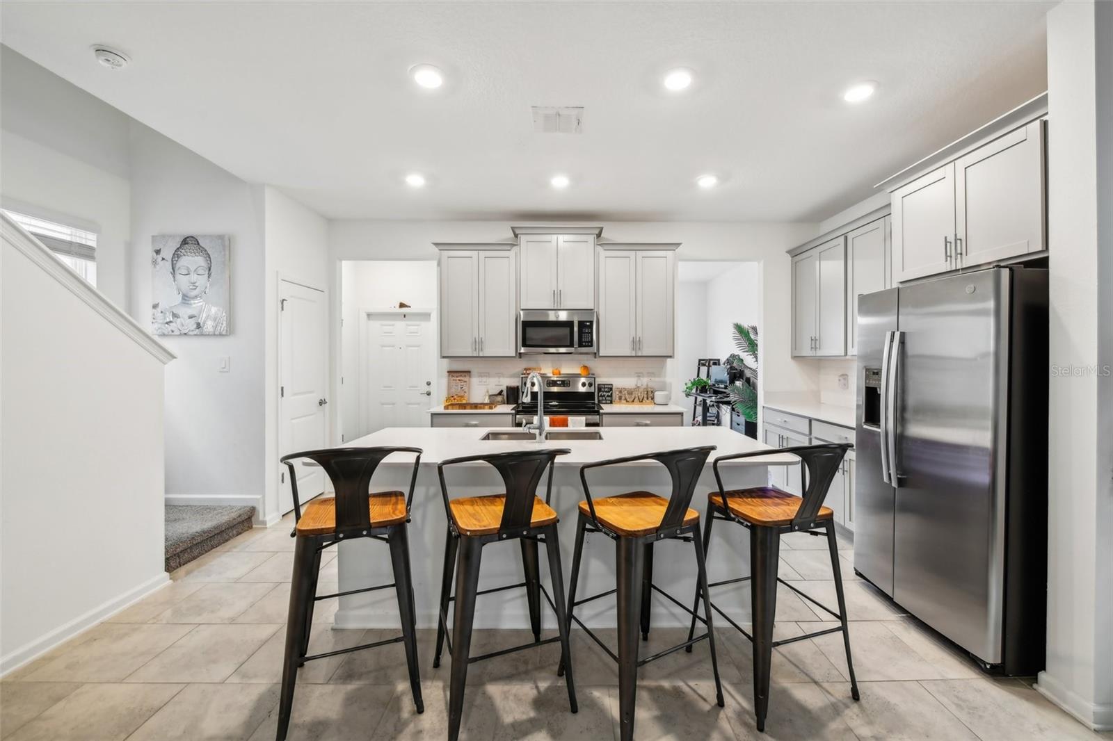 Welcome to this stunning 4-bedroom, 3.5-bathroom home in the highly sought-after Tohoqua community of Kissimmee, Florida. Built in 2022, this modern 2,537 sq ft home provides a spacious layout with plenty of room for family living and entertaining. The open-concept design is highlighted by ceramic tile throughout the main living areas, while plush carpet provides comfort in the bedrooms and loft. The heart of the home is the beautiful kitchen, featuring sleek stainless steel appliances, a large center island perfect for casual dining, and stylish modern cabinetry. The luxurious primary bedroom is conveniently located on the main floor and includes an en suite bathroom with dual sinks and a walk-in shower, providing a peaceful retreat. Upstairs, you’ll find a versatile bonus loft area that can serve as a home office, media room, or living area. Step outside to the covered and screened-in patio, ideal for relaxing while enjoying Florida’s beautiful weather. The home also includes a two-car garage for added convenience. Living in the Tohoqua community means access to a wealth of amenities, including a fitness center, park, pool, and tennis courts. This is the perfect home for those looking to enjoy modern living in a vibrant, well-appointed community.