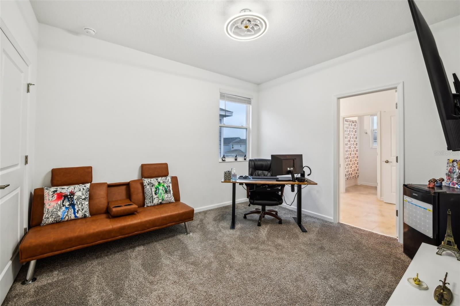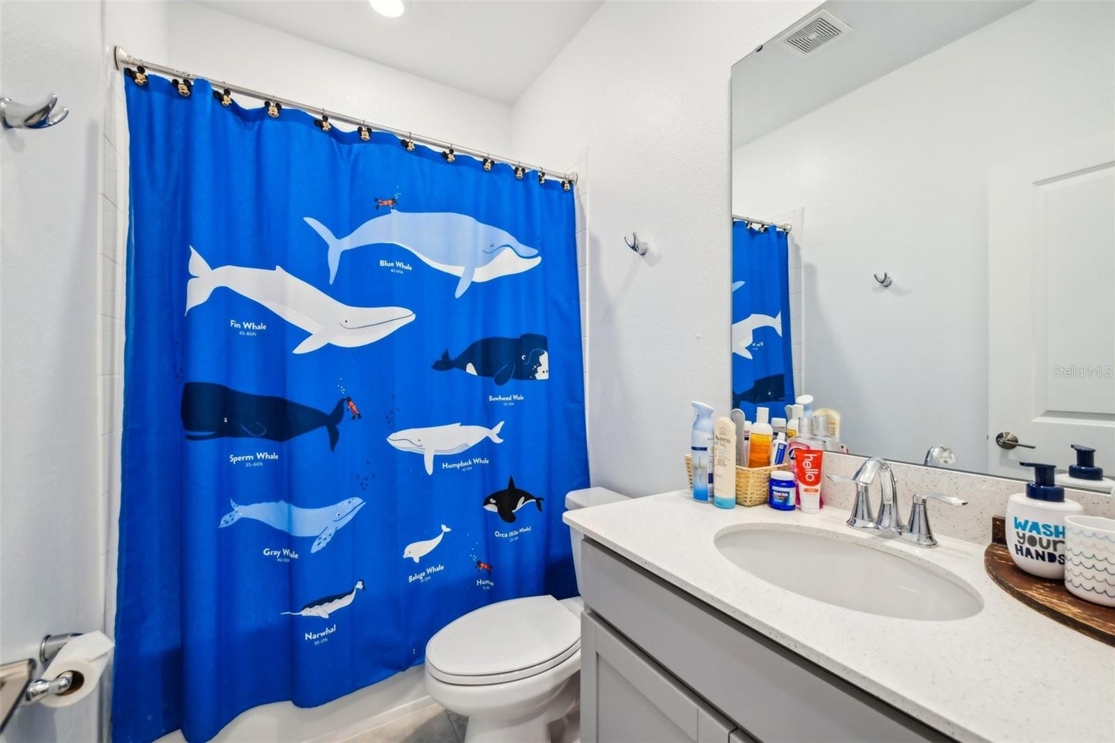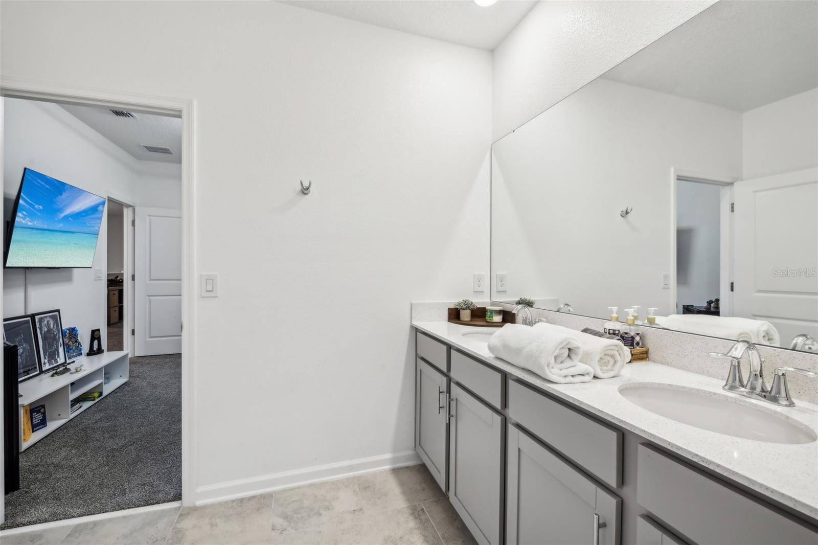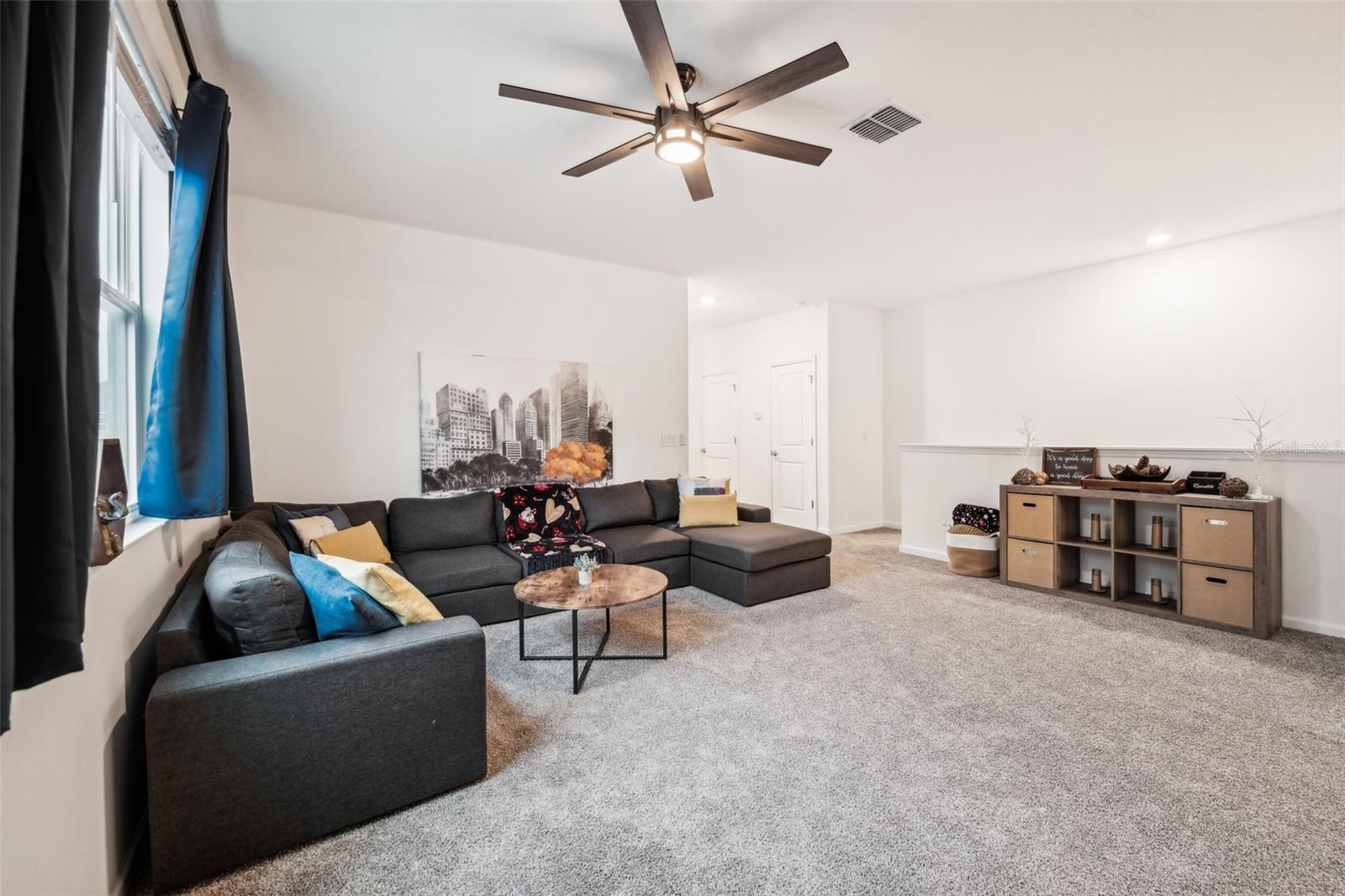 Welcome to this stunning 4-bedroom, 3.5-bathroom home in the highly sought-after Tohoqua community of Kissimmee, Florida. Built in 2022, this modern 2,537 sq ft home provides a spacious layout with plenty of room for family living and entertaining. The open-concept design is highlighted by ceramic tile throughout the main living areas, while plush carpet provides comfort in the bedrooms and loft. The heart of the home is the beautiful kitchen, featuring sleek stainless steel appliances, a large center island perfect for casual dining, and stylish modern cabinetry. The luxurious primary bedroom is conveniently located on the main floor and includes an en suite bathroom with dual sinks and a walk-in shower, providing a peaceful retreat. Upstairs, you’ll find a versatile bonus loft area that can serve as a home office, media room, or living area. Step outside to the covered and screened-in patio, ideal for relaxing while enjoying Florida’s beautiful weather. The home also includes a two-car garage for added convenience. Living in the Tohoqua community means access to a wealth of amenities, including a fitness center, park, pool, and tennis courts. This is the perfect home for those looking to enjoy modern living in a vibrant, well-appointed community.