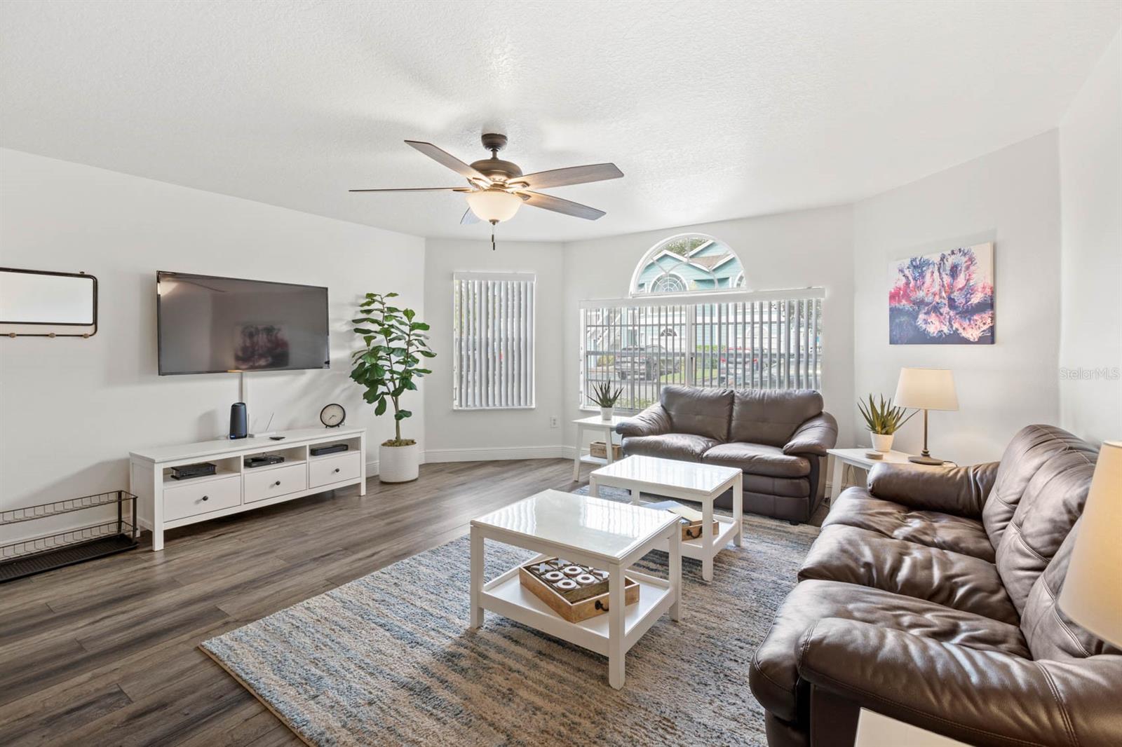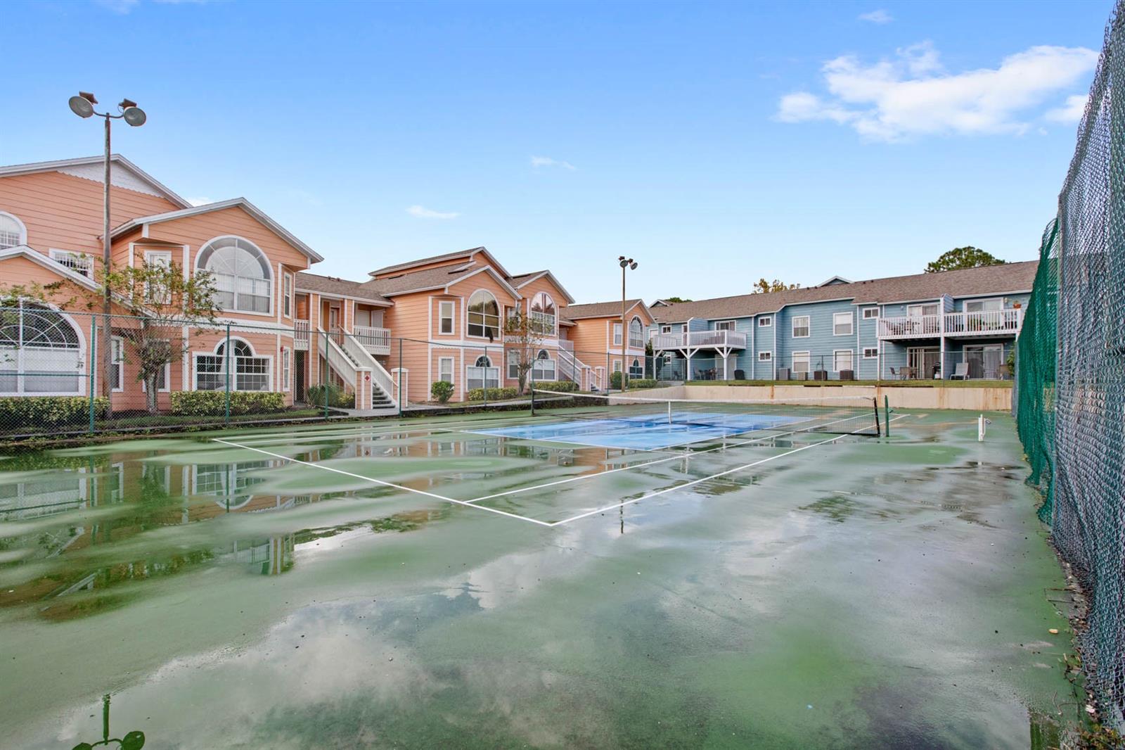 Looking for the perfect getaway just fifteen minutes from the magic of Walt Disney World? This FIRST FLOOR three bedroom two bathroom condo is the perfect residence for you if you are looking for a PRIMARY RESIDENCE, OR A SHORT TERM VACATION RENTAL. Being sold FULLY FURNISHED AND TURN KEY. The home has been tastefully updated with new LUXURY VINAL FLOORS, UPDATED KITCHEN, AND BATHROOMS. The kitchen was not only updated, it was remodeled with a functional design that allows for more cabinets and countertops than you'll find elsewhere in this community. NEW HVAC UNIT means you'll stay cool through all the hot summer months! NEW WATER HEATER. FULL SIZED WASHER AND DRYER INCLUDED. A private back patio facing a CONSERVATION VIEW is a great added bonus to this home! The location of this community is ideal if you work for the theme parks, want a second home near Disney, or are looking for a short term rental investment property; with easy access to all of Central Florida's theme parks, the Orlando International Airport, restaurants and shopping. The community has a GATED ENTRANCE, TWO COMMUNITY POOLS, BBQ GRILLS, TENNIS COURTS, A CLUBHOUSE, FITNESS CENTER, AND PLAYGROUND. On site mailboxes are a huge convenience if you plan to use this property as a primary residence. Don't miss out on this incredible opportunity! Schedule your visit today and start living the dream.