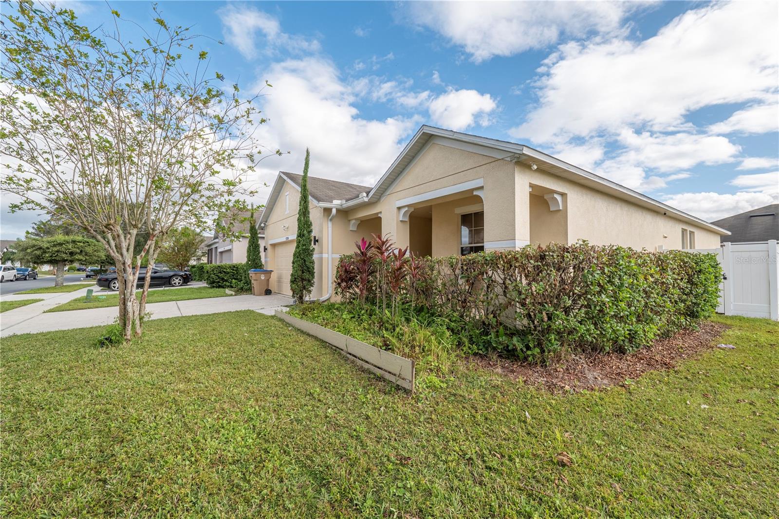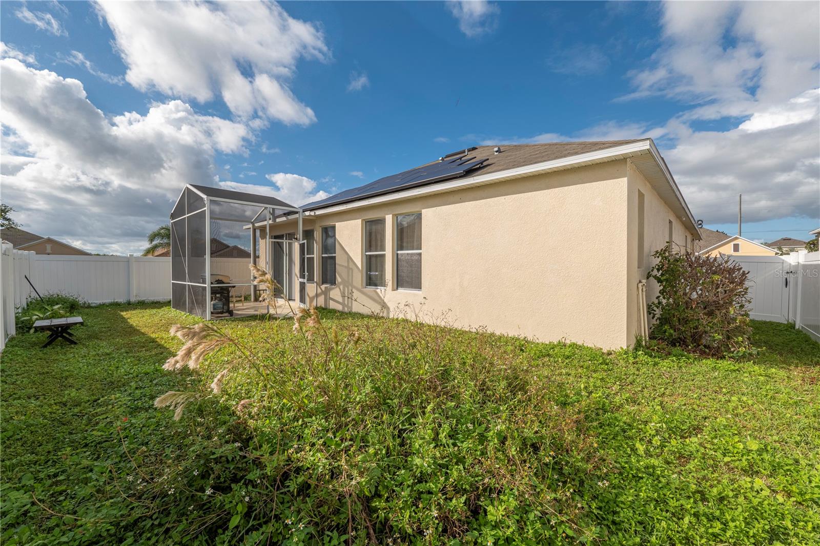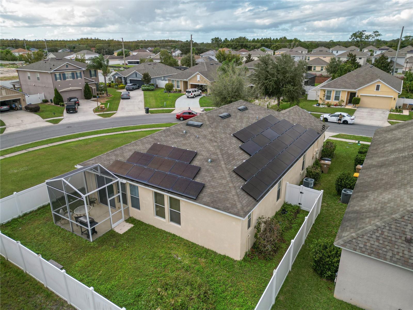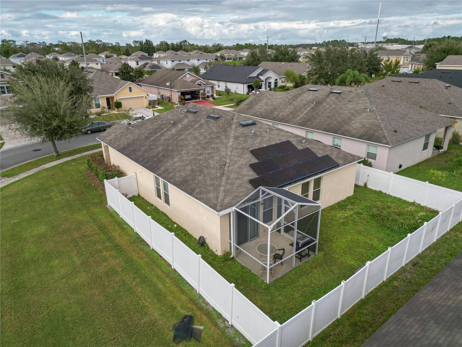 LOCATION, LOCATION!!! Welcome to this charming, "home with bonus rooms" listed, as a 4 Bedroom, 2 full Bathroom, with many extras' inclusions. Upon, exterior entry of the home, is a relaxing front porch. The front door interior is a foyer with 9 ft. tray ceiling. Design as a loft style setting, with Clerestory windows, throughout the home. This spacious home has an island kitchen, countertop with tall cabinets, pantry closet, a cozy living /dining combo setting. Each of the three bedrooms has double hanging closets, with one of the (BR) used as an office split siesta room, with landline cameras installed hardwired to a camera and monitor. The laundry room is in the hallway room next to the Primary Bedroom. (PBR) is designed with a walk-in closet organizer with a 10 ft. elegant tray ceilings. The primary bathroom features a shower, with a free-standing double vanity set, great for Mrs. powder/ make up. The secondary bathroom designed with field stone tiles upon entry is split, entry great for a growing family with dual usage of the (SBR), with a Mediterranean style diamond inlay in the shower, and toilet area. The home is equipped "solar panel efficient, battery adaptable. "Never worry about the fear of hurricanes or outages again", lowers energy cost assume existing loan. The garage holds 2 cars has. Utility sink, for cleaning mops, and a utility cabinet above sink, a water softener for hard water, with a tool bench. They are 3 large closets for storage space, and an attic ladder leading to a finish attic loft. Enclosed screened rear patio to enjoy with friends and family, private fence. Located on a coveted "Corner Lot". Access to all major Freeways, Osceola Pkwy and SR-417, minutes to the new medical City in Lake Nona. Close to all Restaurants, minutes to (MCO) Orlando International Airport, now is ready to welcome a new owner