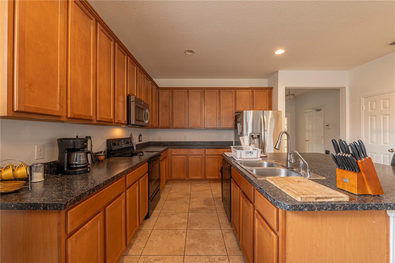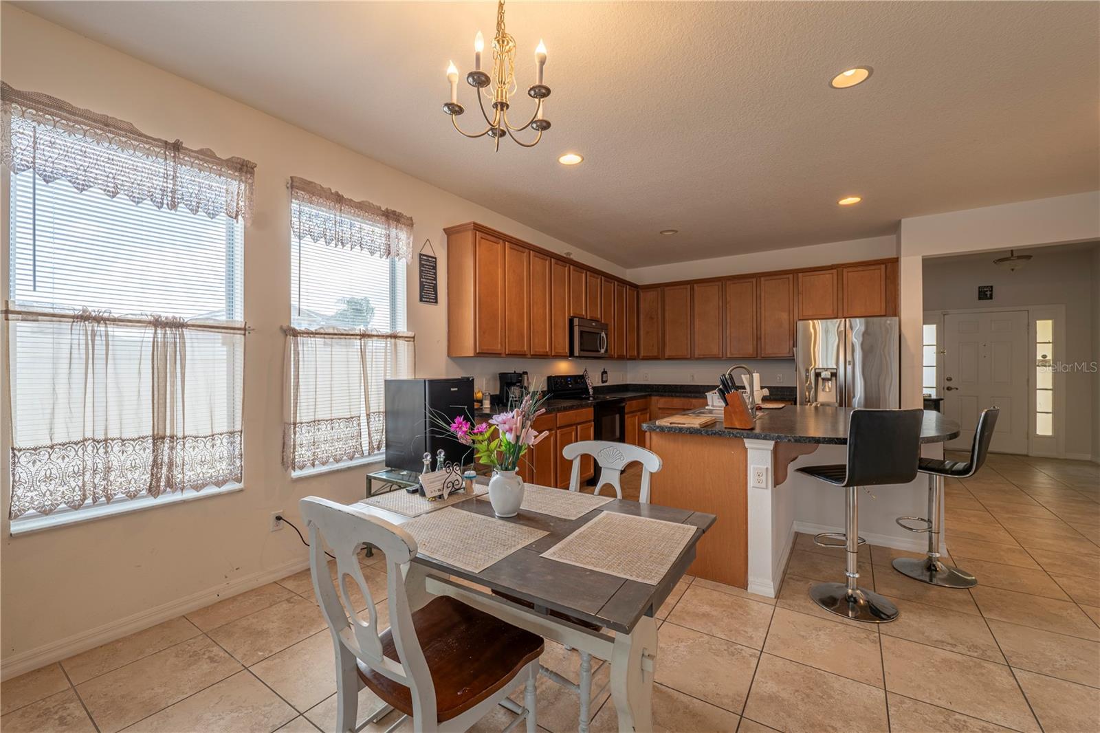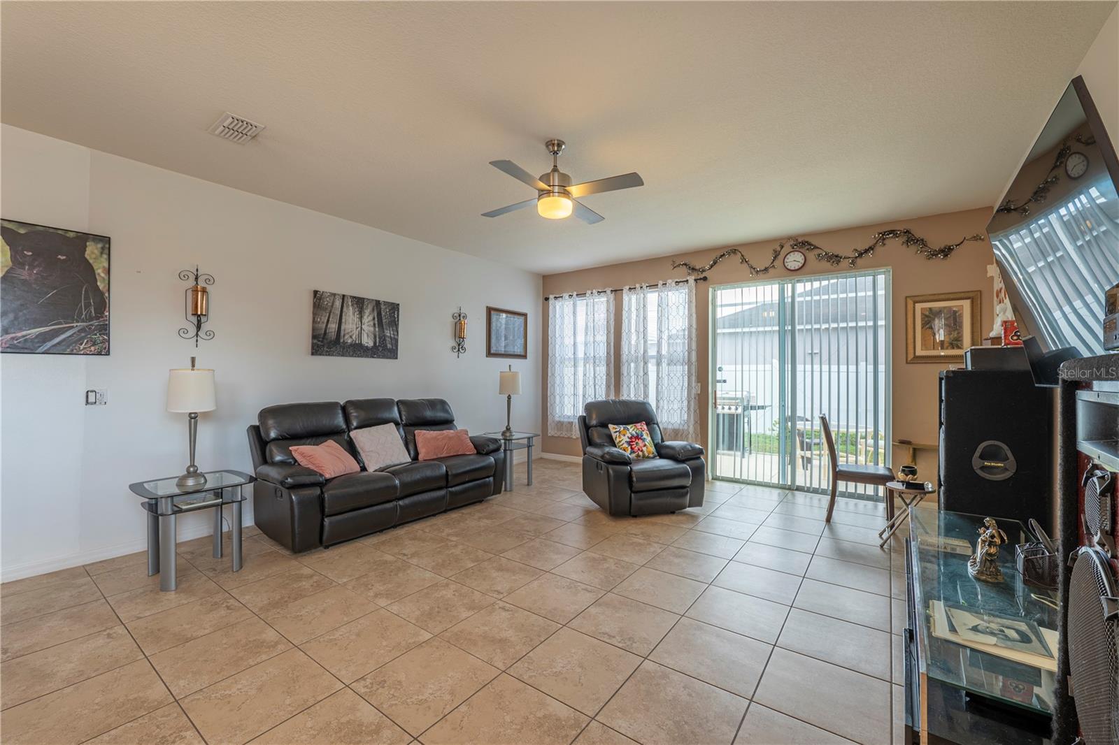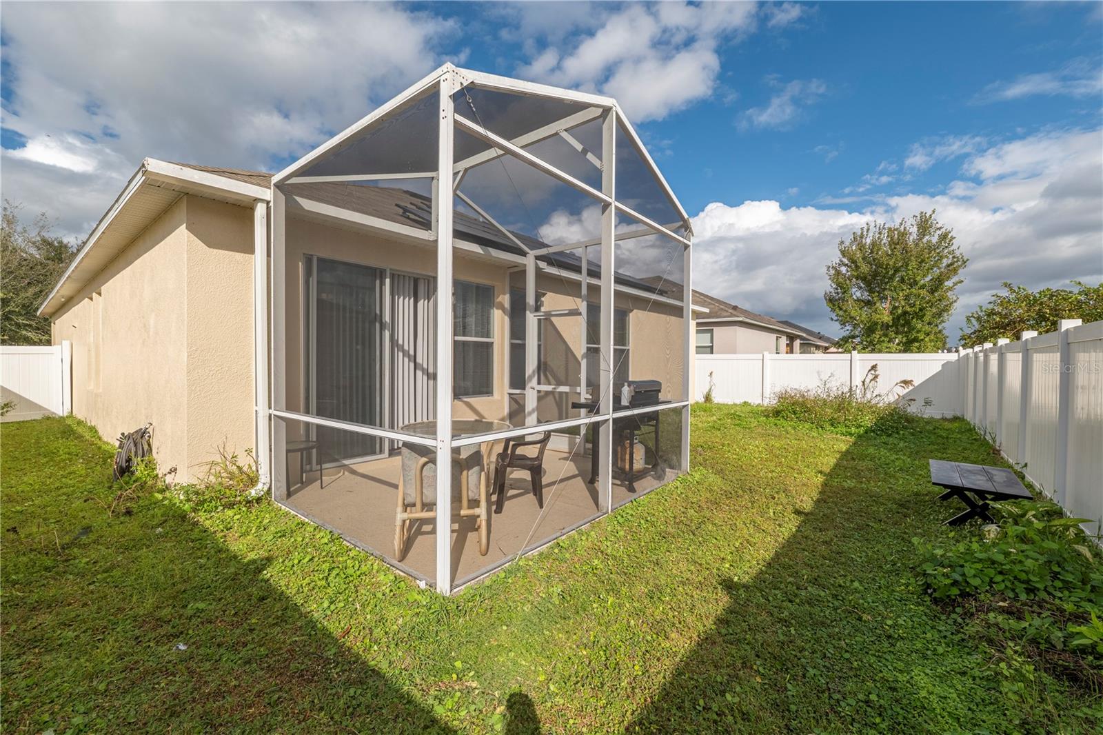 LOCATION, LOCATION!!! Welcome to this charming, "home with bonus rooms" listed, as a 4 Bedroom, 2 full Bathroom, with many extras' inclusions. Upon, exterior entry of the home, is a relaxing front porch. The front door interior is a foyer with 9 ft. tray ceiling. Design as a loft style setting, with Clerestory windows, throughout the home. This spacious home has an island kitchen, countertop with tall cabinets, pantry closet, a cozy living /dining combo setting. Each of the three bedrooms has double hanging closets, with one of the (BR) used as an office split siesta room, with landline cameras installed hardwired to a camera and monitor. The laundry room is in the hallway room next to the Primary Bedroom. (PBR) is designed with a walk-in closet organizer with a 10 ft. elegant tray ceilings. The primary bathroom features a shower, with a free-standing double vanity set, great for Mrs. powder/ make up. The secondary bathroom designed with field stone tiles upon entry is split, entry great for a growing family with dual usage of the (SBR), with a Mediterranean style diamond inlay in the shower, and toilet area. The home is equipped "solar panel efficient, battery adaptable. "Never worry about the fear of hurricanes or outages again", lowers energy cost assume existing loan. The garage holds 2 cars has. Utility sink, for cleaning mops, and a utility cabinet above sink, a water softener for hard water, with a tool bench. They are 3 large closets for storage space, and an attic ladder leading to a finish attic loft. Enclosed screened rear patio to enjoy with friends and family, private fence. Located on a coveted "Corner Lot". Access to all major Freeways, Osceola Pkwy and SR-417, minutes to the new medical City in Lake Nona. Close to all Restaurants, minutes to (MCO) Orlando International Airport, now is ready to welcome a new owner