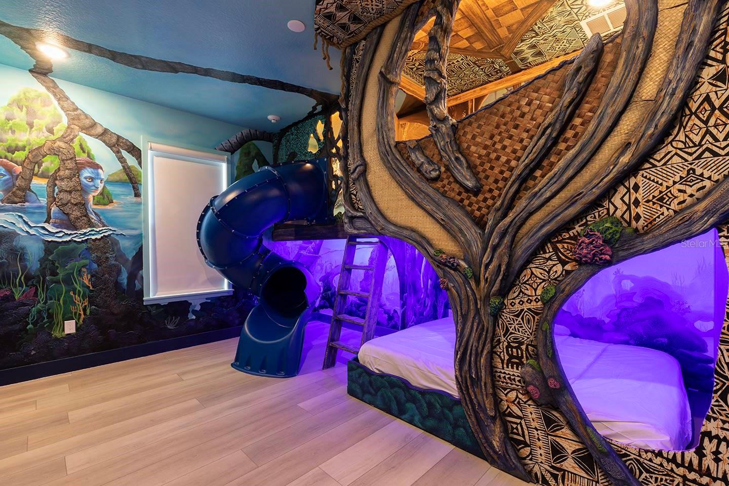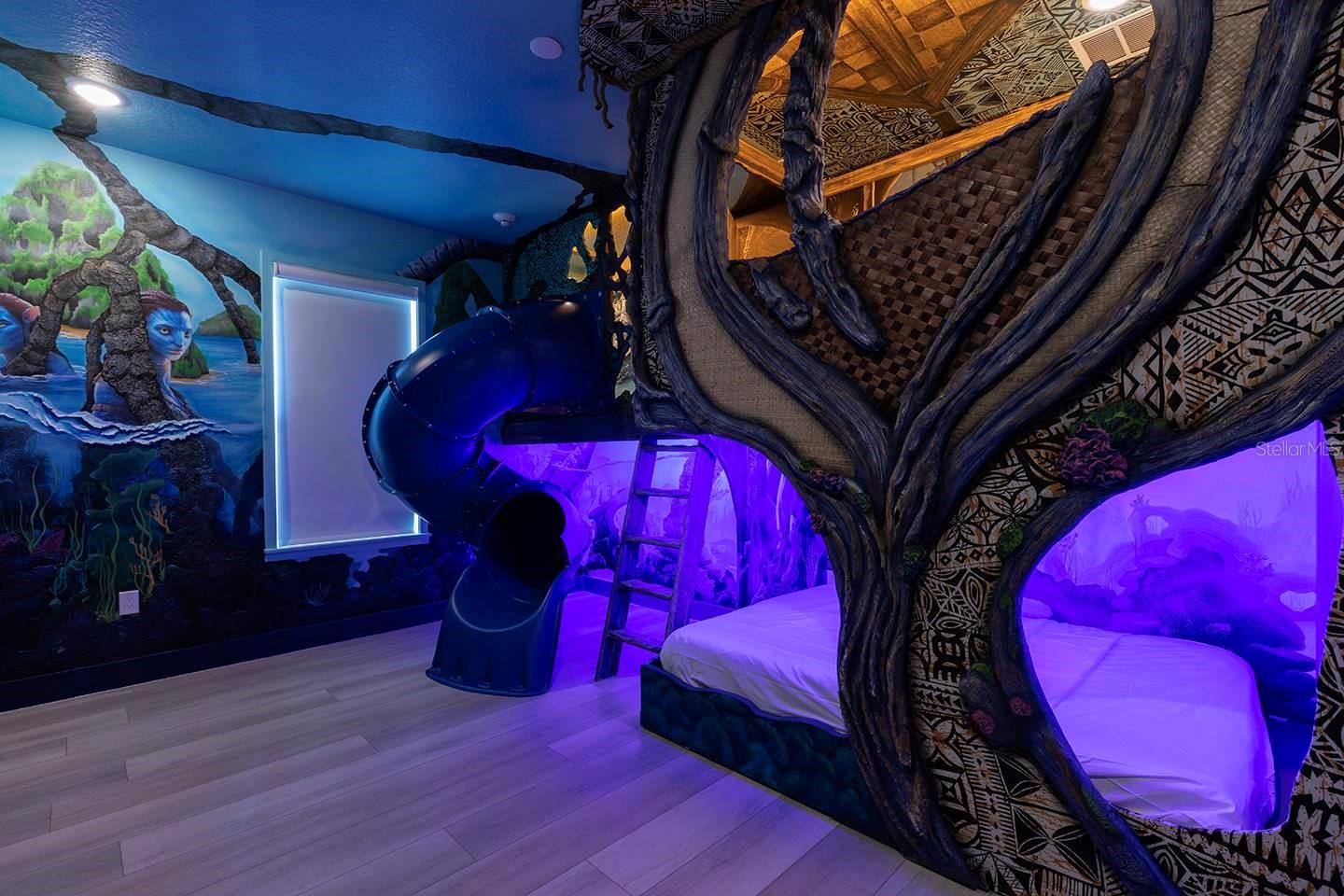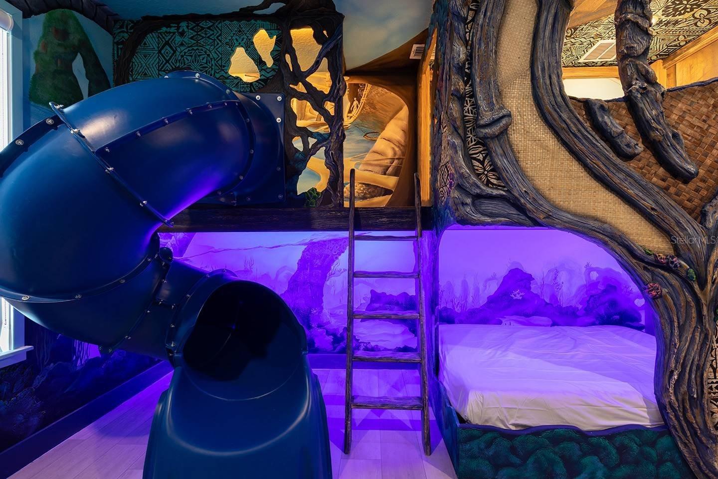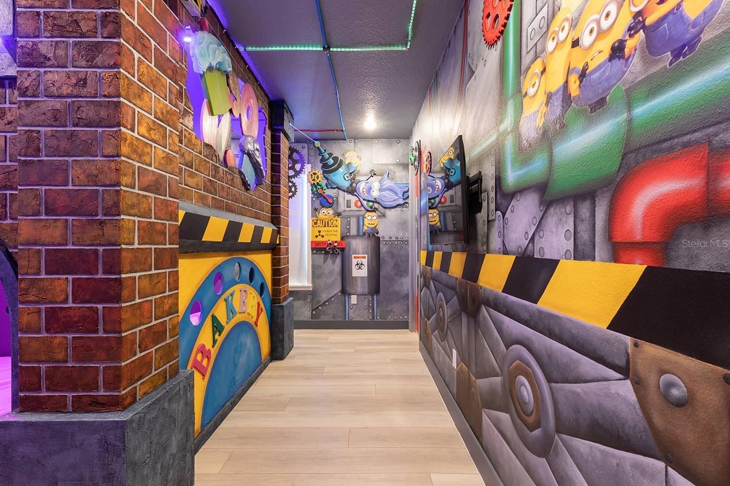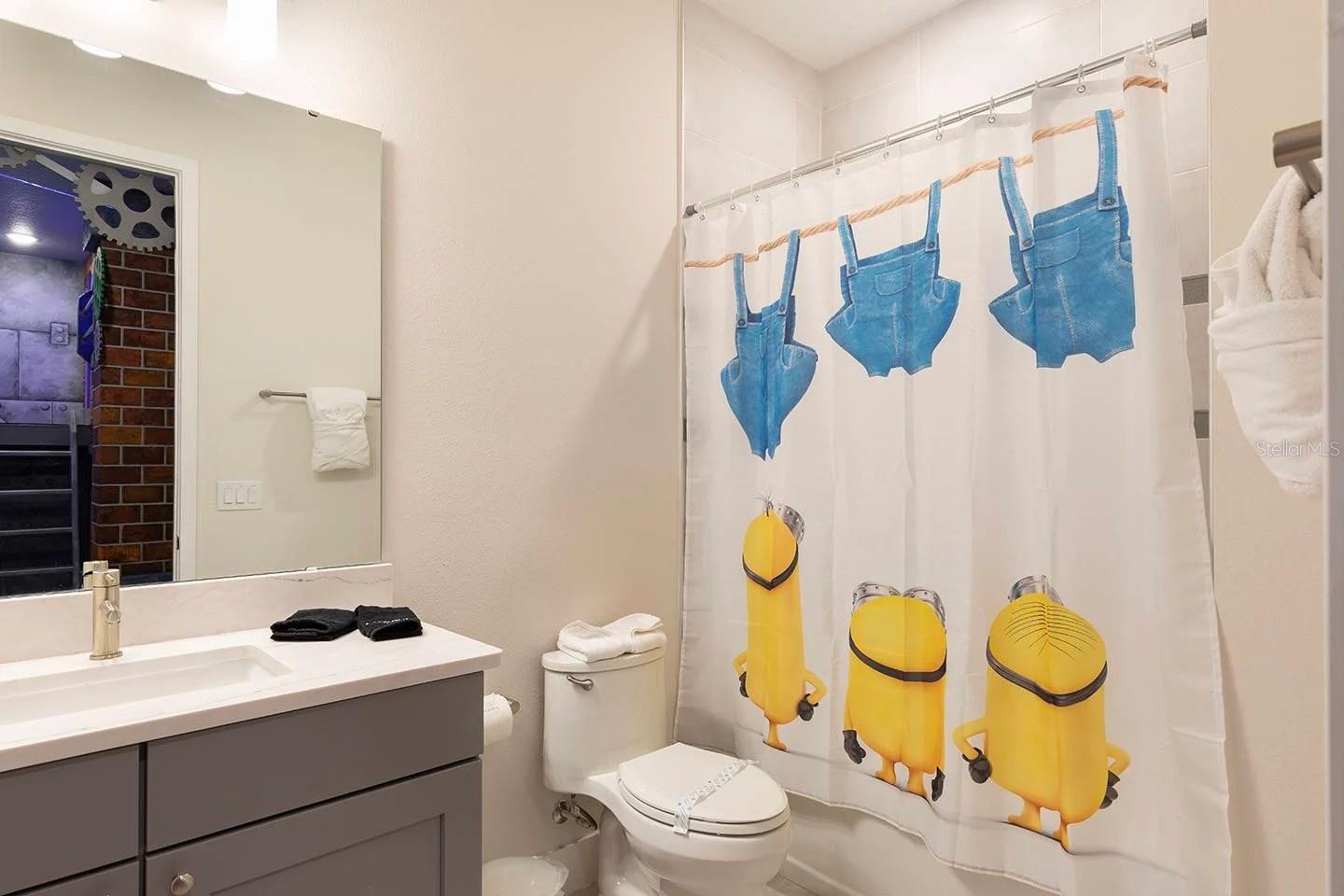 Luxurious Vacation Home in the Exclusive Bear's Den Club at Reunion Resort. Located on the signature Jack Nicklaus golf course with breathtaking views of the entire 18th hole leading up to the clubhouse, this stunning 6,500+ sq. ft. home offers a rare opportunity to own in one of Florida’s most sought after communities. Located within the private, gated Bear's Den Club area of Reunion Resort, this exquisite residence boasts 9 bedrooms and exceptional amenities, providing the perfect retreat for large families or discerning vacation rental investors. This impeccably designed home offers expansive living spaces, providing ample room for large gatherings and comfortably accommodating a significant number of guests. The open-concept living area features soaring ceilings, large windows, and luxurious finishes, creating a light-filled and inviting space for relaxation. The gourmet kitchen is a chef’s dream, fully equipped with top-of-the-line appliances, ample counter space, and a built-in eating area, perfect for casual meals or morning coffee while enjoying stunning views. The spacious dining area is ideal for hosting formal dinners and special occasions. The home offers an expansive master king suite on the ground floor, providing privacy and ease of access. Upstairs, you’ll find three additional king suites and several themed bedrooms with custom bunk beds, designed for hours of endless fun. The third floor features another king suite with panoramic views, perfect for unwinding after a day of activities. For entertainment, the private home theater is a true standout, featuring a large projection screen, state-of-the-art sound system, and 12 luxurious leather recliners for an immersive cinematic experience. Step outside and indulge in the private pool and spillover spa, surrounded by ample space for sunbathing, dining, and outdoor entertaining. The expansive patio offers a tranquil oasis with scenic views of the golf course and beyond, making it the perfect place to relax and unwind. This home also comes fully furnished with tasteful, high-end decor, making it move-in ready or immediately available for vacation rental guests. As a bonus, the active Reunion Resort membership offers access to world-class amenities including championship golf courses, multiple pools, a water park, a fitness center, spa services, and fine dining options. Just 12 minutes from Walt Disney World, this home’s prime location offers both luxurious living and incredible investment potential in one of Central Florida’s most sought-after communities.