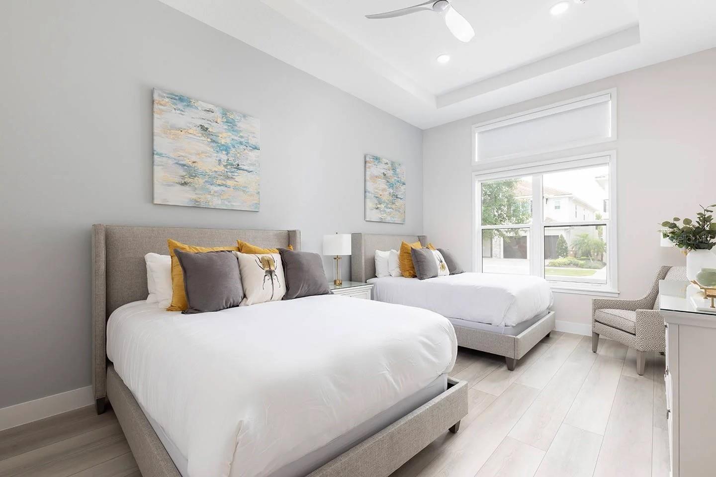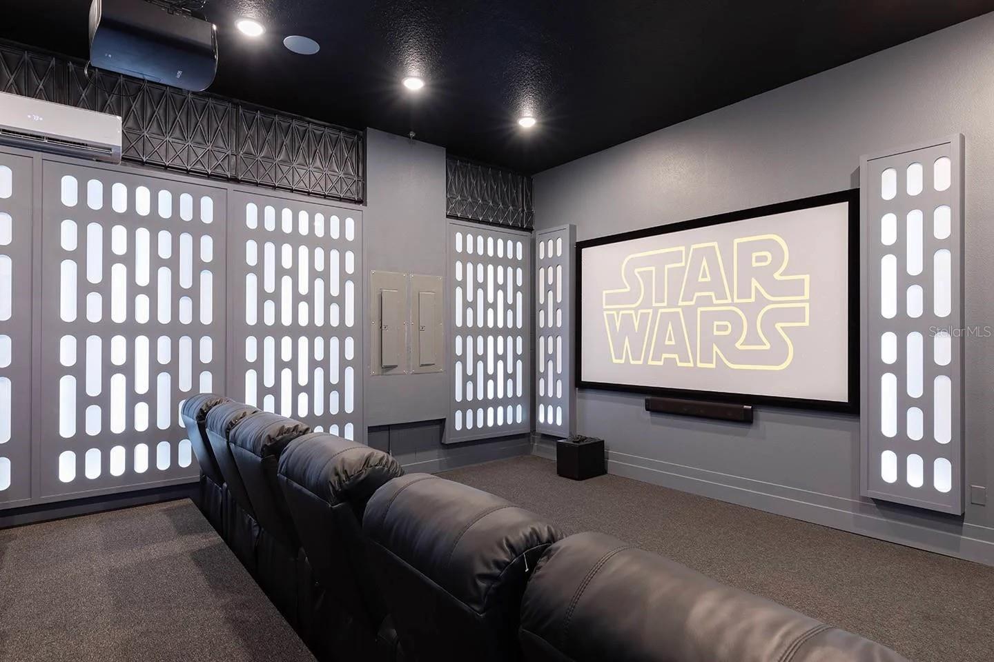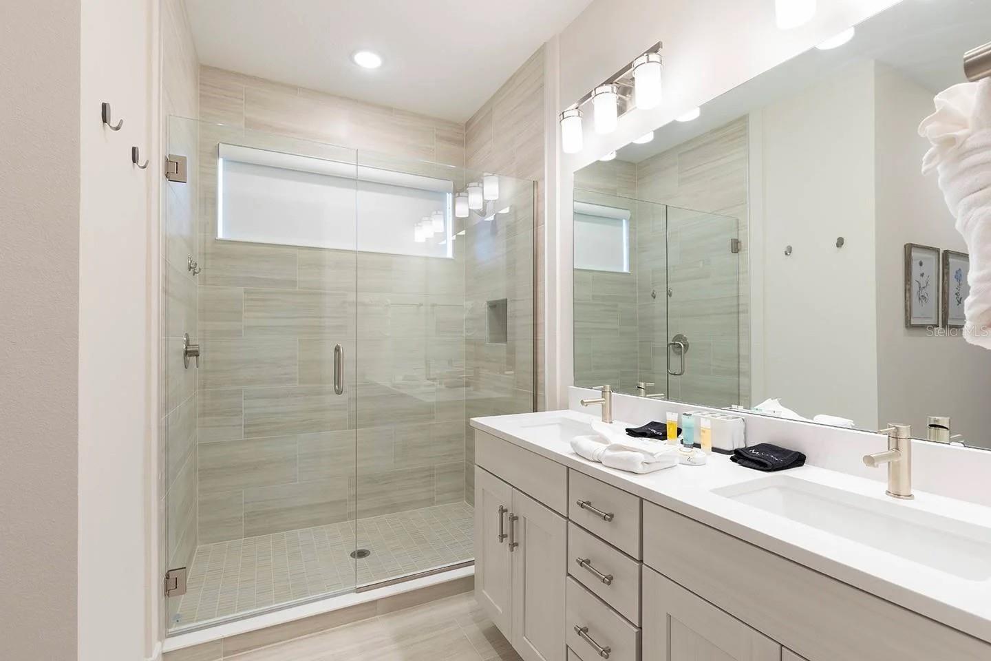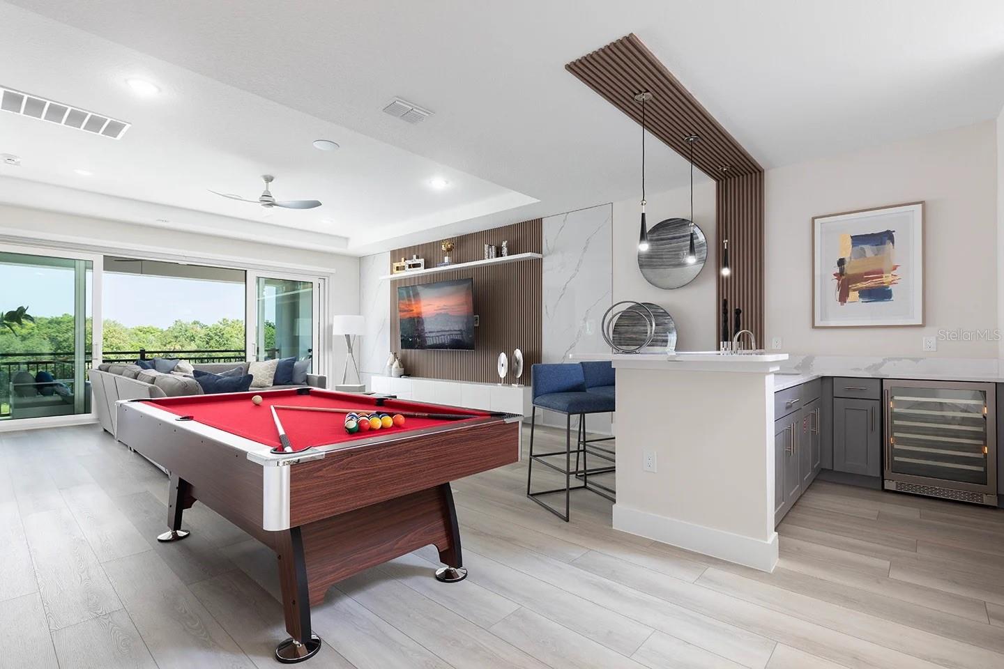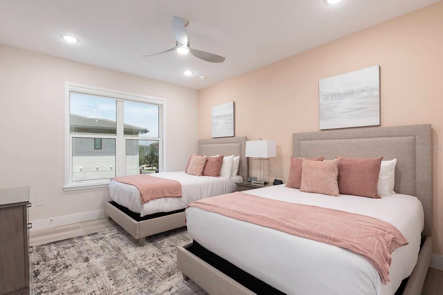 Luxurious Vacation Home in the Exclusive Bear's Den Club at Reunion Resort. Located on the signature Jack Nicklaus golf course with breathtaking views of the entire 18th hole leading up to the clubhouse, this stunning 6,500+ sq. ft. home offers a rare opportunity to own in one of Florida’s most sought after communities. Located within the private, gated Bear's Den Club area of Reunion Resort, this exquisite residence boasts 9 bedrooms and exceptional amenities, providing the perfect retreat for large families or discerning vacation rental investors. This impeccably designed home offers expansive living spaces, providing ample room for large gatherings and comfortably accommodating a significant number of guests. The open-concept living area features soaring ceilings, large windows, and luxurious finishes, creating a light-filled and inviting space for relaxation. The gourmet kitchen is a chef’s dream, fully equipped with top-of-the-line appliances, ample counter space, and a built-in eating area, perfect for casual meals or morning coffee while enjoying stunning views. The spacious dining area is ideal for hosting formal dinners and special occasions. The home offers an expansive master king suite on the ground floor, providing privacy and ease of access. Upstairs, you’ll find three additional king suites and several themed bedrooms with custom bunk beds, designed for hours of endless fun. The third floor features another king suite with panoramic views, perfect for unwinding after a day of activities. For entertainment, the private home theater is a true standout, featuring a large projection screen, state-of-the-art sound system, and 12 luxurious leather recliners for an immersive cinematic experience. Step outside and indulge in the private pool and spillover spa, surrounded by ample space for sunbathing, dining, and outdoor entertaining. The expansive patio offers a tranquil oasis with scenic views of the golf course and beyond, making it the perfect place to relax and unwind. This home also comes fully furnished with tasteful, high-end decor, making it move-in ready or immediately available for vacation rental guests. As a bonus, the active Reunion Resort membership offers access to world-class amenities including championship golf courses, multiple pools, a water park, a fitness center, spa services, and fine dining options. Just 12 minutes from Walt Disney World, this home’s prime location offers both luxurious living and incredible investment potential in one of Central Florida’s most sought-after communities.