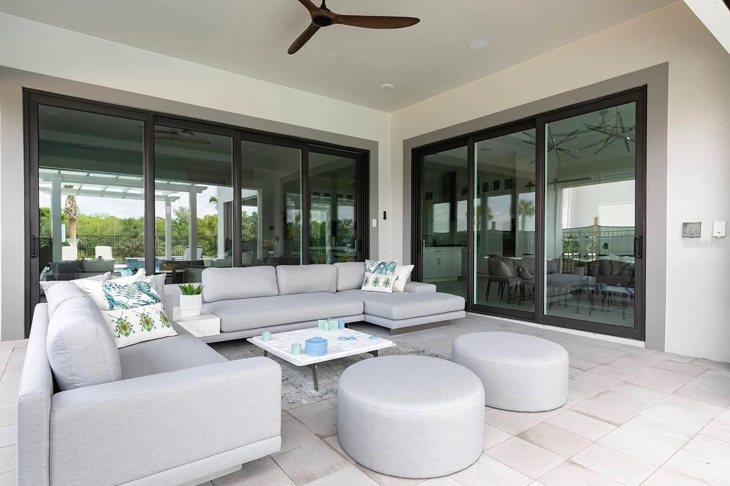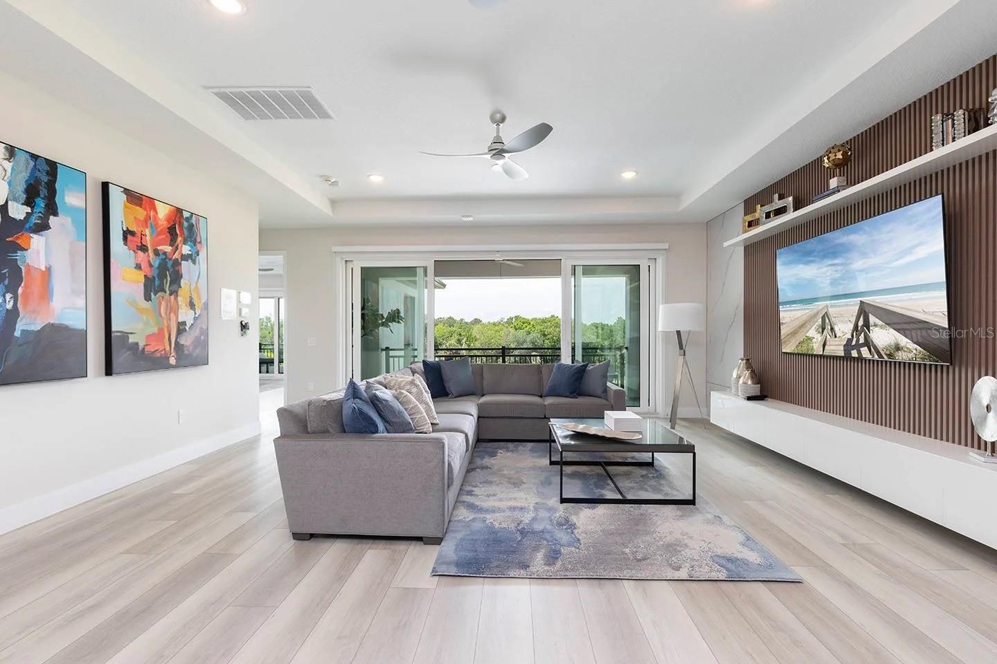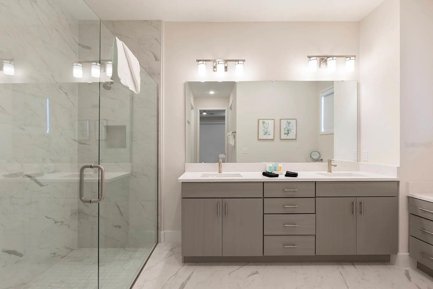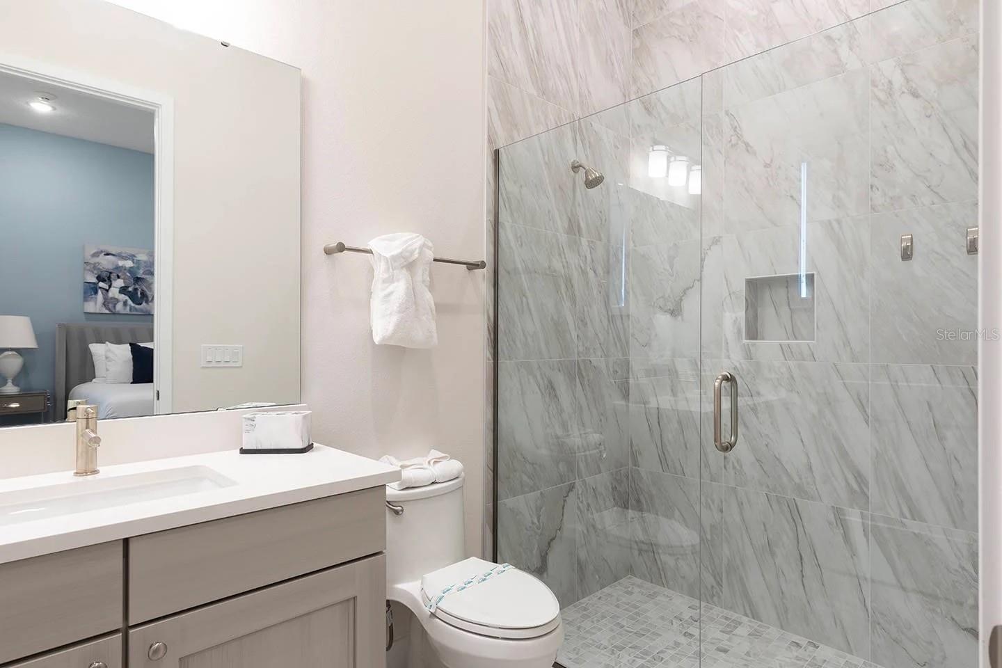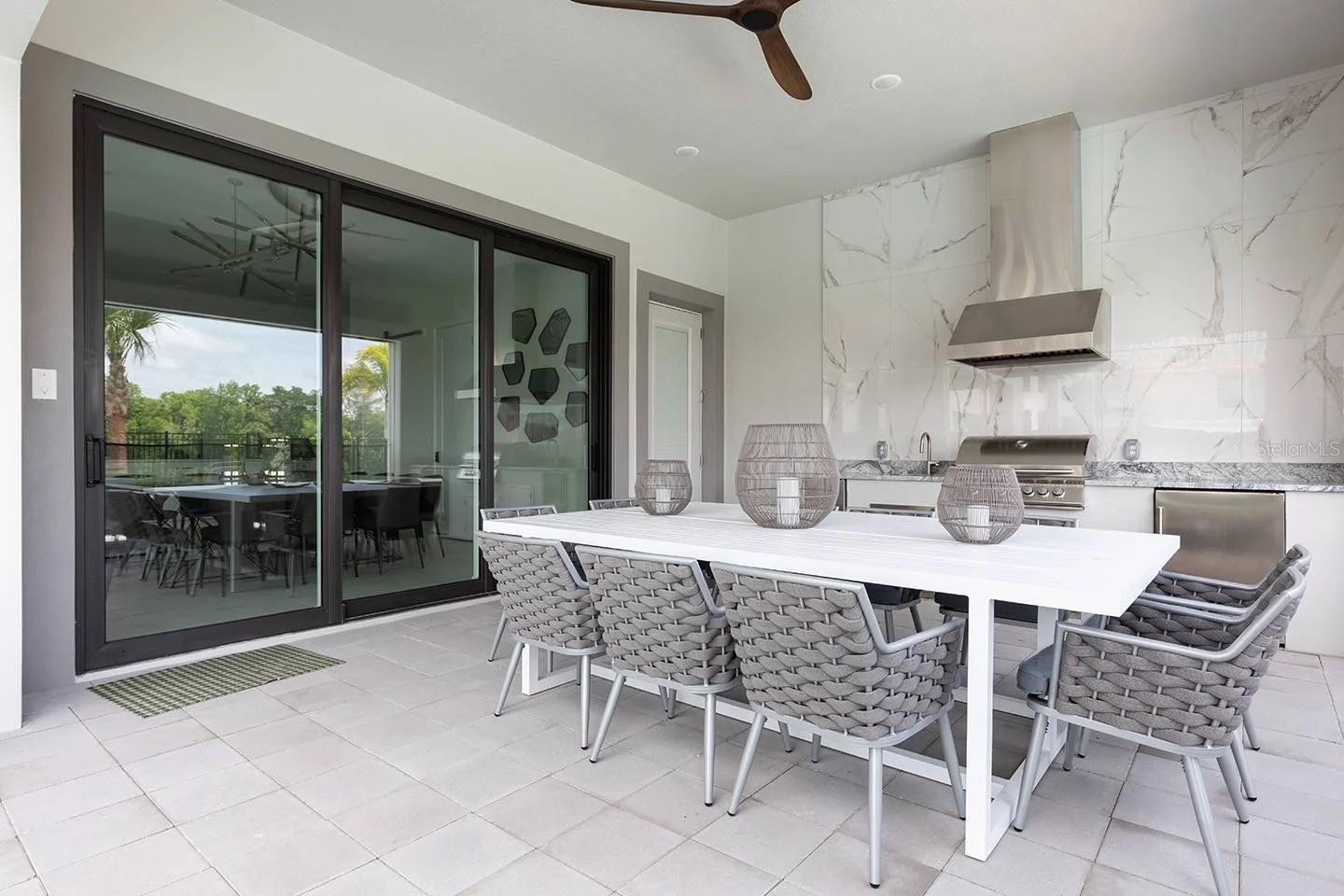 Luxurious Vacation Home in the Exclusive Bear's Den Club at Reunion Resort. Located on the signature Jack Nicklaus golf course with breathtaking views of the entire 18th hole leading up to the clubhouse, this stunning 6,500+ sq. ft. home offers a rare opportunity to own in one of Florida’s most sought after communities. Located within the private, gated Bear's Den Club area of Reunion Resort, this exquisite residence boasts 9 bedrooms and exceptional amenities, providing the perfect retreat for large families or discerning vacation rental investors. This impeccably designed home offers expansive living spaces, providing ample room for large gatherings and comfortably accommodating a significant number of guests. The open-concept living area features soaring ceilings, large windows, and luxurious finishes, creating a light-filled and inviting space for relaxation. The gourmet kitchen is a chef’s dream, fully equipped with top-of-the-line appliances, ample counter space, and a built-in eating area, perfect for casual meals or morning coffee while enjoying stunning views. The spacious dining area is ideal for hosting formal dinners and special occasions. The home offers an expansive master king suite on the ground floor, providing privacy and ease of access. Upstairs, you’ll find three additional king suites and several themed bedrooms with custom bunk beds, designed for hours of endless fun. The third floor features another king suite with panoramic views, perfect for unwinding after a day of activities. For entertainment, the private home theater is a true standout, featuring a large projection screen, state-of-the-art sound system, and 12 luxurious leather recliners for an immersive cinematic experience. Step outside and indulge in the private pool and spillover spa, surrounded by ample space for sunbathing, dining, and outdoor entertaining. The expansive patio offers a tranquil oasis with scenic views of the golf course and beyond, making it the perfect place to relax and unwind. This home also comes fully furnished with tasteful, high-end decor, making it move-in ready or immediately available for vacation rental guests. As a bonus, the active Reunion Resort membership offers access to world-class amenities including championship golf courses, multiple pools, a water park, a fitness center, spa services, and fine dining options. Just 12 minutes from Walt Disney World, this home’s prime location offers both luxurious living and incredible investment potential in one of Central Florida’s most sought-after communities.