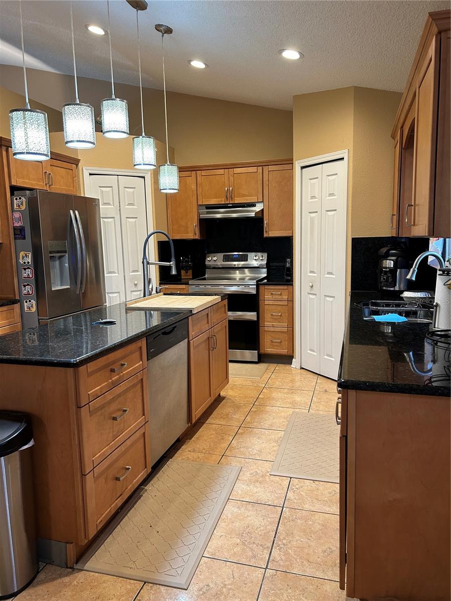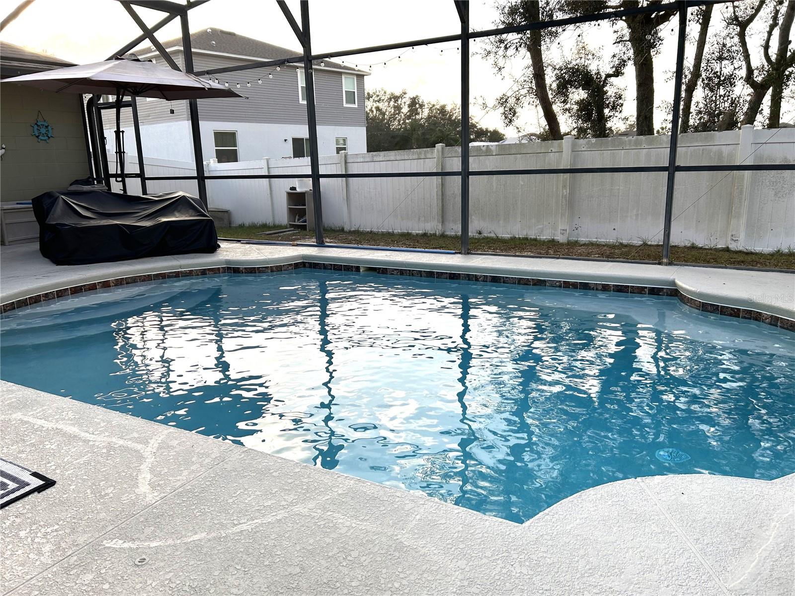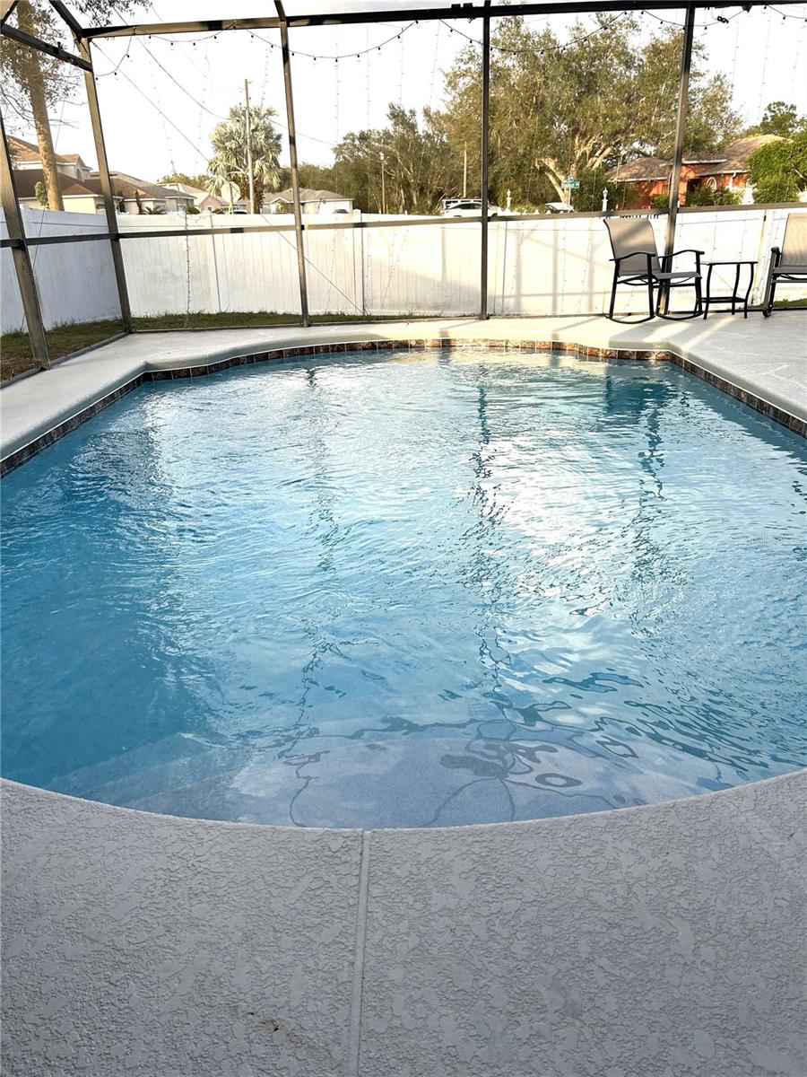 Price Adjustment just made to this home which features a chef's dream kitchen with loads of Cabinets for storage, Center Island with sink and Double Pantries. New Refrigerator and Garbage Disposal less than a year old. Stove with Double Ovens, Double Corner Pantries, Spacious Layout and Designed for huge Food Preparation for Parties or Private, Intimate Meals prepared with ease and relaxation of the Homeowner. Very proactive owner has Plumbing and Electrical checked yearly and was just done November, 2024. The Air Conditioner was replaced in 2012, Roof in 2016, Windows in front of house, new Front Door and Slider Door to patio installed 2023. For those who love decorating for those upcoming holidays, extra electrical outlets were installed outside as well as GFI outlets added to Light Pole and Garage Lights to avoid having those unsightly extension cords to make this dream home a Holiday Showcase. Displaying 4 Bedrooms and 2 Full Baths with open floor plan and Spacious Living areas, there is room for everyone. Not only does this home include indoor entertaining space but as you continue to the outdoor area, you will find a lovely Inground Pool with spacious Decking around. In 2023, the Pool was resurfaced and new pool pump motor installed. Surrounded by a Screen Enclosure, this outdoor Living Space can be enjoyed in comfort and in Privacy as the Backyard also provides a completely fenced area with Vinyl Fencing. The Front Yard boasts a beautiful Water Fountain that was also just resurfaced when the Pool was. Located in a Cul De Sac, this home is sure to please.