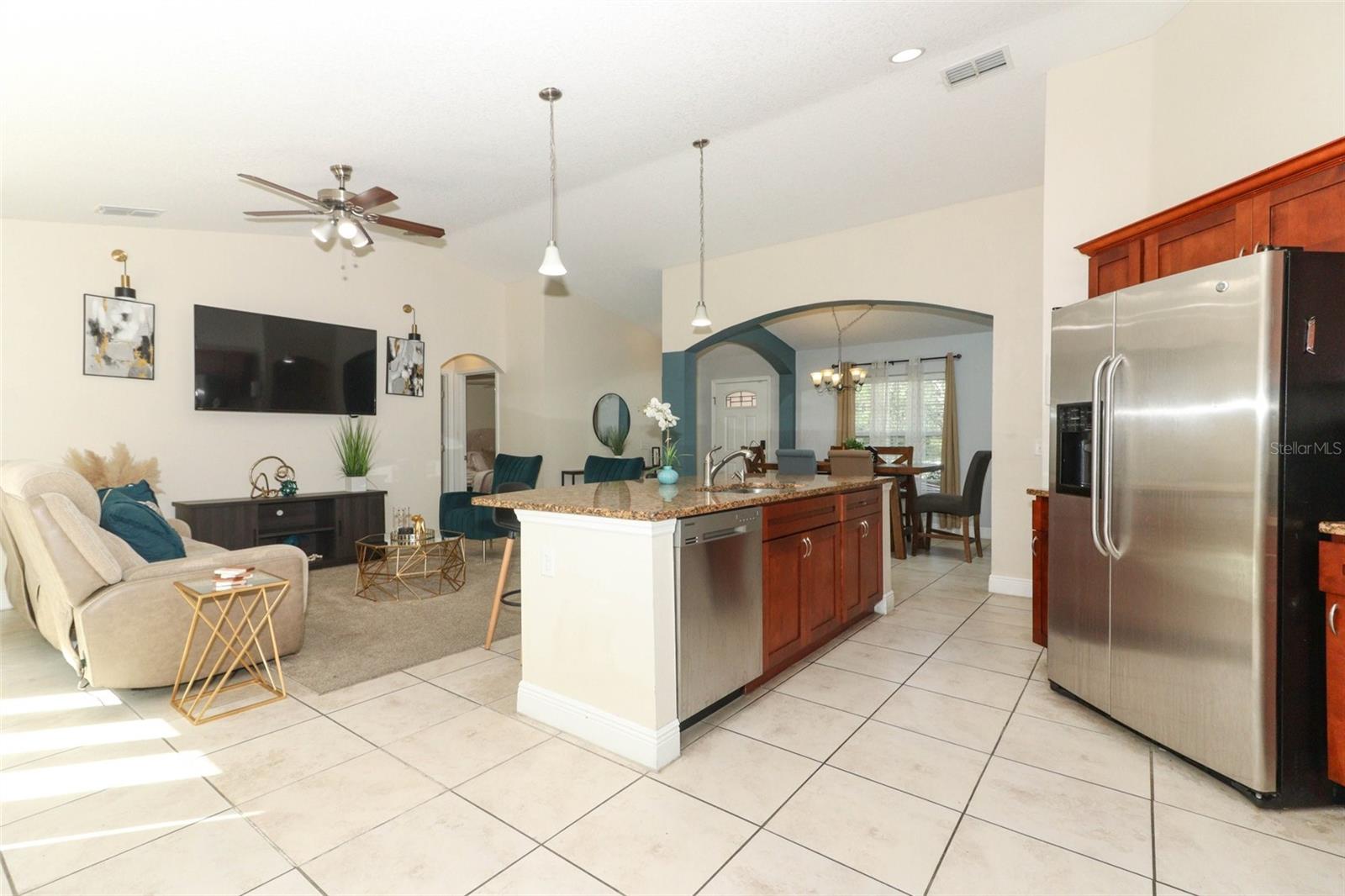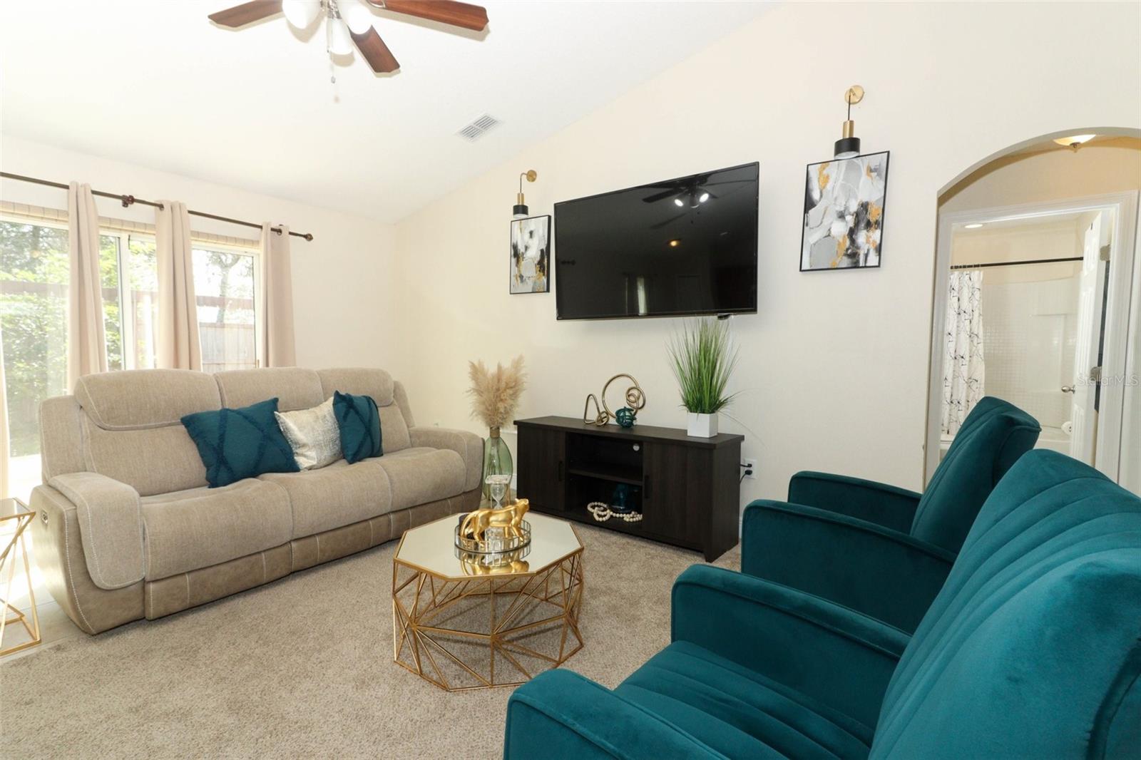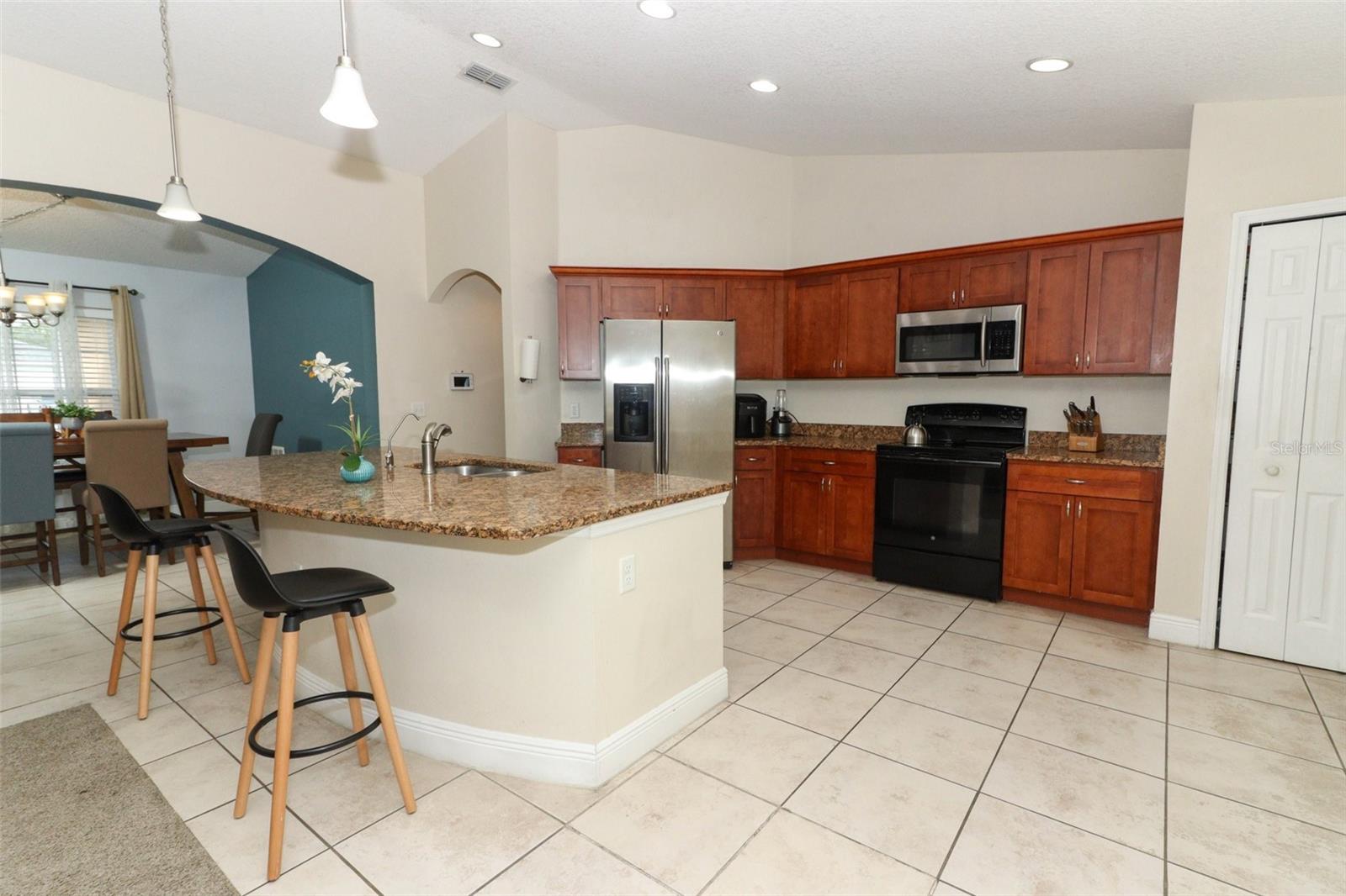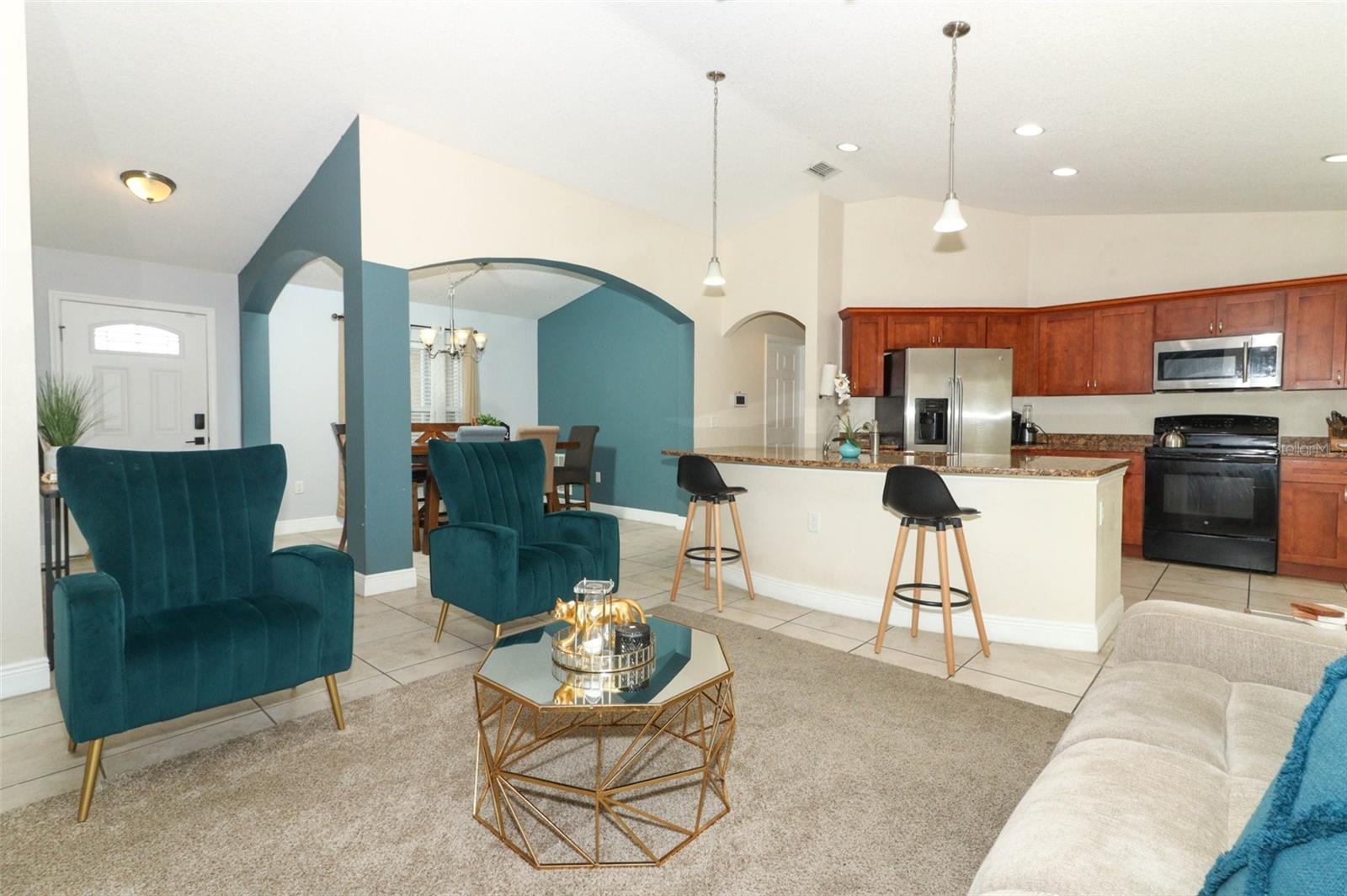 Look no further!!! Welcome to your new home sweet home! Well maintained, this lovely 4 bedroom, 2 bathroom house has so many great features. The house provides ceramic tile floors throughout, an open floor plan with a spacious family room, dining room, kitchen combination, allowing for easy entertaining with your guests and family. Some of the great features of this home are: Tesla Solar panels, (paid in full), providing low power bills, estimated at approximately $80monthly, low HOA, which includes cable and internet with spectrum and access to the Poinciana Community Center which offers a pool, club house, basketball courts etc...Additional features include: Water Softener, sprinkler system, updated bathrooms, security cameras installed and surrounding the property for your safety. The kitchen has a beautiful island with granite counters, 42" cabinets and opens to the family room. Just outside the sliding glass doors, you will be surprised to find yet another space for entertaining. This tiled patio is surrounded by fruit trees and lovely plants. Extra bonus for the avid gardeners, there is also a quaint green house space which also has a sink and running water for your convenience. Located very close to all the major attractions, new shopping centers and restaurants. Yet, far enough away to enjoy a peaceful setting in a quiet neighborhood. Don't miss out on your opportunity to own this lovely home! Call today to schedule your private showing!