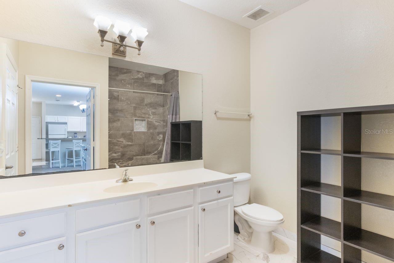 This FULLY FURNISHED, FIRST FLOOR condo is ready for its next owner - for primary living or short and long-term rental! As you walk in, you are greeted by a large OPEN CONCEPT kitchen with tons of cabinets and countertop space, including a large breakfast bar seating area. Continuing through, you have a spacious dining and living area that looks out to your private patio! The primary suite features a WALK-IN CLOSET, oversized vanity, and updated tile WALK-IN SHOWER. The guest bedroom is set apart from the other allowing for added privacy, and also features a large vanity and tiled shower and tub. Stepping out from the living area, you have a serene COVERED PATIO with views of the nearby green space! The Villas at Secret Lake Condo Community features a clubhouse, community pool, fitness center, dog park, walking trails and more! Plus, the HOA fee includes cable, internet, water, trash, sewer, and exterior maintenance allowing for total easy and care-free living! The community is located just off US-192, allowing easy access to Walt Disney World, Margaritaville, I-4 and all of the area's best shopping, dining, and entertainment destinations. Add this home to your investment portfolio before it is gone!