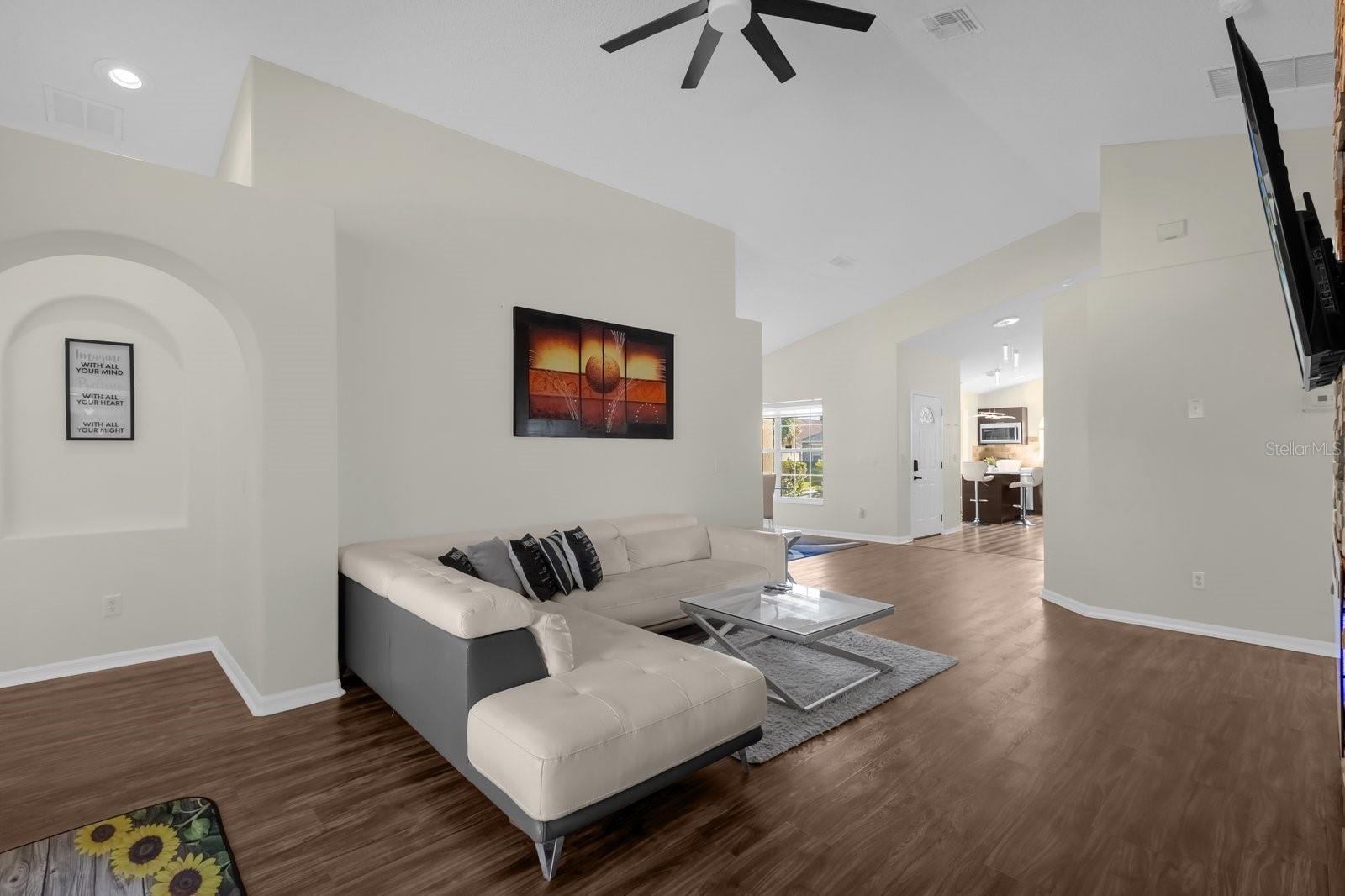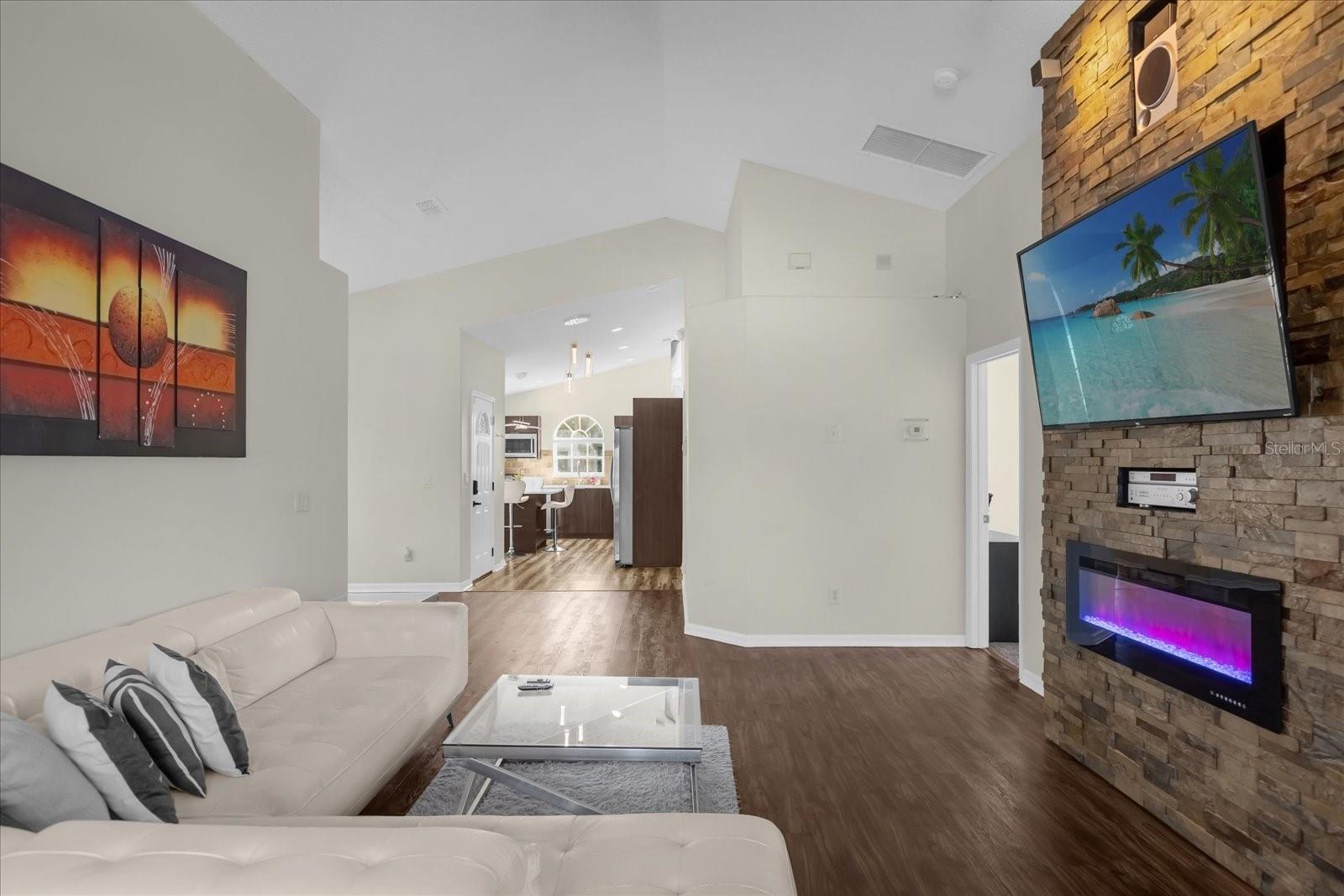 Whether you are looking for a Primary Home or Investment Opportunity look no further. A delightful 4-bedroom, 3-bathroom POOL home nestled in the sought-after community in Kissimmee, FL. Perfectly positioned just minutes from Disney and Orlando's world-class attractions. Recent Upgrades Include, ROOF JULY 2024, AC 2022 Automated Pool Heater, Patio Sealing, Tree Removal, and Updated Appliances. Step inside to a modern masterpiece; to the left natural sunlight pours in to your beautifully updated kitchen. Kitchen comes equipped with Quartz Counters, Solid Wood Cabinets, Stainless Steel Appliances, Gas Stove, and seating space! As you move through the home you will have a dedicated dining area off the foyer and an open flow with high ceilings that leads into your spacious family room! You will be amazed with your stylish gallery wall and electric fireplace! Overlooking the sparkling blue pool;the family room is the heart of the home! With a highly desired split floor plan, take a step into the Owners Suite, with its own private access to the pool area. Master Bathroom Ensuite comes with dual sinks, soaking tub, shower stall, and Walk-In Closet.The other three remaining rooms are all extremely spacious on the other wing of the property. Step outside to your gorgeous HEATED Private Pool and Spa Oasis. Sit outside under your covered lanai or soak in the hot tub, take in the Florida Lifestyle right from your backyard! Property is fully fenced in with Vinyl Fencing which gives the property ample privacy! This home is move in ready, energy efficient, and an excellent opportunity within close distance to major highways, attractions, resuranuts, and shopping plazas This community features amenities like playgrounds, walking trails, and sports courts, with no HOA fees. Don't miss this fantastic opportunity to own a piece of Central Florida living! Schedule your private showing today!