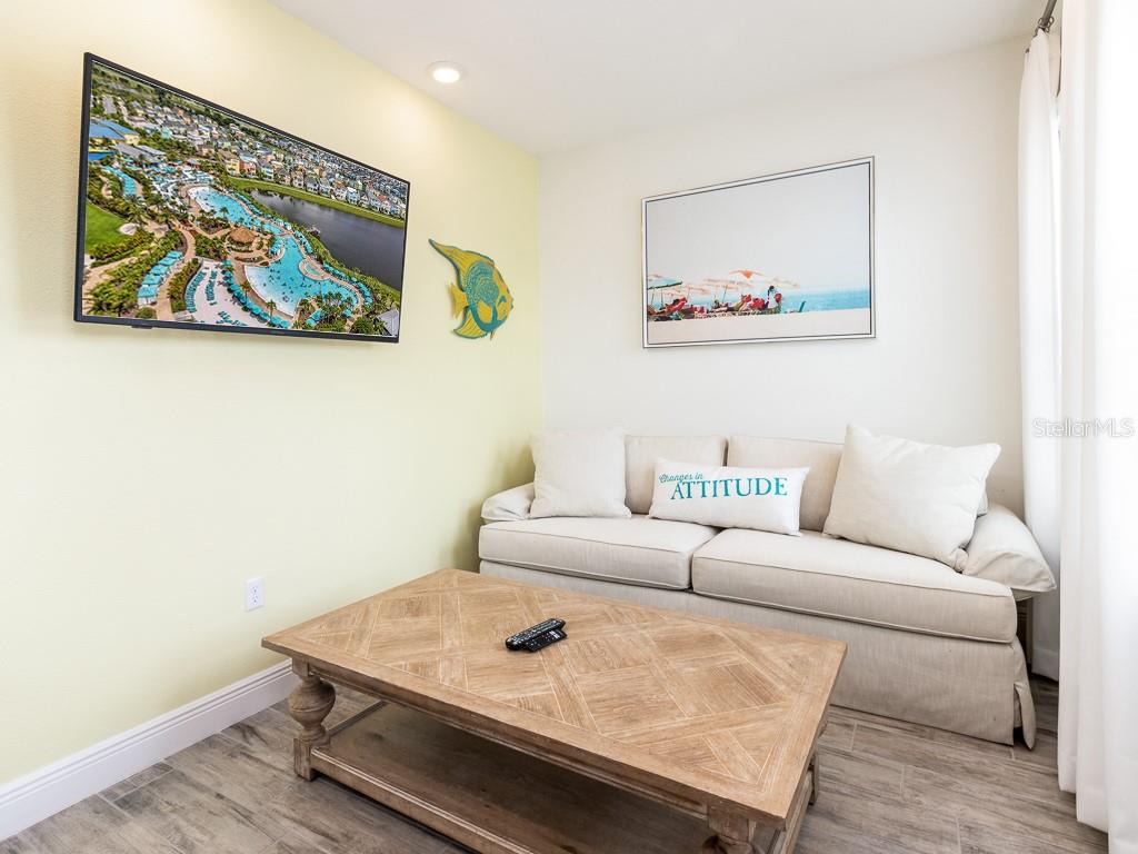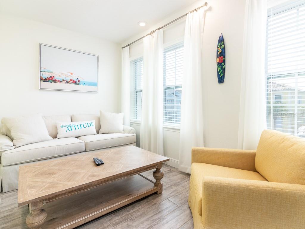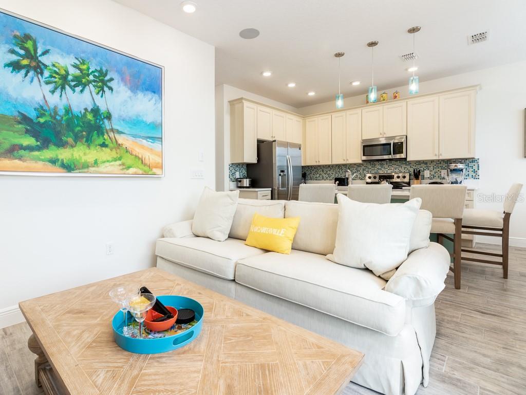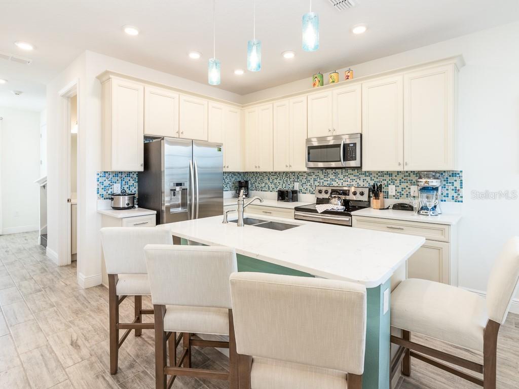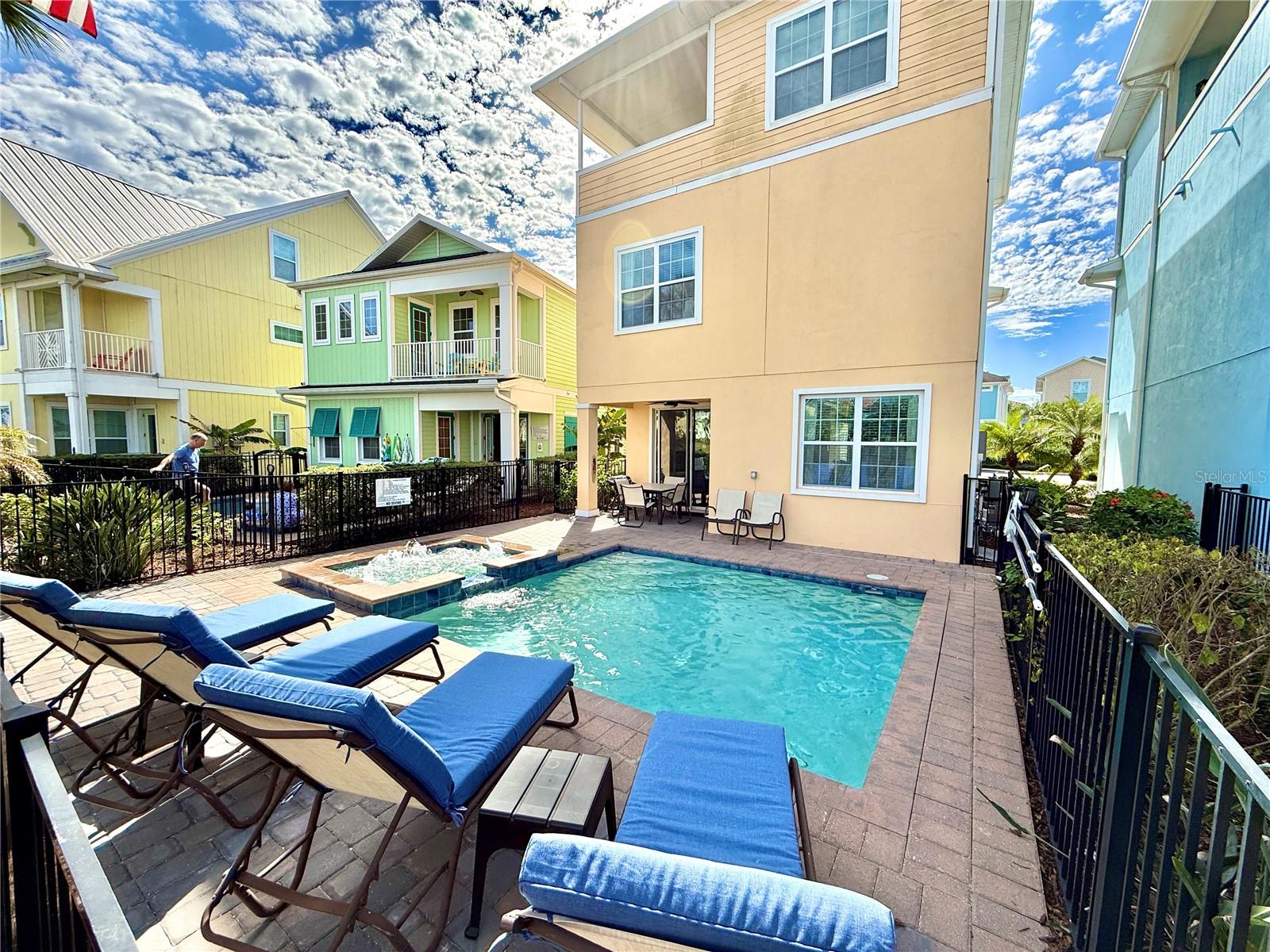 GORGEOUS WATERFRONT COTTAGE in Margaritaville Resort Orlando Featuring 4 Bedrooms, 4 Bathrooms a Half Bath and a PARTY DECK on the Third Floor! RARE POOL DECK EXPANSION WITH ADDITIONAL GATE! Living Area with Indoor/Outdoor Access to Backyard with Spacious Outdoor Patio, PRIVATE POOL AND SPA with Breathtaking WATERFRONT VIEWS. Kitchen with Beautiful Backsplash Upgrade, QUARTZ Countertops and ISLAND Seating, Spacious Living Room with Open Floor Plan. This Home also features "WOOD" Tile Floors, Washer and Dryer, Ceiling Fans Throughout and Abundant Natural Light. This is a Wonderful Community to Live in Full Time, Own a Second Home or Invest in a Vacation Rental Property! List Price INCLUDES Furniture/Houseware Package. Includes Blinds, Drapes, TVs, Artwork, Kitchen Necessities, Dishware, Linens, and so MUCH MORE! Unique First of its Kind Resort with Multiple Pools, Gym, On-Site Water Park, Sunset Walk Restaurants Bars, Live Music, Retail, Live Music and More! LOCATED MINUTES FROM DISNEY! It's A Lifestyle Choice For Those Who Want To Experience The Best Of Florida Living, Where Every Day Feels Like A Vacation!