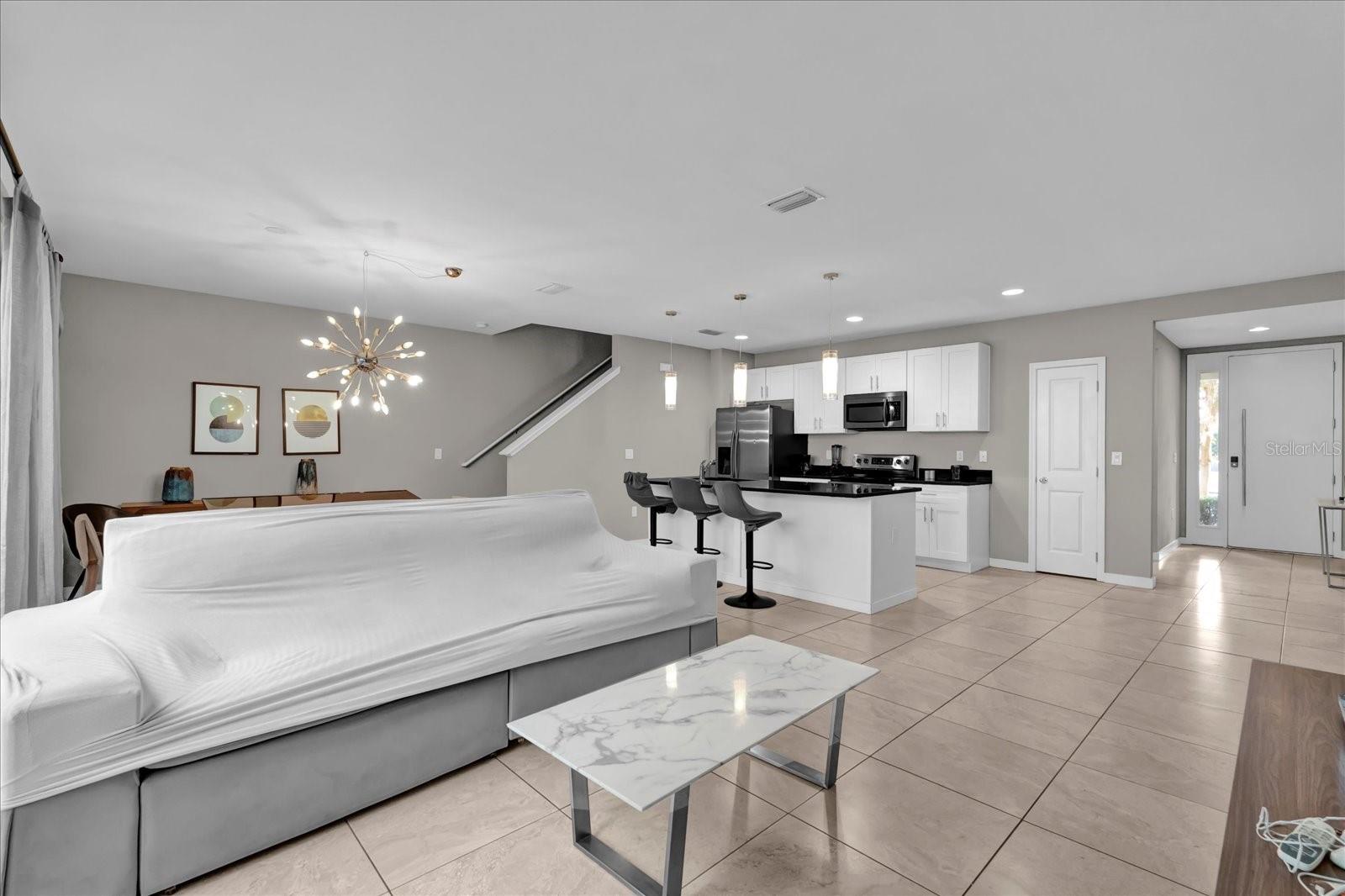 FULLY FURNISHED HOME WITH PRIVATE POOL Prepare to be captivated by this exquisite townhome where comfort meets elegance! Spacious Bedrooms: 4 generously sized, carpeted bedrooms. Modern Bathrooms: 3.5 immaculate bathrooms adorned with elegant ceramic tile, offering a spa-like experience. Gourmet Kitchen: Sleek stainless steel appliances, ample counter space, and a contemporary design make this kitchen a chef’s dream. Dining and Living Spaces: The kitchen’s dining area and counter provide plenty of seating for gatherings, while the inviting living room offers easy access to the outdoors. Private Pool and Outdoor Gourmet Area: Sliding glass doors open to your own private pool and a fully equipped gourmet area, perfect for entertaining or relaxing. Attached Garage: Enjoy the convenience of direct, covered access from your garage to your home. Exclusive Le Rêve Community: This gorgeous 24-hour gated community boasts incredible amenities: Clubhouse, fitness center, community pool, scenic sidewalks for peaceful strolls Prime Location: Just minutes from shopping centers, numerous dining options, and world-famous theme parks, this property combines luxurious living with unbeatable convenience. Don't miss out on your chance to own this stunning home in one of the most sought-after communities! Schedule your private viewing today.
