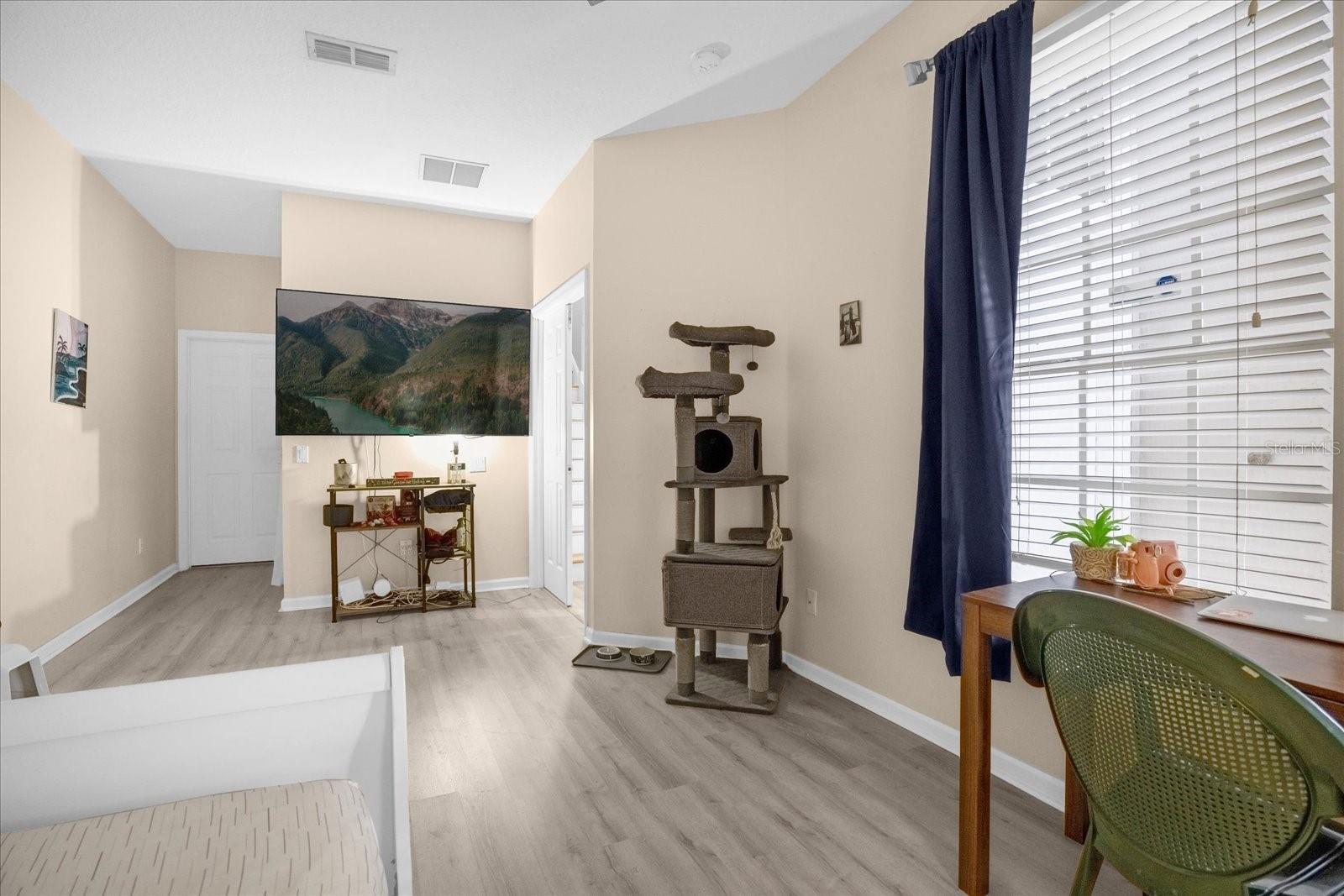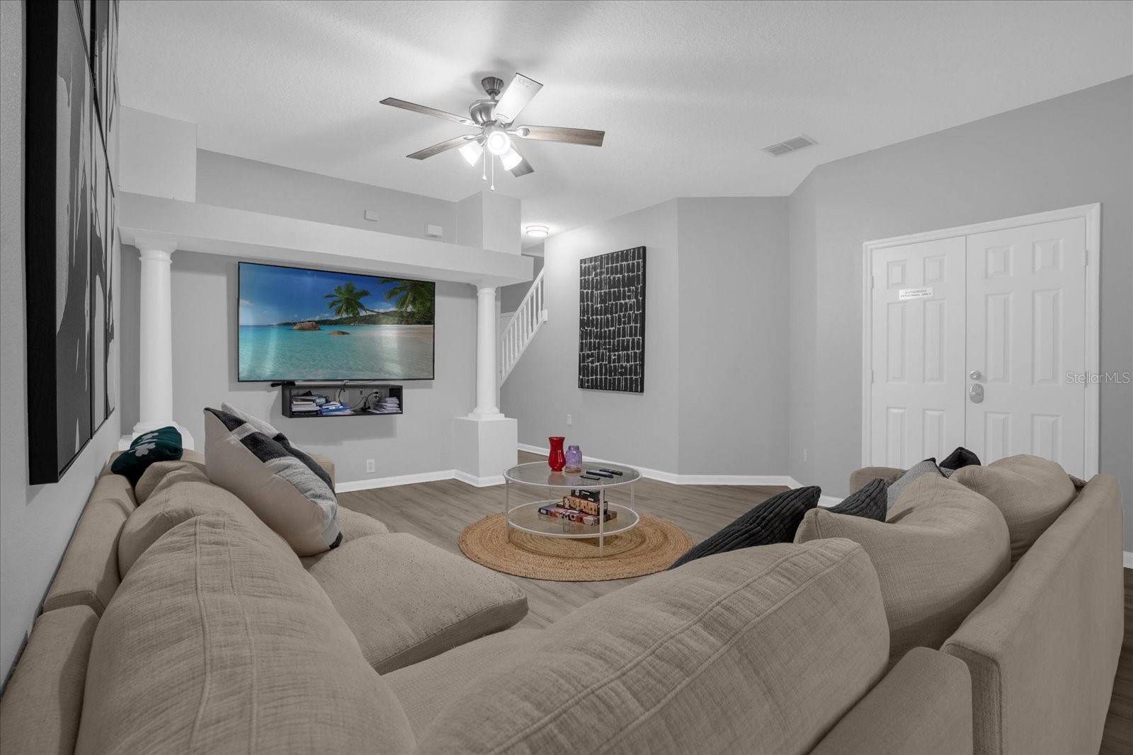 Beautifully Updated 2-Bed, 2-Bath Townhome with Bonus Rooms located in the highly sought-after Stonefield community. This fully renovated townhome in the gated community of Hunter’s Creek offers 2 bedrooms, 2 bathrooms, and two versatile bonus rooms, including a private office and cozy den that opens to the back patio.These additional rooms provide flexibility for work, relaxation, or entertaining. The home features a paid-off solar energy system, providing significant electricity savings, along with a newly installed energy-efficient air conditioner. The interior boasts sleek tile flooring throughout, a remodeled kitchen with stainless steel appliances, and a modern design. A brand-new washer and dryer add to the convenience, making this property move-in ready. Residents enjoy the benefits of a secure, well-maintained community with a beautiful pool, clubhouse, fitness center, tennis courts, fishing dock, and walking/biking trails surrounded by lush landscaping. Located just 15 minutes from Disney and Universal, 20 minutes from Orlando International Airport, and close to major highways, hospitals, dining, and shopping at The Loop, this home offers both convenience and a tranquil lifestyle. Assumable FHA loan at 3.375% for the remaining loan balance $165,194. Don’t miss out—schedule your showing today!