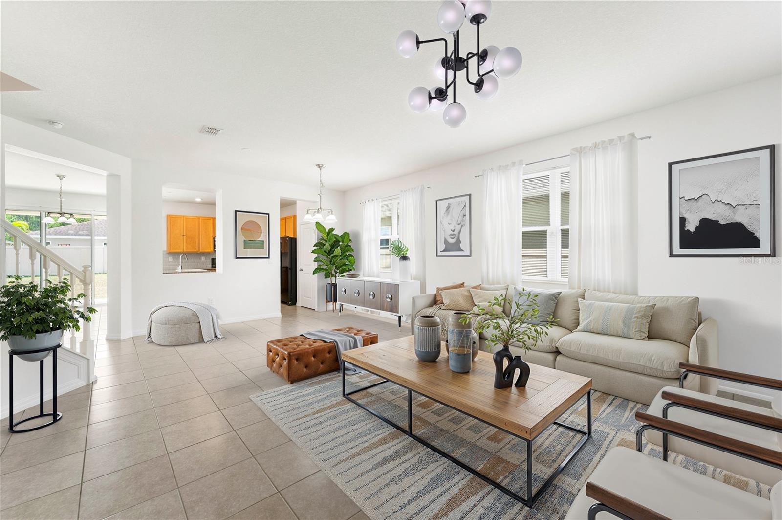 3490 Canvas St., a spacious 5-bedroom, 3-bathroom home in the Enclave at Tapestry, located just under 5 miles from Hunters Creek in Orange County—one of the best places to live in Florida. The home is conveniently across the street from the refreshing community pool, making it easy to enjoy a swim or relax by the water. With an inviting front balcony, this home offers a warm welcome. The first floor features tile flooring throughout, including a spacious bedroom with a closet, DOWNSTAIRS YES!!. The kitchen is equipped with granite countertops and 36-inch cabinets. Upstairs, you'll find 3 more bedrooms and the master suite. The master suite is a true retreat, with two large walk-in closets and a private bath featuring a dual-sink vanity and frameless shower. The Enclave at Tapestry is centrally located, with easy access to the LOOP for shopping, dining, and entertainment, plus it's just minutes to the airport, Lake Nona, and the theme parks. Don’t miss out—call today to schedule your showing!