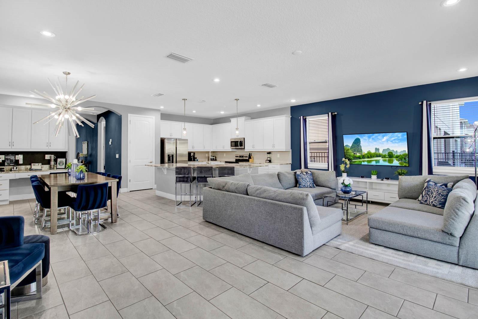 Location, Location.. Stunning Single-Family home at Encore Resort at Reunion! This property is a fantastic investment opportunity for short-term or as primary residence with professional design throughout. Boasting 6 spacious bedrooms and 5 bathrooms fully furnished plus a versatile loft area offers space for relaxation or entertainment. The beautiful backyard has private pool, spa, tastefully decorated with seating area to soak up the sun!!! This beautiful property is within steps to the main clubhouse and the water park and just few miles from Walt Disney World. Encore Club Resort offers world-class vacation with endless amenities such as , aquapark with drop slide, racing slides and more, shark lounge, Resort pool, water play zone, cabanas, arcades Games, fitness Center, Complementary shuttle to most theme parks and attractions, Finn’s Restaurant, Grab N’Go Market, aquapark with drop slide, racing slides and more, shark lounge, Activity Programs, Tennis Courts, Beach Volleyball, Private Picnic Park with inground built in outdoor BBQ grills to enjoy Florida lifestyle l and spa with tastefully decorated outdoor seating area to soak up that beautiful sunshine days. ***All information recorded in the MLS is intended to be accurate, however due diligence, including but not limited to verifying square feet, lot size, room dimensions, schools and taxes should be independently verified by buyer/buyer’s agent. ***