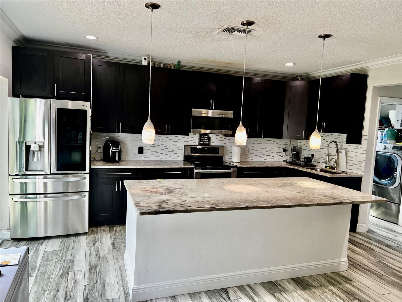 This spacious two story house sits on a large, fully fenced lot. Enter via the covered entry into the living room, beyond the arch is the dining room. Thenewly updated kitchen and spacious family room are at the rear of the house. The entire first floor is tiled for easy maintenance. Exiting via the sliding doors in the family room, there is an open patio and a very large fenced back yard - perfect for familes and dog owners! Back inside, all bedrooms are on the second floor: the master bedroom has a walk in closet, the completely updated master bath has dual vanities, garden tub and a separate shower. The other three bedrooms are all spacious with ample closet space. This property is ideal for families thanks to its size, outdoor space and location close to the center of Poinciana, to schools and to the Medical Center.