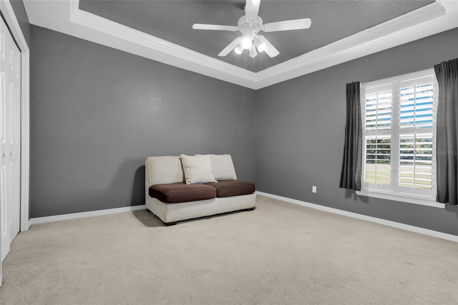 Welcome to this stunning 2,581 sq ft home located in the desirable Oaks National Golf Club community. Offering 4 full bedrooms and 3 full bathrooms, this home features a split-bedroom floor plan with the master suite on one side and the remaining three bedrooms on the other. Perfect for privacy, it’s an ideal space for families or guests. Golf carts are welcome in this community, allowing easy access to the lush golf course views and all the neighborhood amenities. The home is designed for comfort and convenience, with ceiling fans in every room, including the screened-in lanai, which offers a peaceful retreat. French doors from the master bedroom lead directly to the lanai, extending your living space and allowing you to enjoy the beautiful surroundings. The master suite includes his and her closets, and the en-suite bathroom features dual vanity sinks, a garden tub, and a walk-in shower. The kitchen is perfect for entertaining, with ample cabinet and counter space, plus a high-top area ideal for family meals or hosting guests. Adjacent to the kitchen, you'll find a cozy breakfast nook and a separate dining area for more formal gatherings. There is also a dedicated office space at the front of the house, offering a quiet spot for work or study. This home has been meticulously maintained, with a roof replaced in 2023 and the air conditioner updated in 2016. The exterior was freshly painted just 1 year ago, providing peace of mind for years to come. The spacious 2-car garage is 3-4 feet longer than standard, offering extra storage or workspace, and the property is equipped with rain gutters for added protection. The Oaks National Golf Club community offers a range of amenities, including a playground, basketball court, and tennis court. For those who enjoy golfing, there is an optional golf course available for an additional fee. The location is extremely convenient, with Publix, McDonald’s, KFC, Wendy’s, Burger King, Ross, Dollar Tree, AutoZone, a UPS Store, and an urgent care center all less than 10 minutes away. This beautiful home is ready for you to move in and enjoy the golf course lifestyle. Schedule your private showing today! Seller is MOTIVATED!