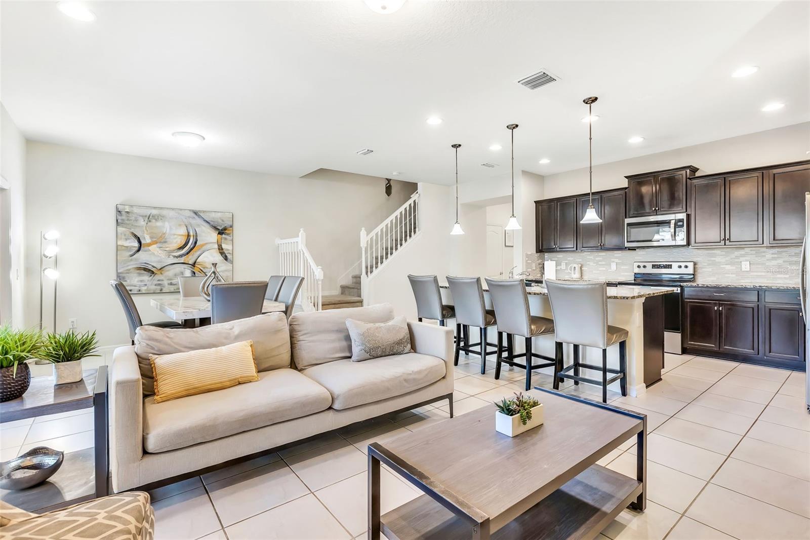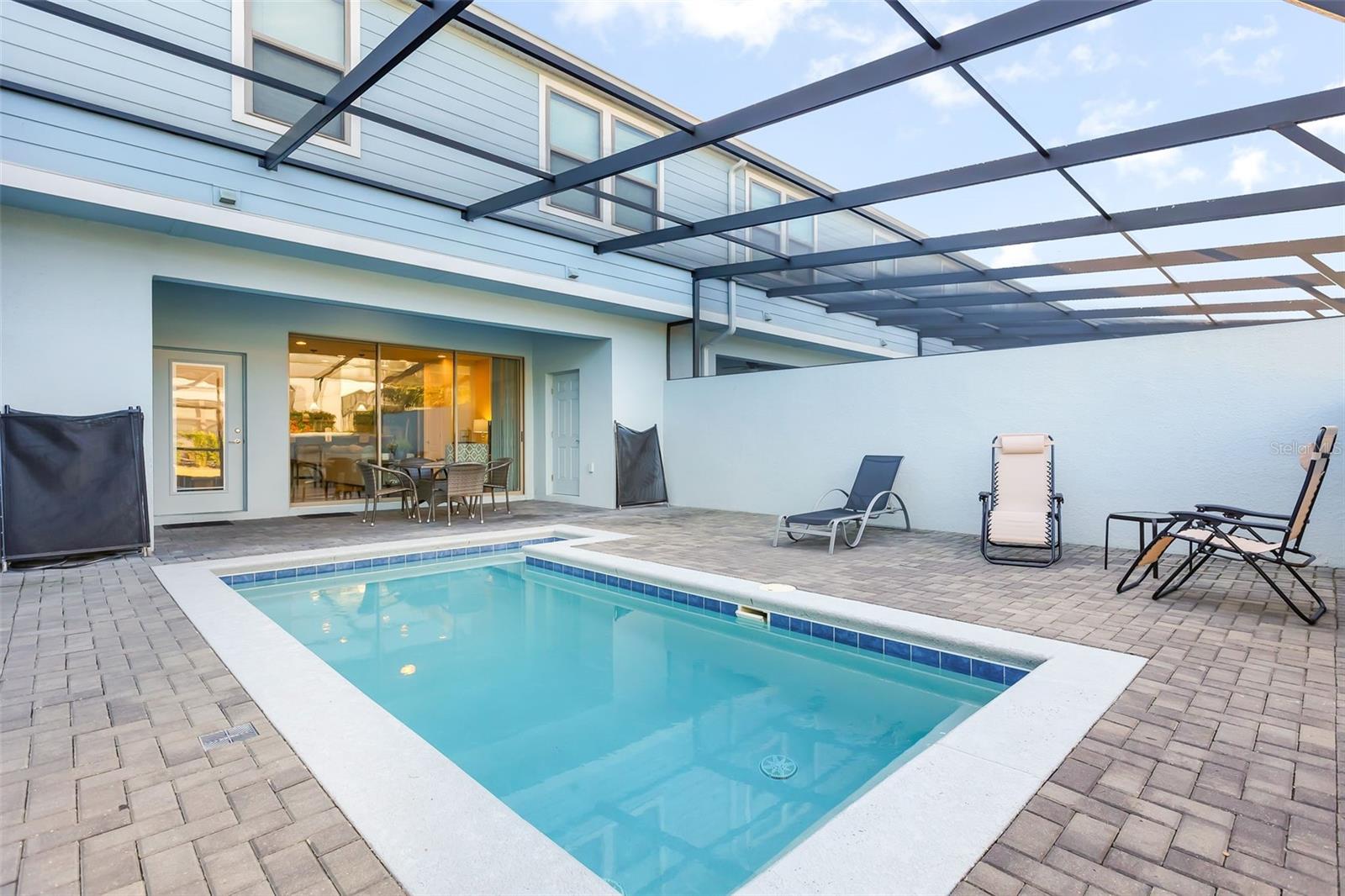 Price Reduction!!! Don't miss this stunning fully furnished vacation pool home located in the sought-after Windsor at Westside Resort! If you are looking for a fully booked income producing property, you're in luck. This elegant and turnkey two-story townhouse offers 5 spacious bedrooms, 4 full bathrooms, and a beautiful pool. Perfectly designed for relaxation and entertainment, the open floor plan features soaring ceilings that fill the home with natural light, creating a warm and inviting atmosphere. The modern kitchen boasts granite countertops, 42" cabinets, and stainless steel appliances, while the main floor offers a bedroom for added convenience. Step outside to your private screened-in courtyard, complete with a brick-paved deck and your very own pool, perfect for unwinding or hosting guests. Windsor at Westside is a premier vacation destination in Central Florida, offering an array of resort-style amenities, including: A lagoon-style pool Kid's splash zone Lazy river Fitness center Private cabanas Sand volleyball courts Playground Arcade Full bar & lounge Located just minutes from Disney parks, world-class attractions, dining, and shopping, this home is the ultimate vacation retreat, investment opportunity or a place you can call home. Don’t wait—schedule your showing today and make this luxurious property yours!