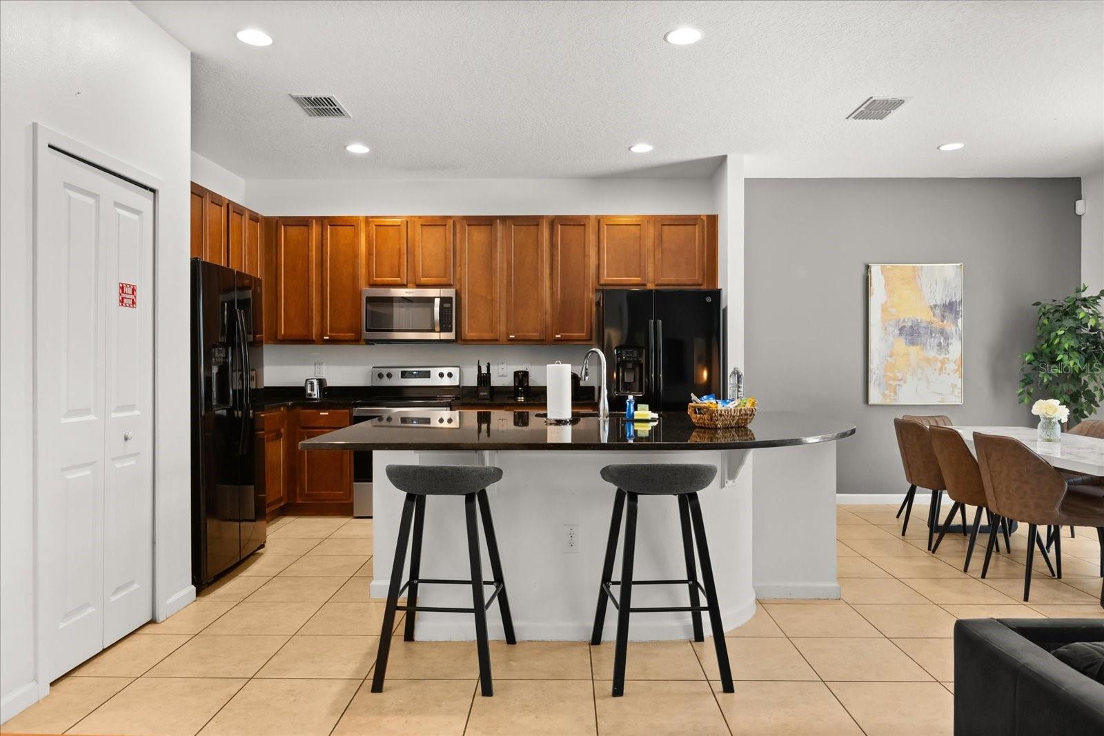 Experience luxury and comfort in this stunning 8-bedroom, 5-bathroom vacation home located in the sought-after Bella Vida Resort, with no CDD fees! This spacious property features an inviting living and dining room combination upon entry, and a gourmet kitchen equipped with two refrigerators, granite countertops, a large island with a sink, and plenty of space—perfect for accommodating large families. The converted garage serves as a game room but can easily revert to a functional two-car garage. Step outside to enjoy your private pool, ideal for relaxation or entertaining. Situated in a gated community with 24/7 security, Bella Vida Resort boasts resort-style amenities, including a pool, jacuzzi spa, playground, fitness center, game room, movie room, and basketball court. Located just minutes from Disney, Universal Studios, and SeaWorld, as well as dining, shopping, major highways, and hospitals, this property is perfect as a personal vacation retreat or a short-term rental investment. Don’t wait—schedule your private showing today!