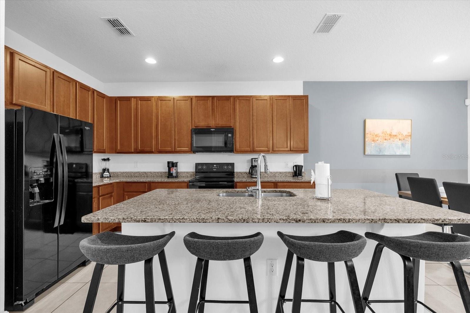 Experience luxury and comfort in this stunning 6-bedroom, 4-bathroom vacation home located in the sought-after Bella Vida Resort, with no CDD fees! This spacious property features an inviting living and dining room combination upon entry, and a gourmet kitchen equipped with two refrigerators, granite countertops, a large island with a sink, and plenty of space—perfect for accommodating large families. Step outside to enjoy your private pool, ideal for relaxation or entertaining. Situated in a gated community with 24/7 security, Bella Vida Resort boasts resort-style amenities, including a pool, jacuzzi spa, playground, fitness center, game room, movie room, and basketball court. Located just minutes from Disney, Universal Studios, and SeaWorld, as well as dining, shopping, major highways, and hospitals, this property is perfect as a personal vacation retreat or a short-term rental investment. Don’t wait—schedule your private showing today!