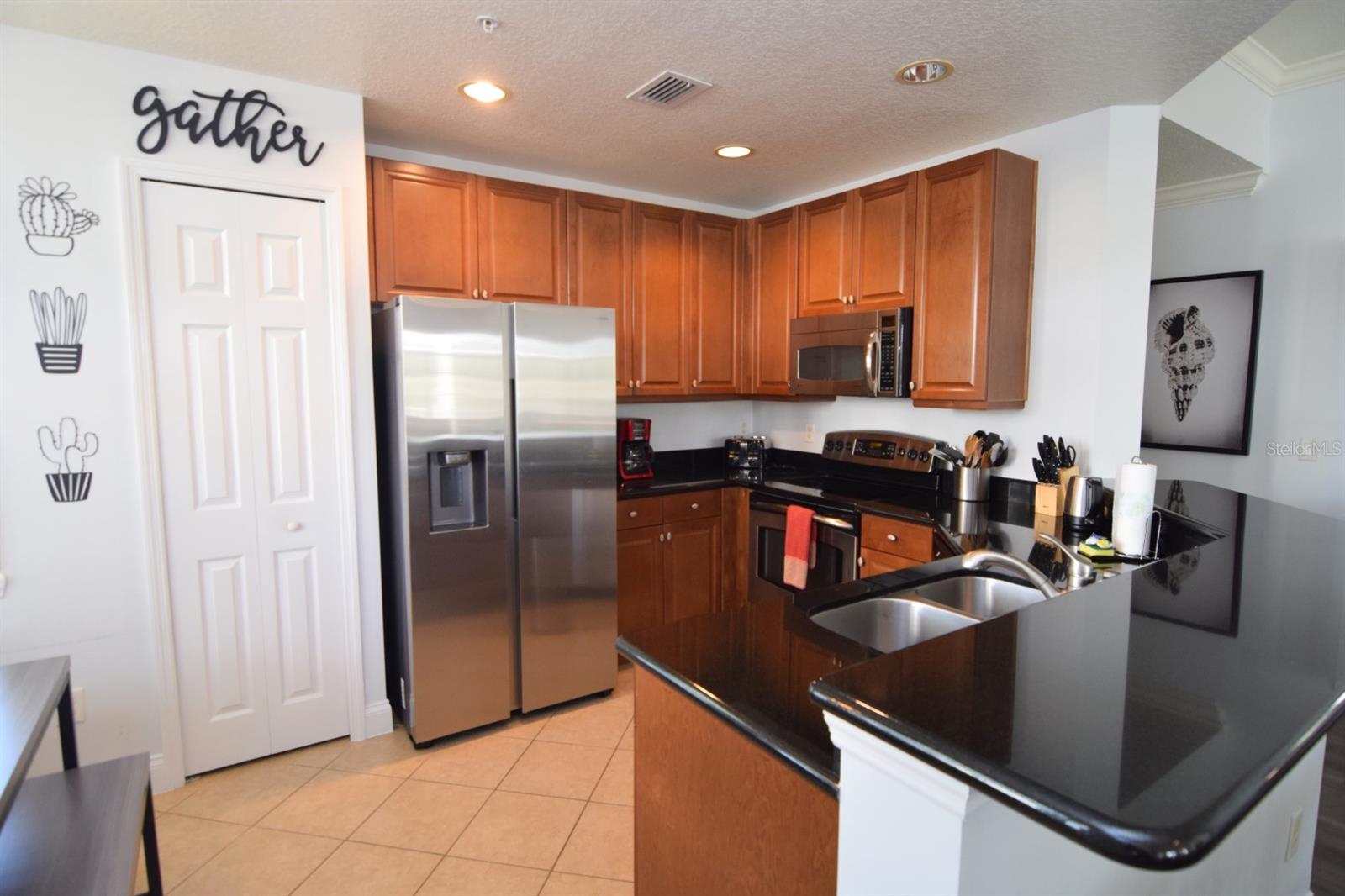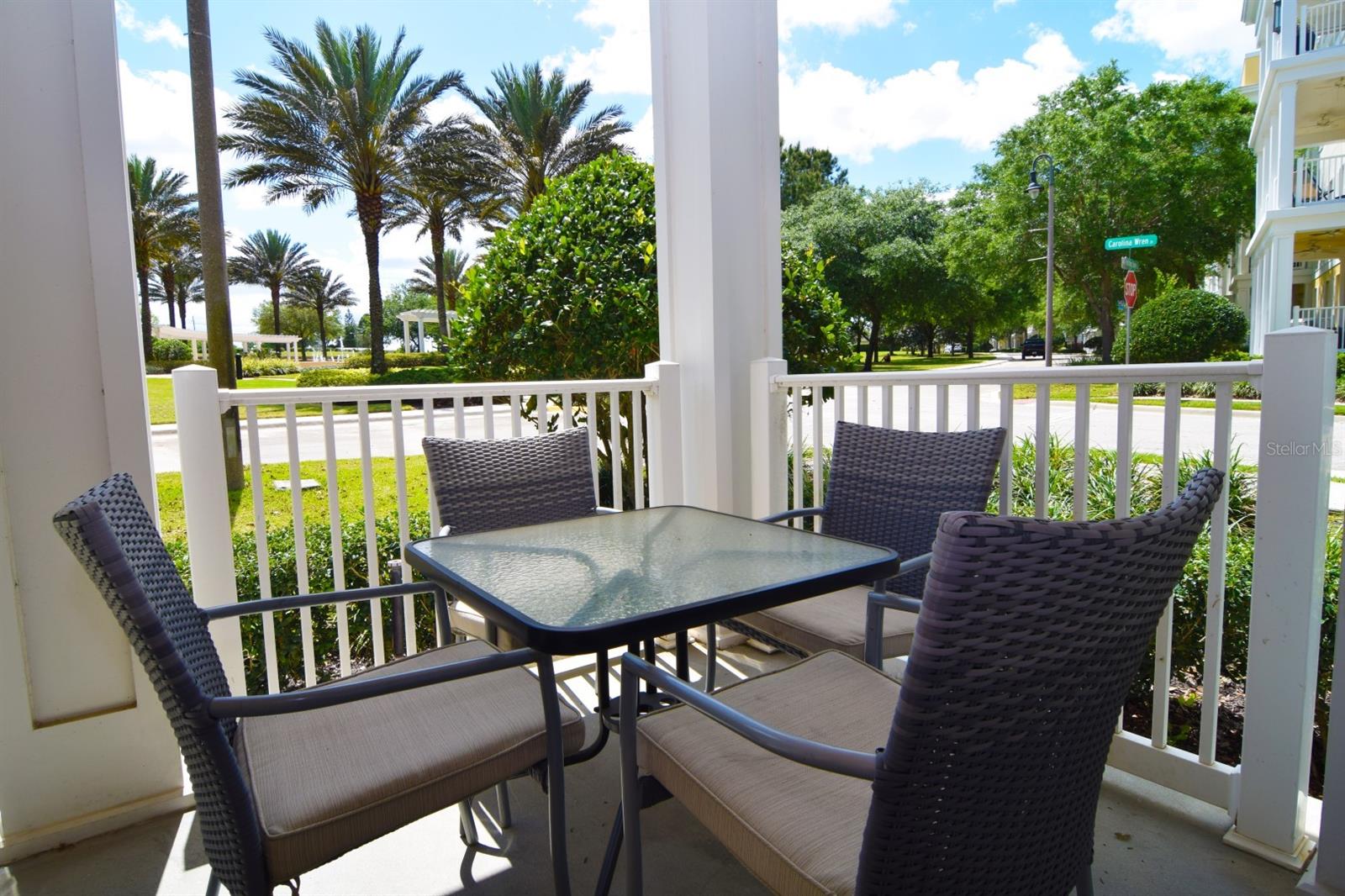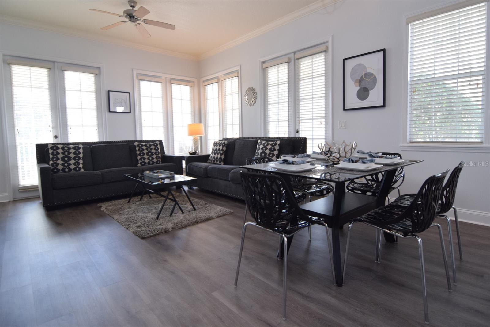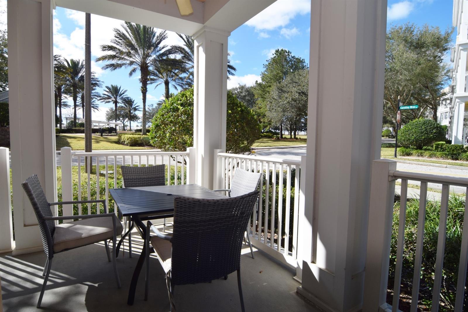 Stunning updated 3 bedroom/2 bathroom first floor condo with a beautiful south-facing wraparound balcony looking across to The Terraces heated community pool, plus a private garage. Located on the upscale Reunion Resort with access to 6 community pools & a gym, this luxurious and spacious 3-bedroom, 2-bathroom first floor condo has been updated throughout in a contemporary style with vinyl planking installed three years ago, with new décor and furnishings all included. The home features a spacious open plan living and dining space complete with two stylish sofas, a large flat screen TV, a ceiling fan and a formal dining area for six and a workstation with desk and office chair. The living area features floor-to-ceiling French doors leading out to the south-facing wraparound balcony furnished with a table and chairs set for outside dining, plus comfortable seating and ceiling fans. The kitchen has stone counters and is fully equipped including a new stainless steel fridge freezer, oven and hob, microwave, dishwasher, coffee maker, kettle, toaster, blender, crockery, dishes, utensils etc. There is also a breakfast dining nook with window seat. Leading off from the living area is the king-sized primary bedroom suite. This spacious room has a flat screen TV, ceiling fan, walk-in closet and an en suite shower room complete with stone counters, twin sinks, WC and shower. At the front of the condo you will find two further bedrooms and a family bathroom with bath/shower. Bedroom 2 is an attractive queen room and has a flat screen TV. Bedroom 3 is a surfing-themed twin room. There is also a laundry closet with a washer and dryer. This property also has a private garage with new garage door opener, plus a parking space in front of the garage. The Reunion Resort is located 7 miles from Disney World and is an active 'guest favorite' Airbnb with 49 five-star reviews. It is fully furnished and ready for short-term rentals, making it the perfect rental investment, vacation home or long-term residence. SIRS inspection has been completed with a favorable outcome due to the community being very well-maintained, with a minimal increase in 2026 of $78.37 per month per condo.
