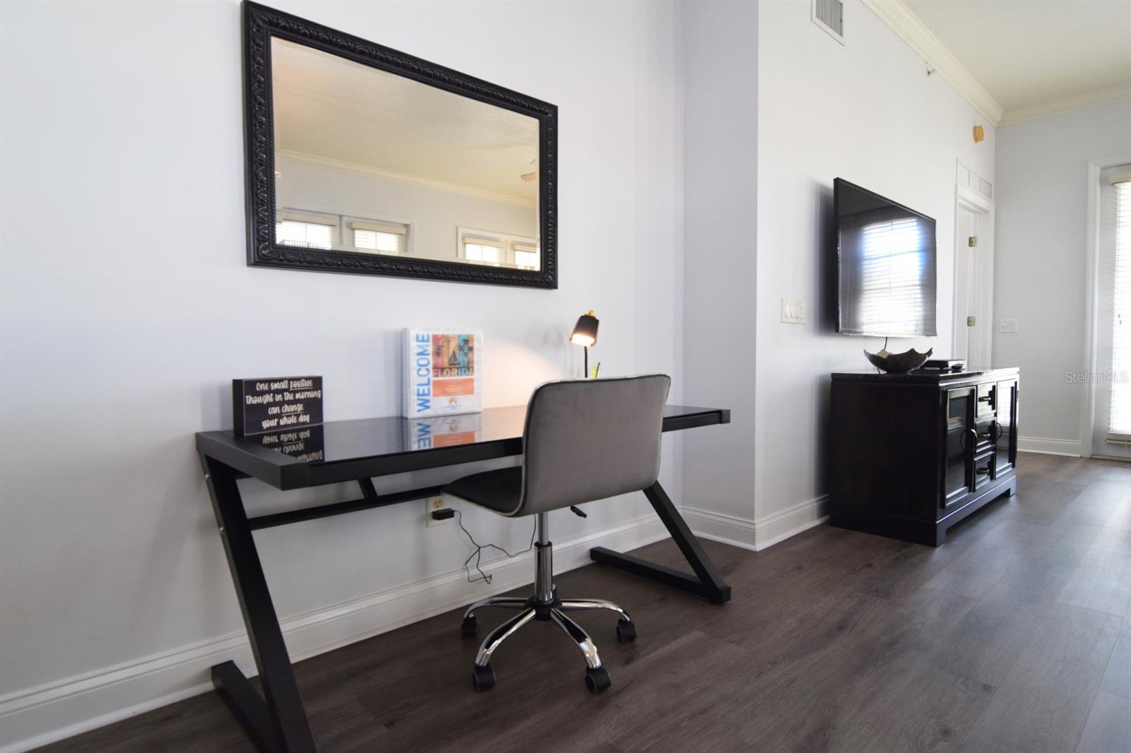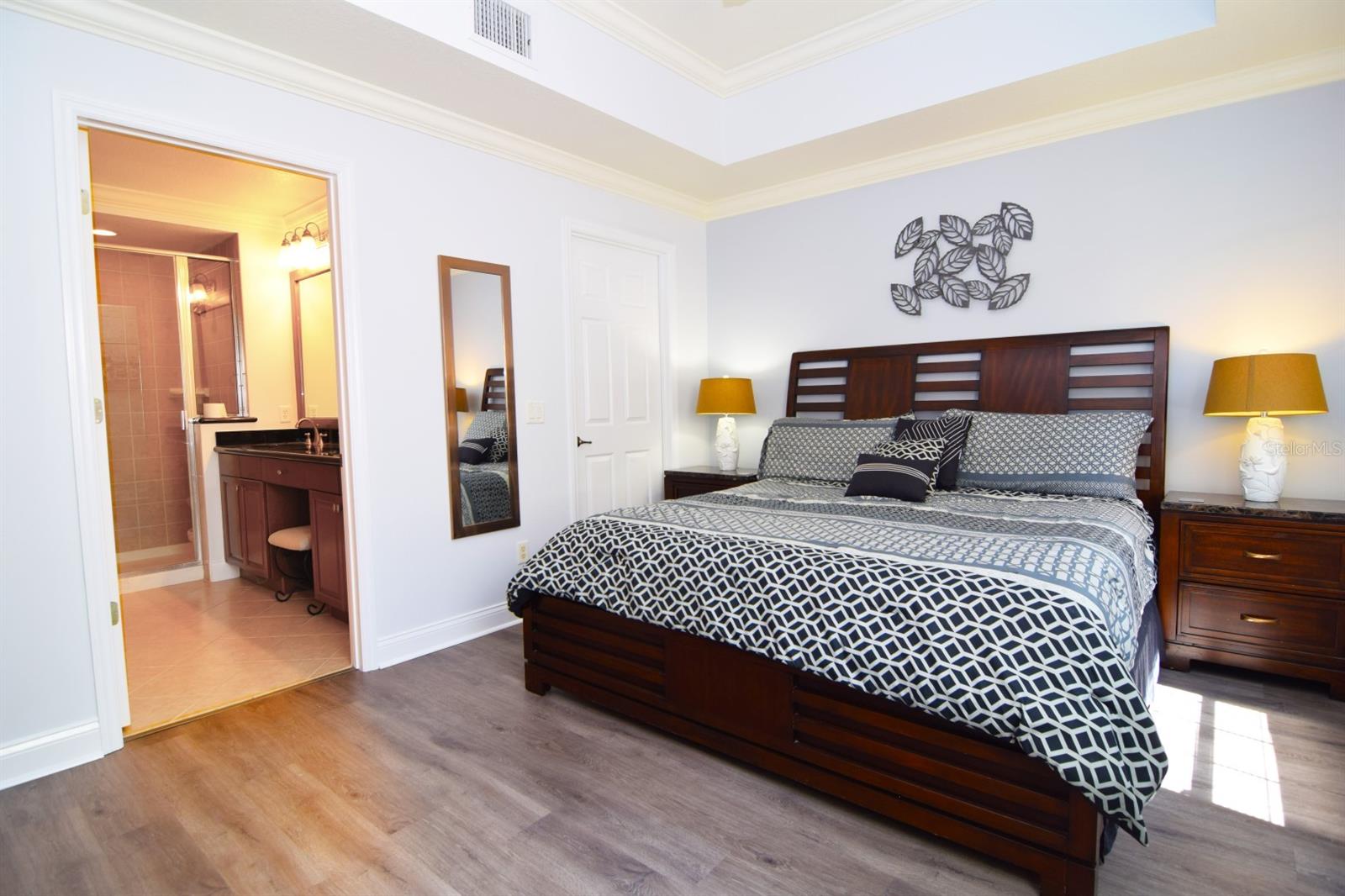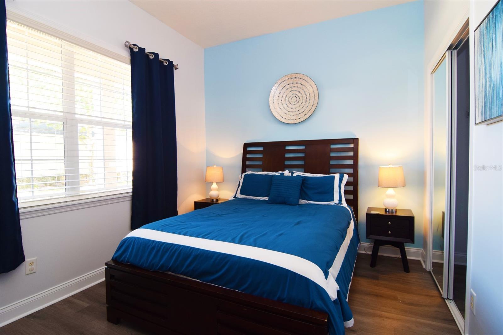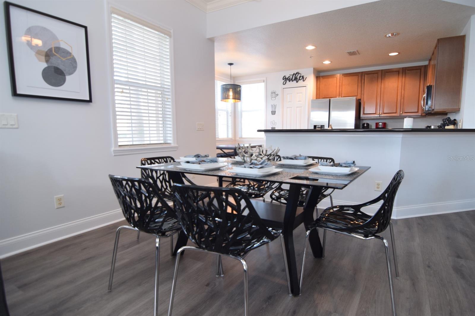 Stunning updated 3 bedroom/2 bathroom first floor condo with a beautiful south-facing wraparound balcony looking across to The Terraces heated community pool, plus a private garage. Located on the upscale Reunion Resort with access to 6 community pools & a gym, this luxurious and spacious 3-bedroom, 2-bathroom first floor condo has been updated throughout in a contemporary style with vinyl planking installed three years ago, with new décor and furnishings all included. The home features a spacious open plan living and dining space complete with two stylish sofas, a large flat screen TV, a ceiling fan and a formal dining area for six and a workstation with desk and office chair. The living area features floor-to-ceiling French doors leading out to the south-facing wraparound balcony furnished with a table and chairs set for outside dining, plus comfortable seating and ceiling fans. The kitchen has stone counters and is fully equipped including a new stainless steel fridge freezer, oven and hob, microwave, dishwasher, coffee maker, kettle, toaster, blender, crockery, dishes, utensils etc. There is also a breakfast dining nook with window seat. Leading off from the living area is the king-sized primary bedroom suite. This spacious room has a flat screen TV, ceiling fan, walk-in closet and an en suite shower room complete with stone counters, twin sinks, WC and shower. At the front of the condo you will find two further bedrooms and a family bathroom with bath/shower. Bedroom 2 is an attractive queen room and has a flat screen TV. Bedroom 3 is a surfing-themed twin room. There is also a laundry closet with a washer and dryer. This property also has a private garage with new garage door opener, plus a parking space in front of the garage. The Reunion Resort is located 7 miles from Disney World and is an active 'guest favorite' Airbnb with 49 five-star reviews. It is fully furnished and ready for short-term rentals, making it the perfect rental investment, vacation home or long-term residence. SIRS inspection has been completed with a favorable outcome due to the community being very well-maintained, with a minimal increase in 2026 of $78.37 per month per condo.