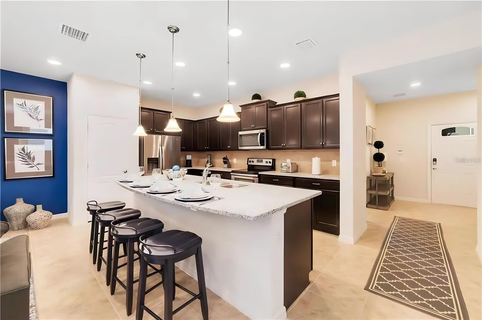 Luxurious and Spacious townhome featuring 5 bedrooms and 4.5 bathrooms located in the much sought after community of Windsor at Westside. This modern home is beautifully decorated and is equipped with all of the furnishings to meet you and your guests' needs. The extended pool area has amazing views of the beautiful conservation which provides much privacy for entertaining and relaxation. This is Truly Resort Style Living at its Best! This beautiful home is Perfect for Investing, Vacationing and Entertaining. For Investors who are seeking a turnkey property which generates extra income, this is an excellent opportunity to explore the Short-Term Rental Market. The residents and the guests will have access to an 8000 sq ft clubhouse which offers an Outstanding selection of resort-style amenities. Enjoy the resort-style pool, lazy river, water playground, private cabanas, fitness center, arcade, tennis courts, sand volleyball, and much more. Enjoy Tu Casa Bar & Lounge and all the special events being offered for entertainment and enjoyment. Near Great Restaurants, Shopping, Schools, Disney and all of the theme parks. Easy access to Orlando International Airport.