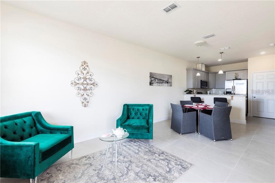 Under Construction. EXCELLENT RATES AND SHORT-TERM RENTAL ALLOWED. CALLING ALL INVESTORS!! SELLER MOTIVATED. This charming villa is nestled within the serene and gated community of Tuscany Preserve. This beautiful corner unit lot home offers a thoughtfully designed 1,056 square feet of living space with 3 spacious bedrooms and 2 full bathrooms. The open-concept floor plan ensures an airy, modern living experience, perfect for both relaxation and entertaining. The kitchen will feature sleek, white modern cabinetry and premium quality appliances, seamlessly flowing into the living and dining areas with elegant ceilings. The primary bedroom will boast an en-suite bathroom with a double sink vanity, a walk-in shower, and ample closet space. A tile roof will top off the home, providing both durability and curb appeal maintained by HOA. Neutral ceramic tile flooring throughout enhances the home’s contemporary, low-maintenance design. The property is situated within a highly sought-after community where the HOA handles lawn care, landscaping, cable, internet, and exterior maintenance allowing you to enjoy stress-free living. Tuscany Preserve offers exceptional amenities, including a resort-style pool overlooking a tranquil lake, a splash pool, spa, clubhouse with an event venue, fitness facilities, tennis and basketball courts, and a gated, secure environment. Located conveniently near retail, parks, and entertainment options, this community offers the perfect blend of relaxation and convenience. Homes in Tuscany Preserve are in high demand, and with builders offering a warranty on their work, this villa promises high-end finishes and lasting quality. Don’t miss your chance to secure this unique opportunity—come visit today!