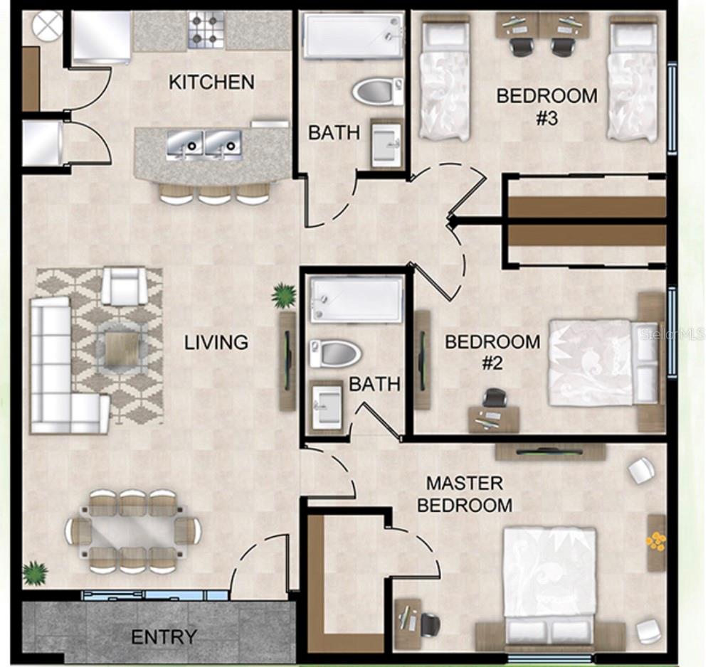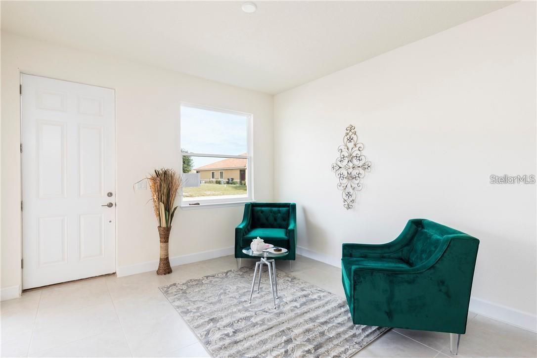 Under Construction. EXCELLENT RATES AND SHORT-TERM RENTAL ALLOWED. CALLING ALL INVESTORS!! SELLER MOTIVATED. This charming villa is nestled within the serene and gated community of Tuscany Preserve. This beautiful corner unit lot home offers a thoughtfully designed 1,056 square feet of living space with 3 spacious bedrooms and 2 full bathrooms. The open-concept floor plan ensures an airy, modern living experience, perfect for both relaxation and entertaining. The kitchen will feature sleek, white modern cabinetry and premium quality appliances, seamlessly flowing into the living and dining areas with elegant ceilings. The primary bedroom will boast an en-suite bathroom with a double sink vanity, a walk-in shower, and ample closet space. A tile roof will top off the home, providing both durability and curb appeal maintained by HOA. Neutral ceramic tile flooring throughout enhances the home’s contemporary, low-maintenance design. The property is situated within a highly sought-after community where the HOA handles lawn care, landscaping, cable, internet, and exterior maintenance allowing you to enjoy stress-free living. Tuscany Preserve offers exceptional amenities, including a resort-style pool overlooking a tranquil lake, a splash pool, spa, clubhouse with an event venue, fitness facilities, tennis and basketball courts, and a gated, secure environment. Located conveniently near retail, parks, and entertainment options, this community offers the perfect blend of relaxation and convenience. Homes in Tuscany Preserve are in high demand, and with builders offering a warranty on their work, this villa promises high-end finishes and lasting quality. Don’t miss your chance to secure this unique opportunity—come visit today!